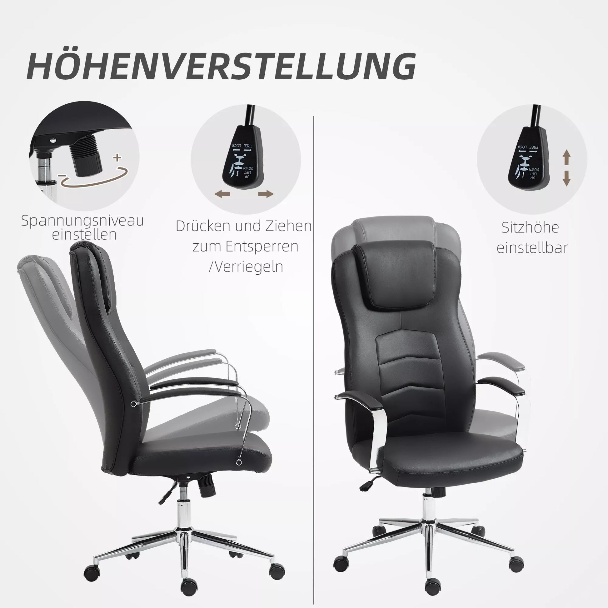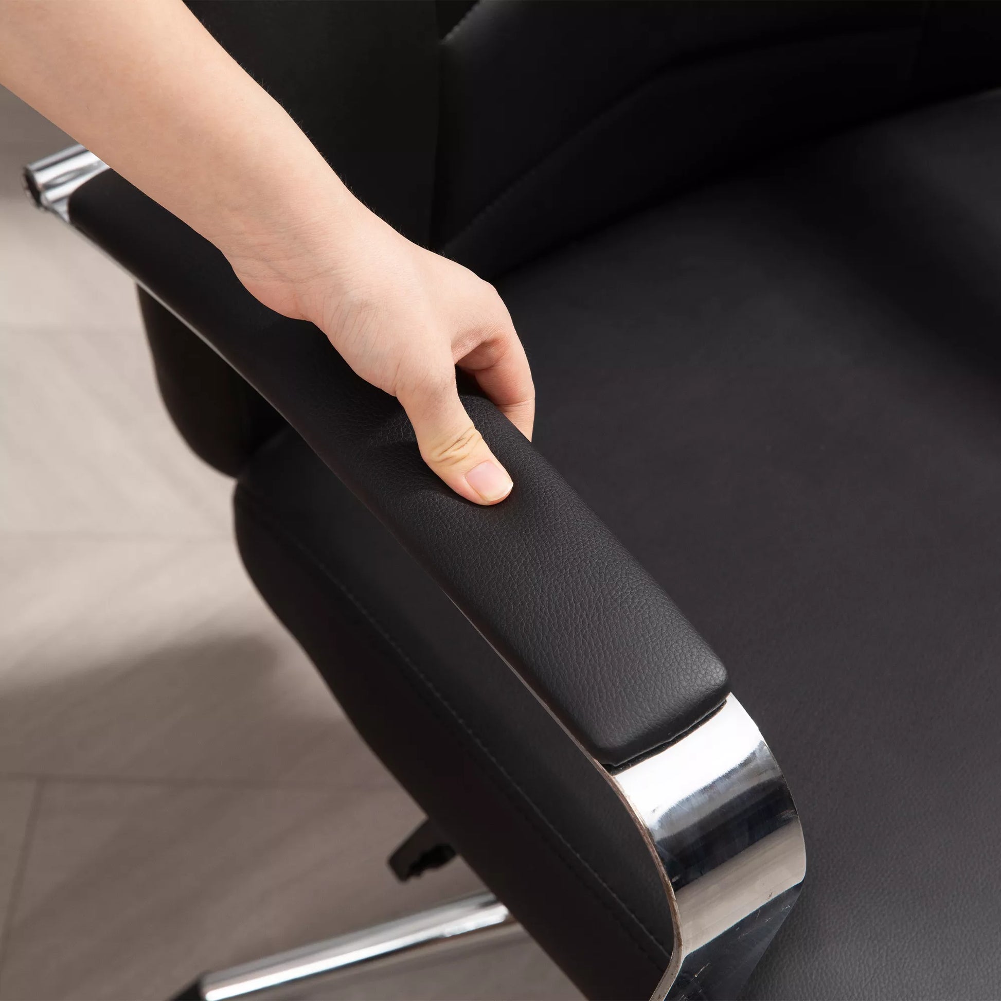 Optimizuokite savo darbo vietą su elegantiška biuro kėde, idealiai tinkančia maksimaliam komfortui. Apdengta lygia dirbtine oda su minkštu nugaros paminkštinimu, ši kompiuterio kėdė suteikia raminantį atlošimo mechanizmą ir lengvą sūpavimąsi. Individualiai reguliuokite kompiuterio kėdės aukštį ir mėgaukitės lengvu 360° pasukimu dėl stilingų dirbtinės odos ratukų. Puikiai tinka tiems, kurie nori derinti komfortą ir modernią funkcionalumą biure.