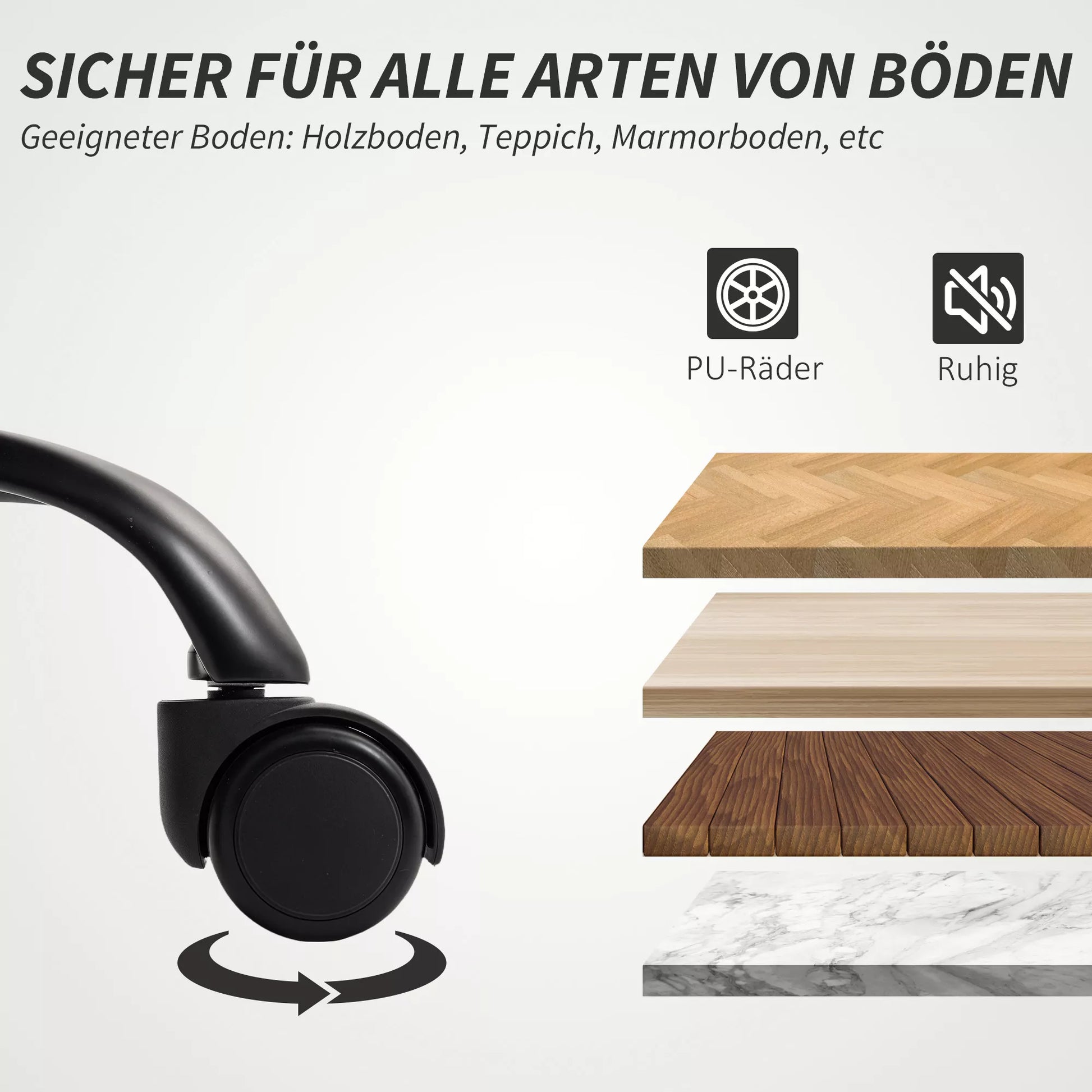 - ✔ Lengvai riedančios PU ratukai juda tyliai ir apsaugo jūsų grindis nuo įbrėžimų