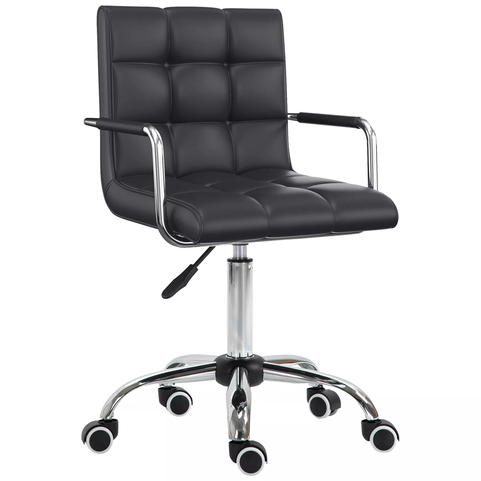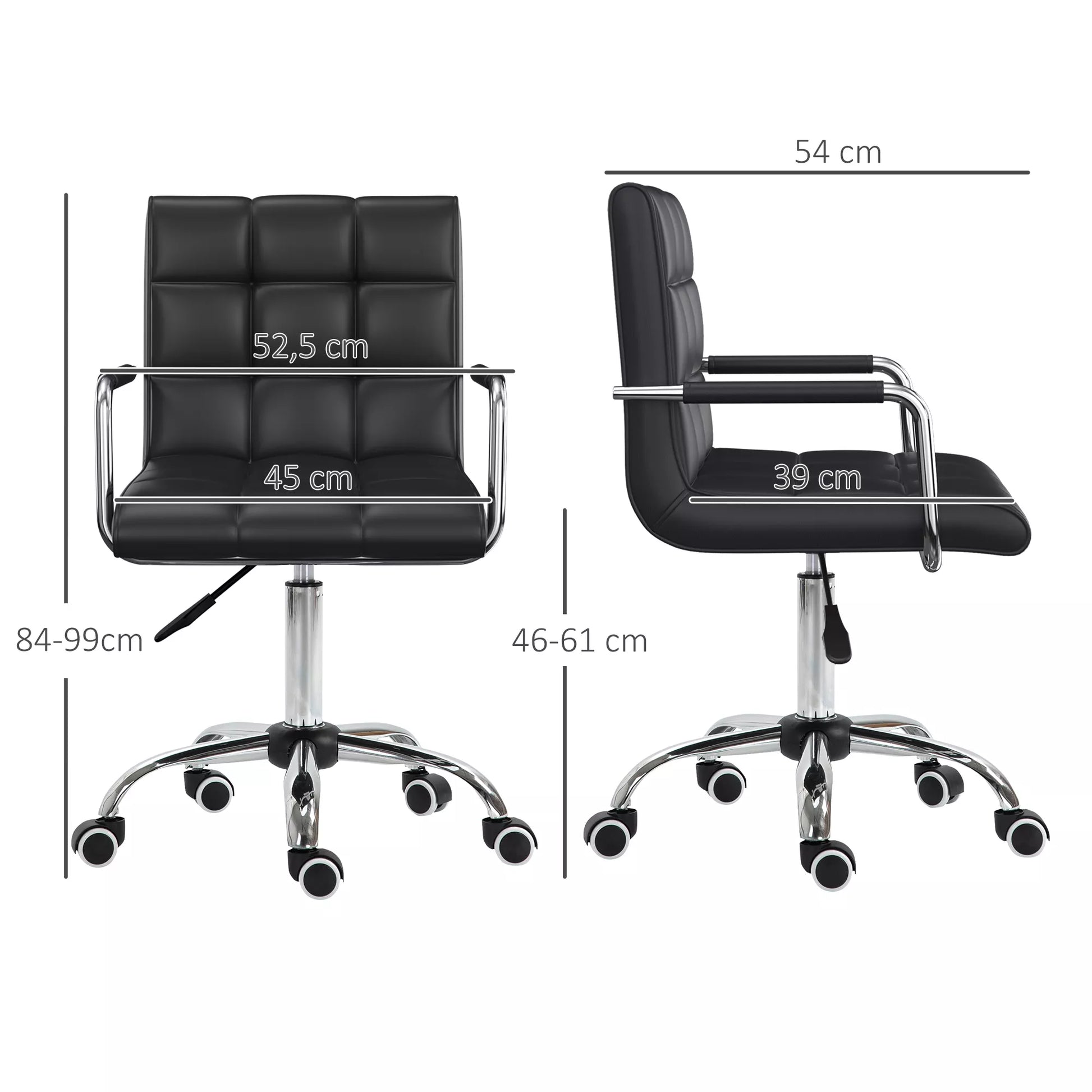 Biuro kėdė retro dizaino, aukščio reguliavimo, su 5 ratukais, 52,5 cm x 54 cm x 99 cm, juoda