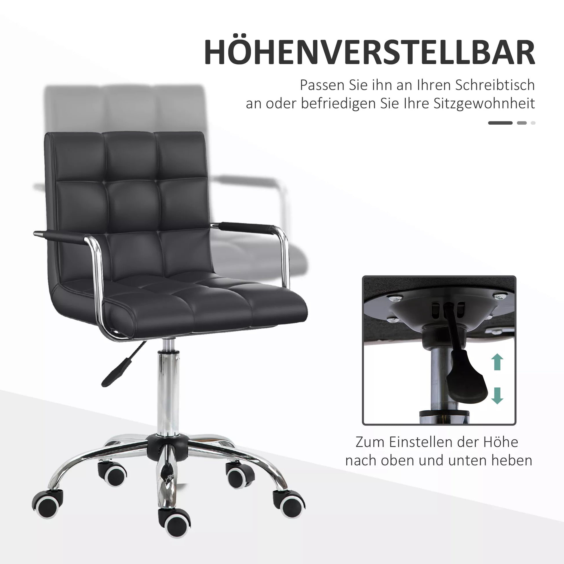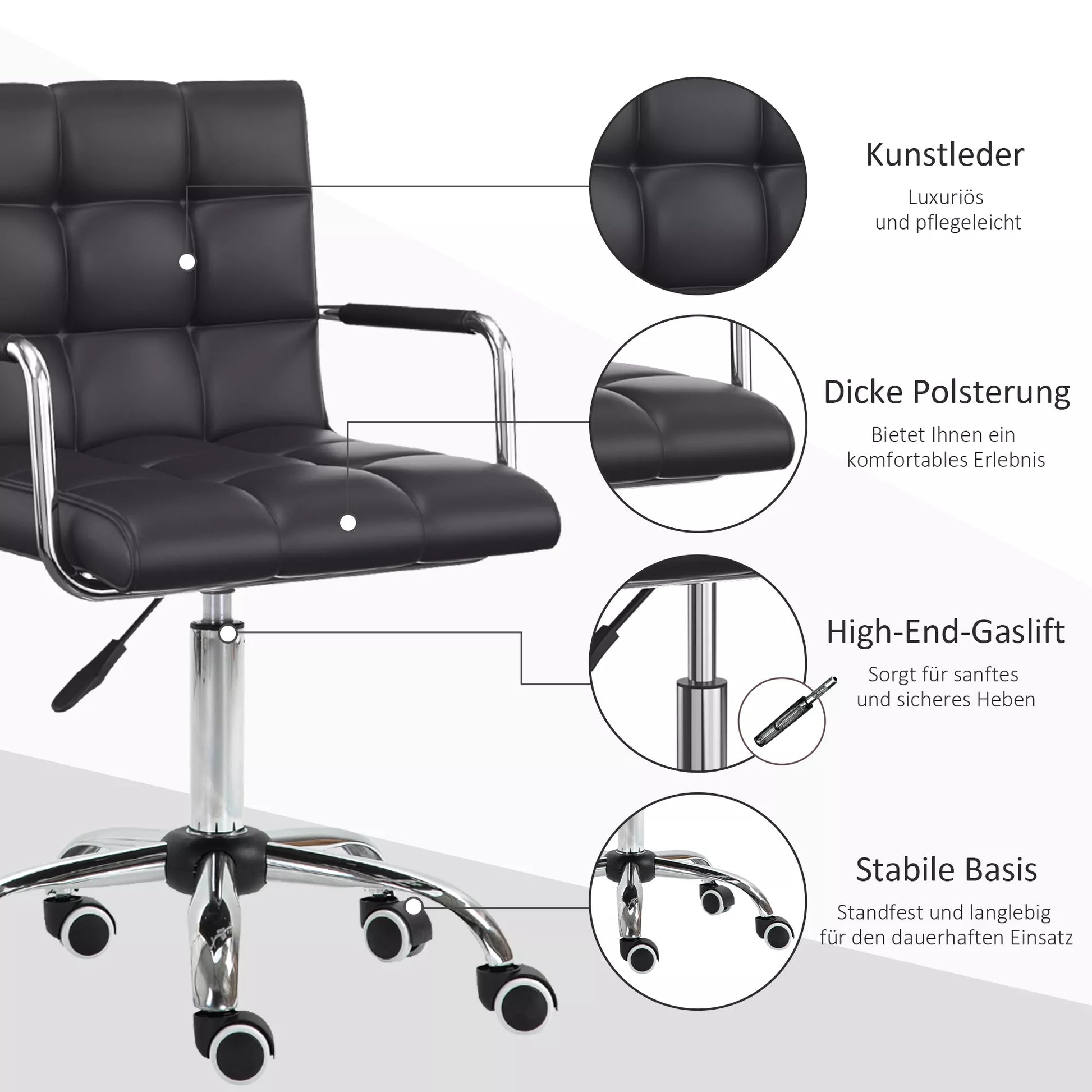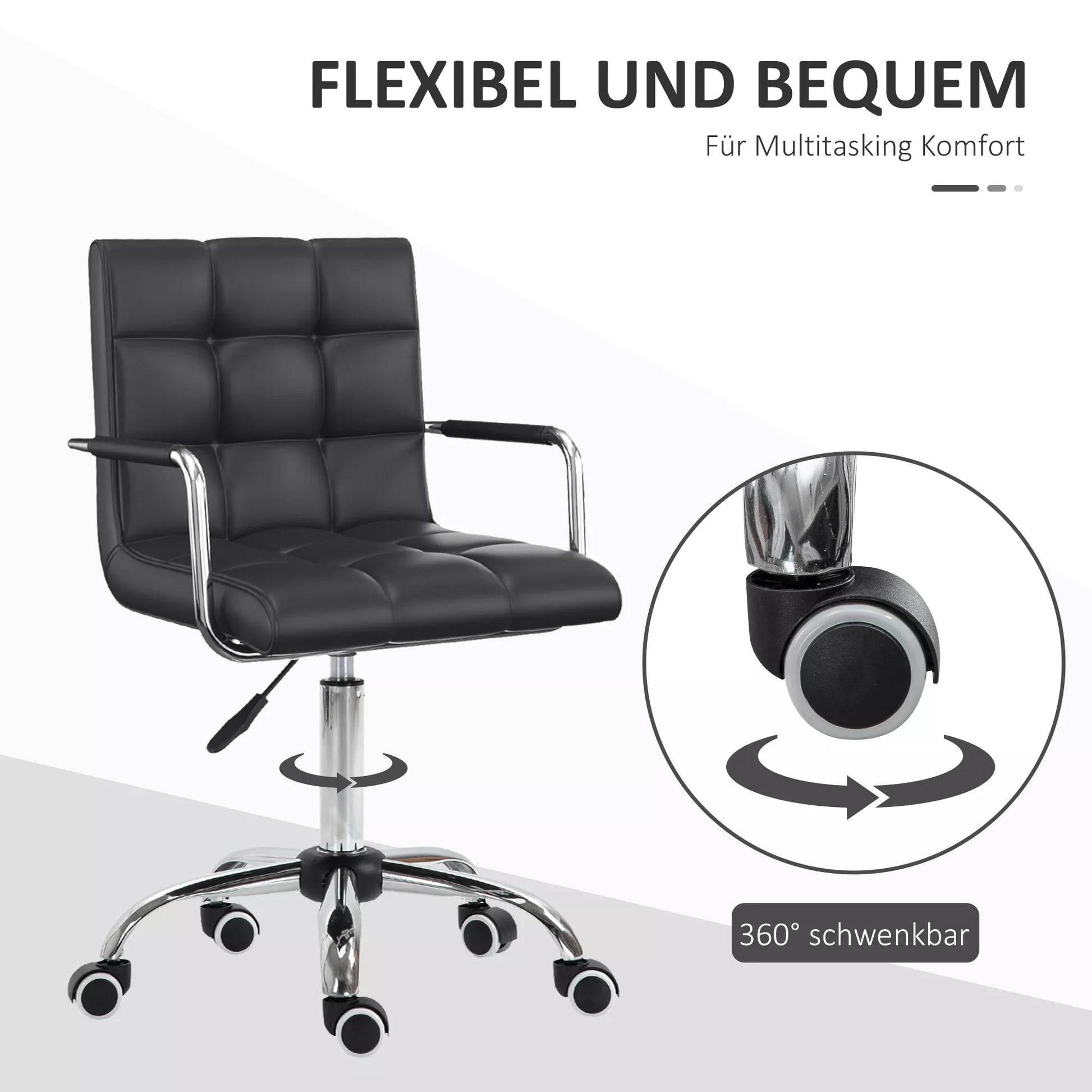 - ✔ Tvirta 5 ratukų chromuota bazė su 360 laipsnių sukimu