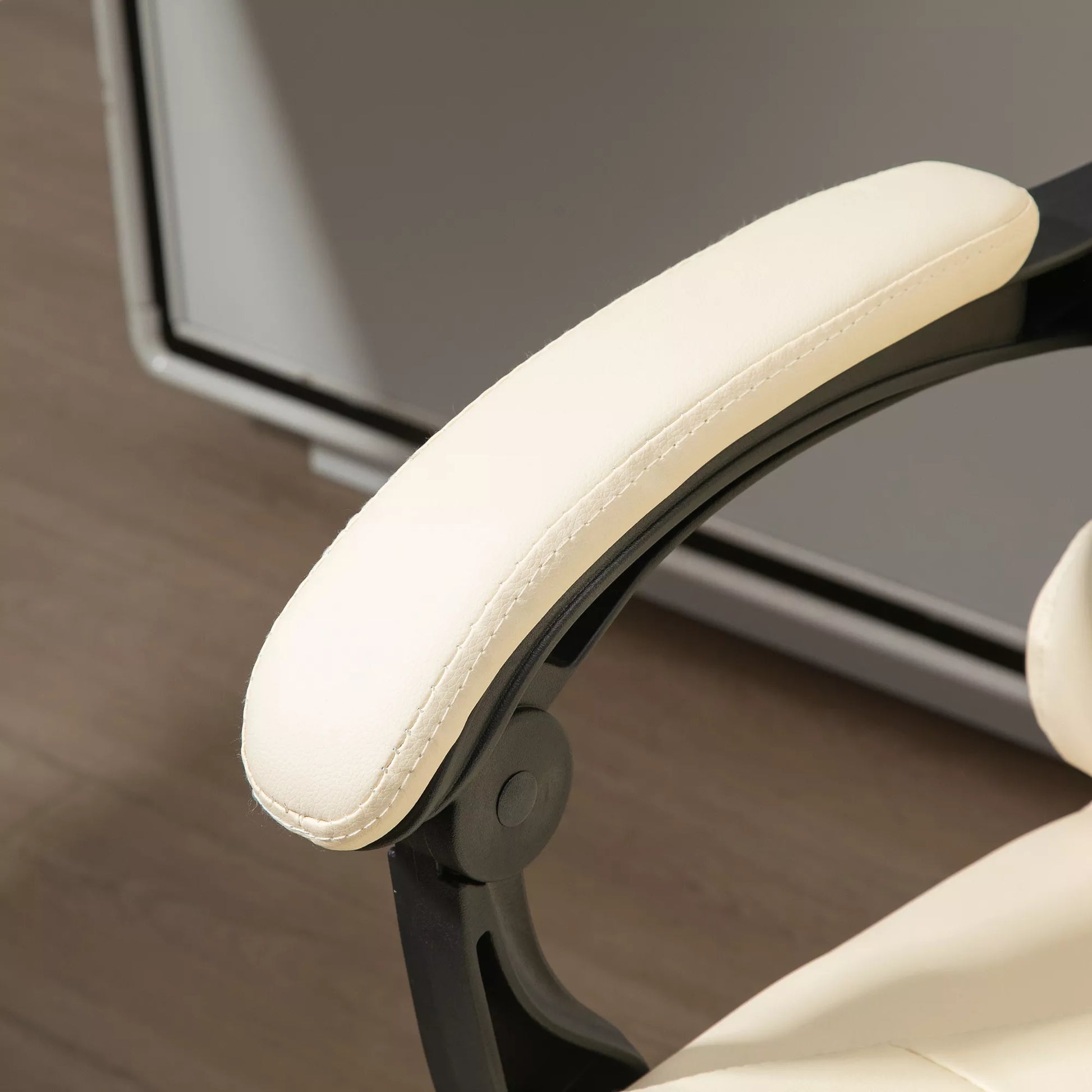 Biuro kėdė su kojų atrama, rašomojo stalo kėdė, reguliuojamas atlošas, aukščio reguliavimas, kreminės, juodos ir sidabrinės spalvos