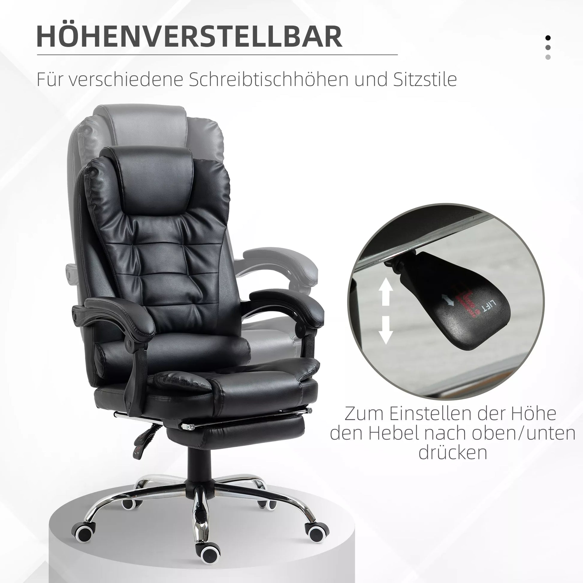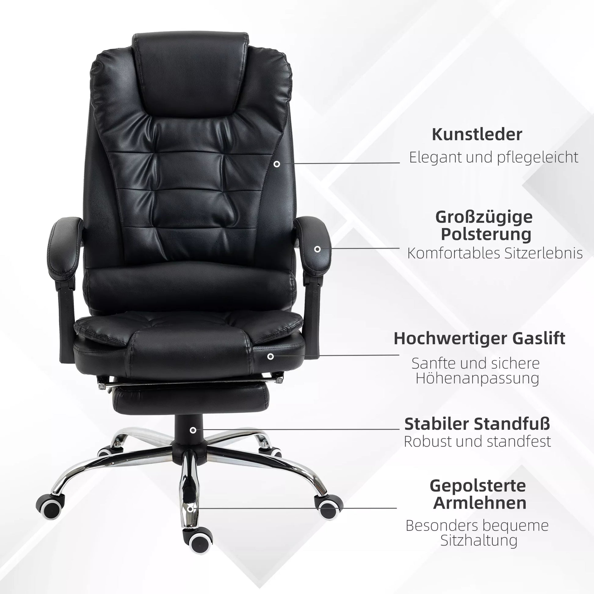 Biuro kėdė su atrama kojoms, rašomojo stalo kėdė, reguliuojamas atlošas, reguliuojamas aukštis, juoda