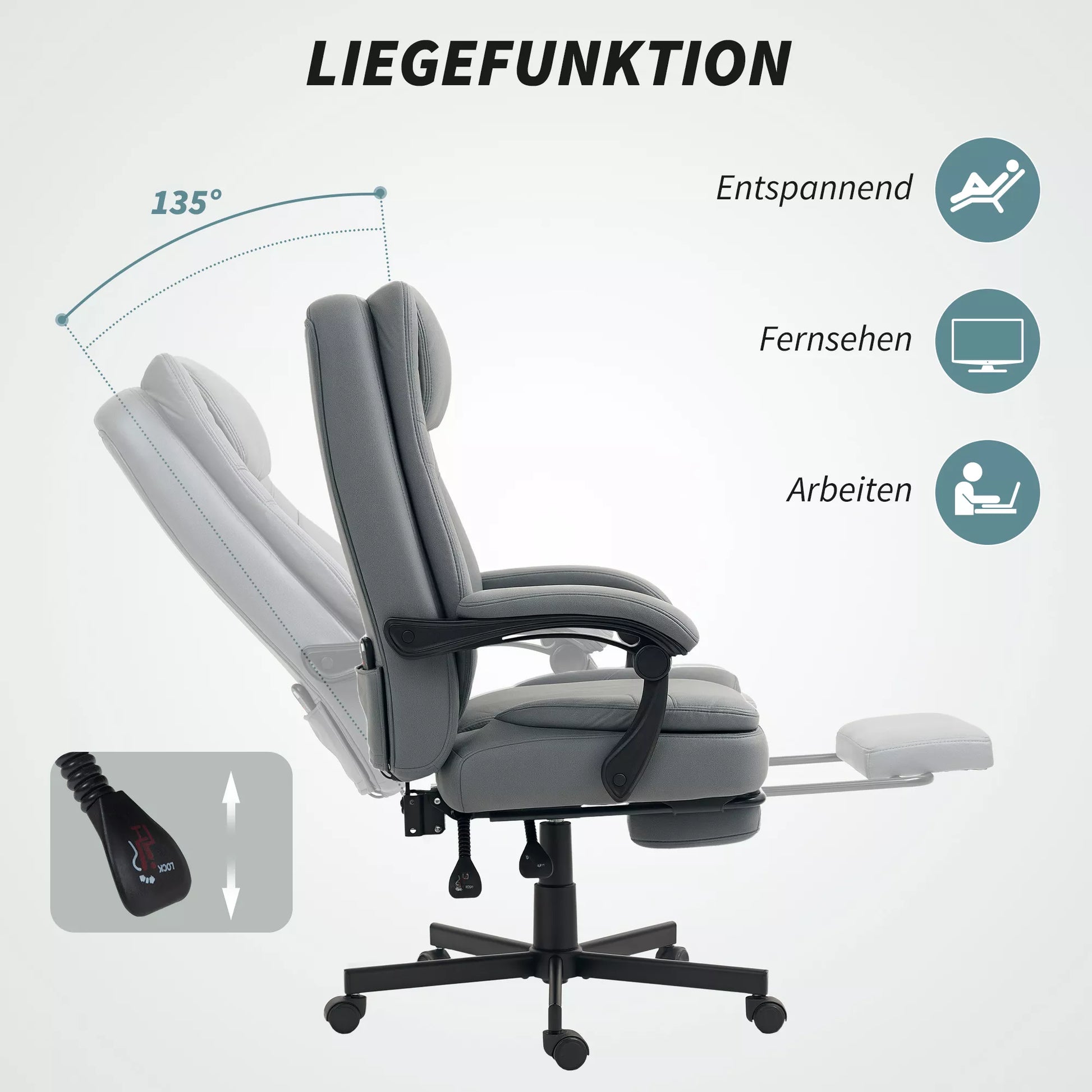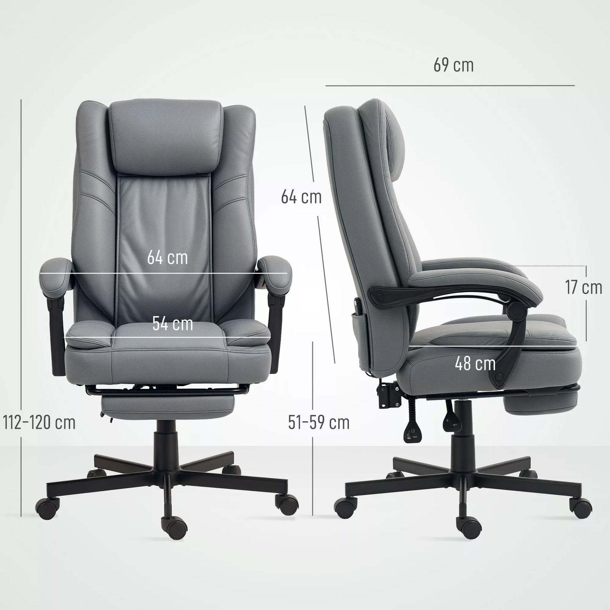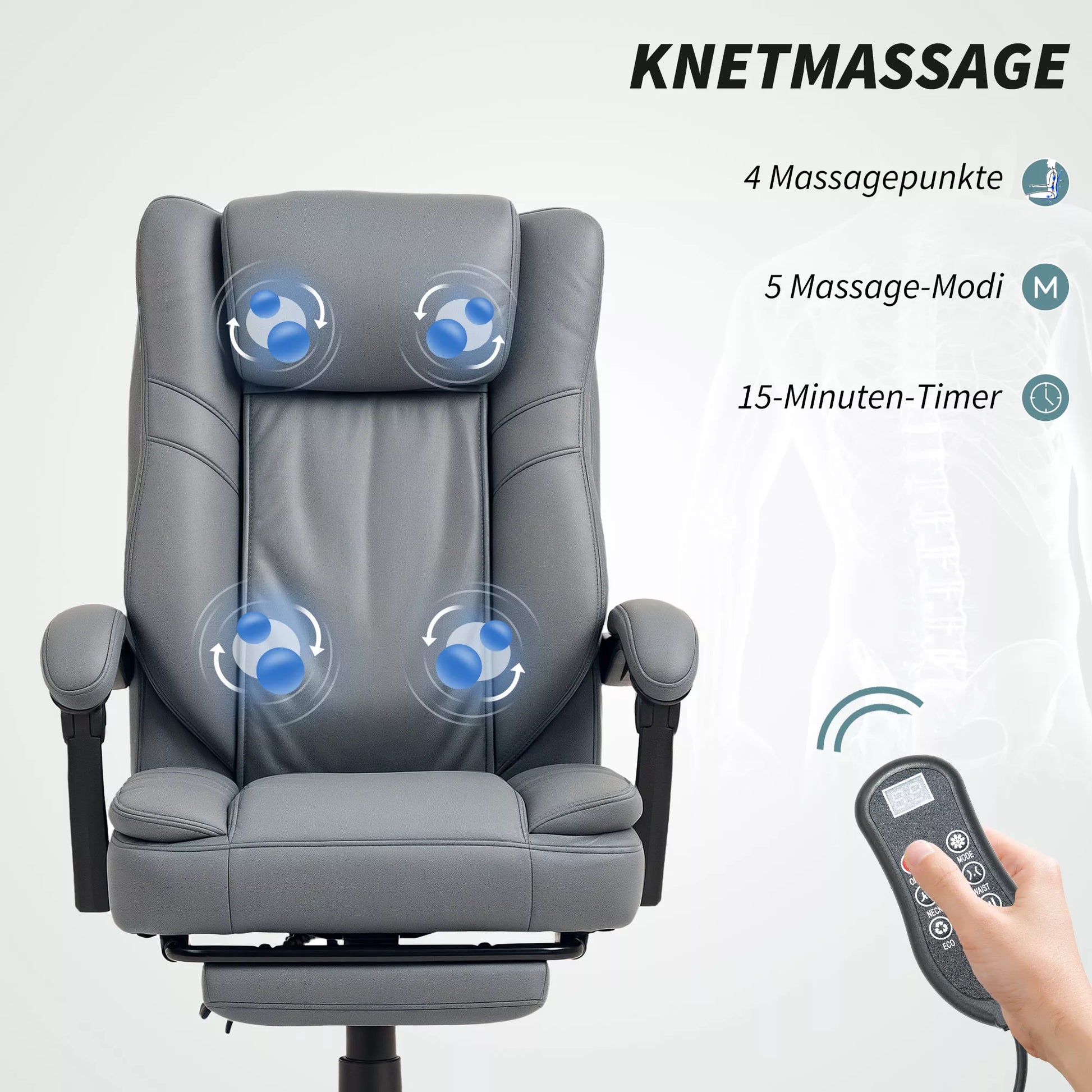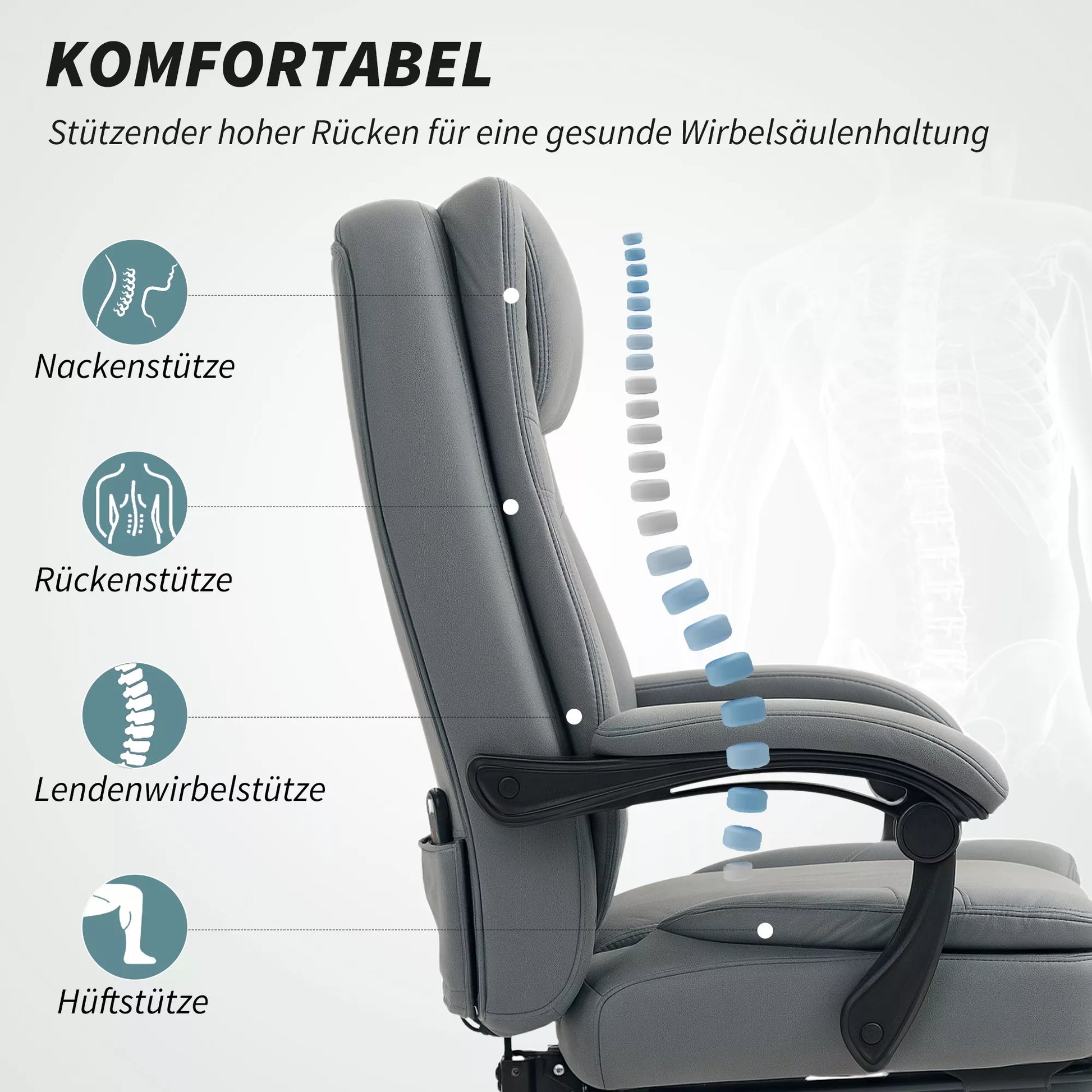 Biuro kėdė su masažo funkcija, aukščio reguliavimo rašomojo stalo kėdė su pasvirimo funkcija atlošui, paminkštinta, ant ratukų, pilka