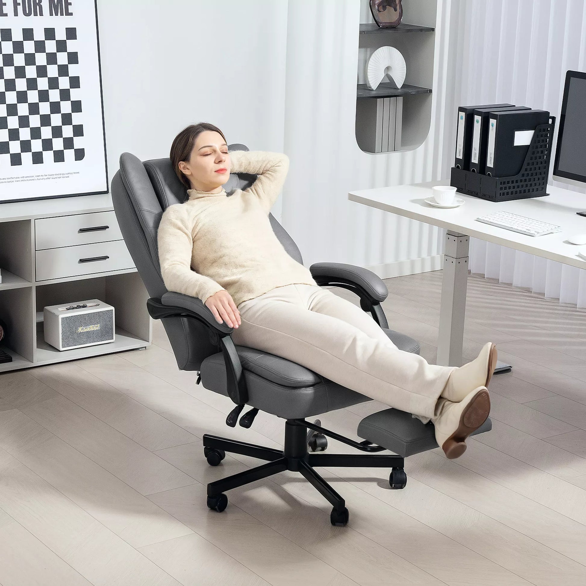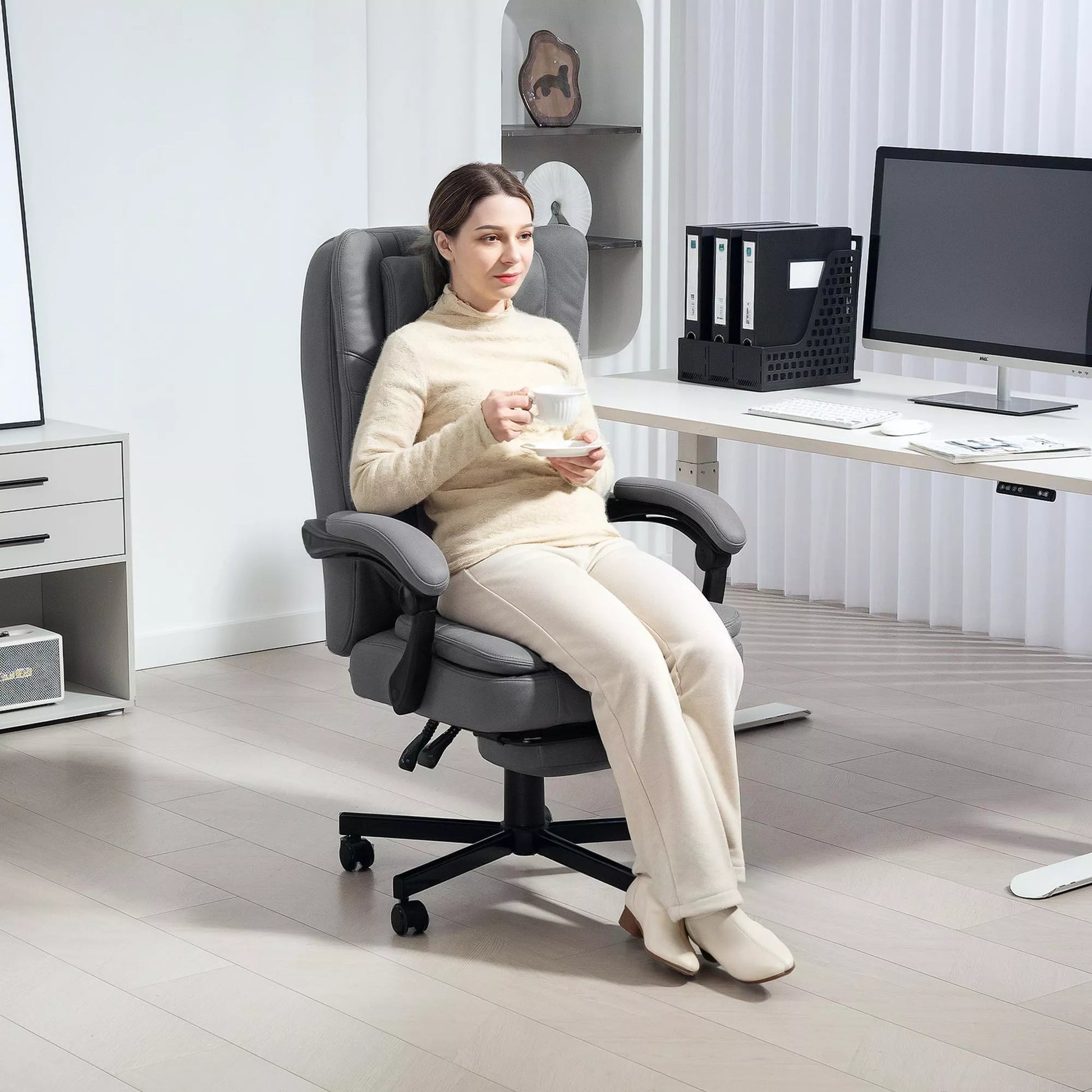 - ✔ Šefo kėdės galvos atrama palaiko jūsų kaklą, o kojų atrama suteikia papildomo komforto