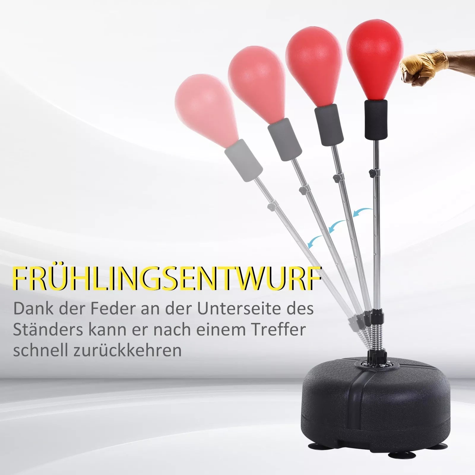 Su smūgių kamuolio (Punching ball) rinkiniu iš jūs sustiprėsite. Galite lanksčiai treniruoti ištvermę, raumenis, refleksus ir rankų bei akių koordinaciją. Smūgių kamuolio pagrindas turi siurbtukus, kurie užtikrina gerą stabilumą ant lygių paviršių. Papildomai galite užpildyti šio stovimo bokso kamuolio pagrindą vandeniu arba smėliu, kad užtikrintumėte dar didesnį stabilumą. Aukštis taip pat reguliuojamas keturiais lygiais.