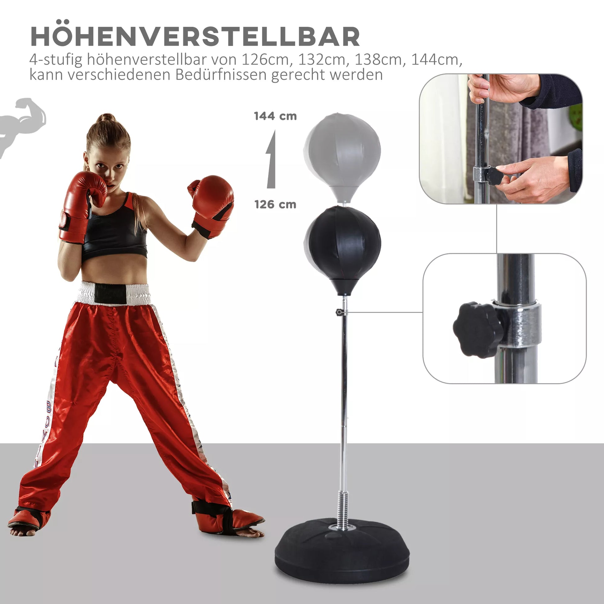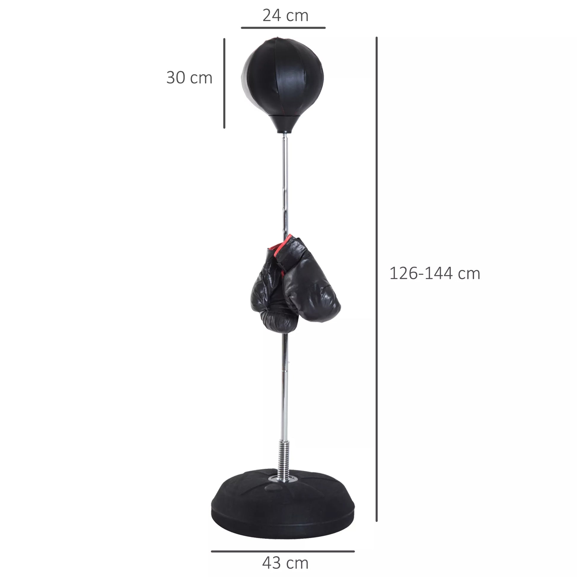 Bokso rinkinys su bokso maišu, aukščio reguliuojamas, su bokso pirštinėmis, 126-144 cm, juodas