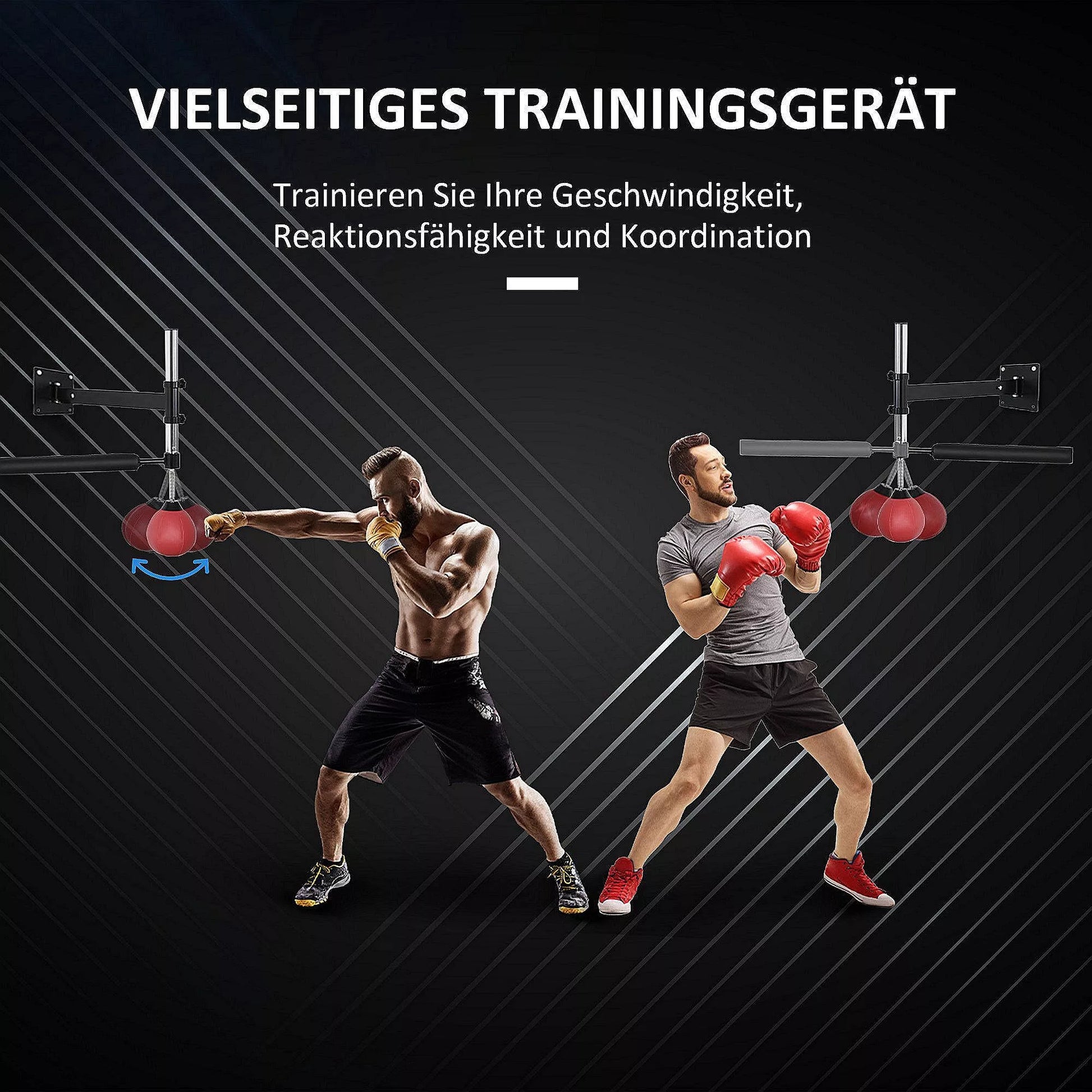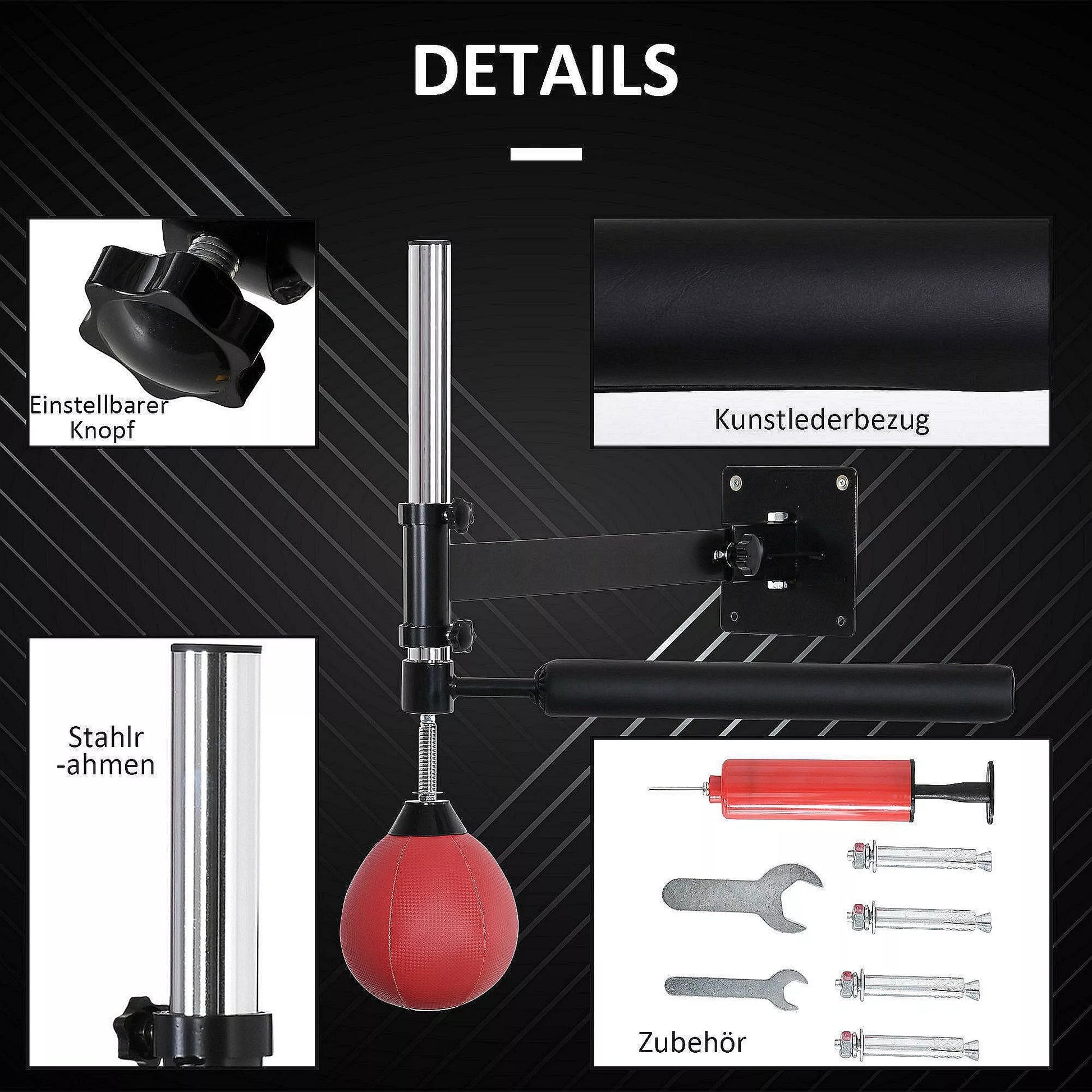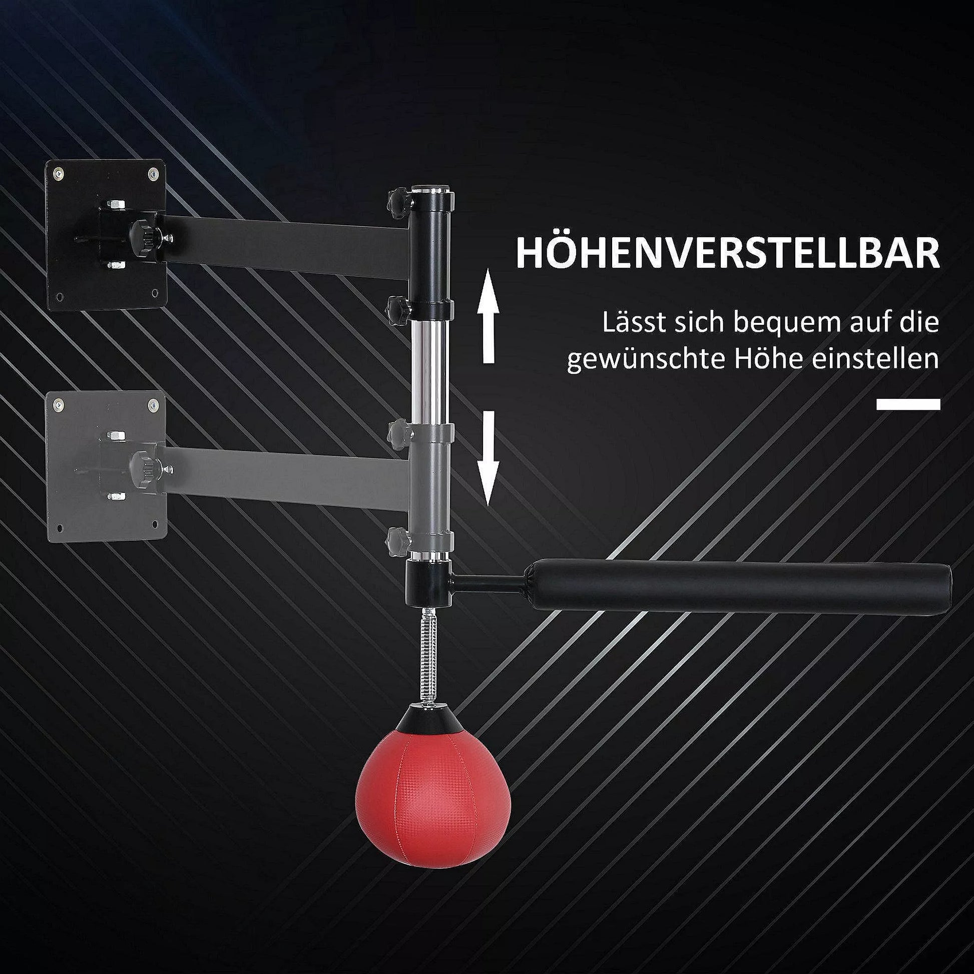 Bokso stovas su speedball'u ir refleksine lazdele, sieninis tvirtinimas, reguliuojamas aukščiui, Juoda/Raudona