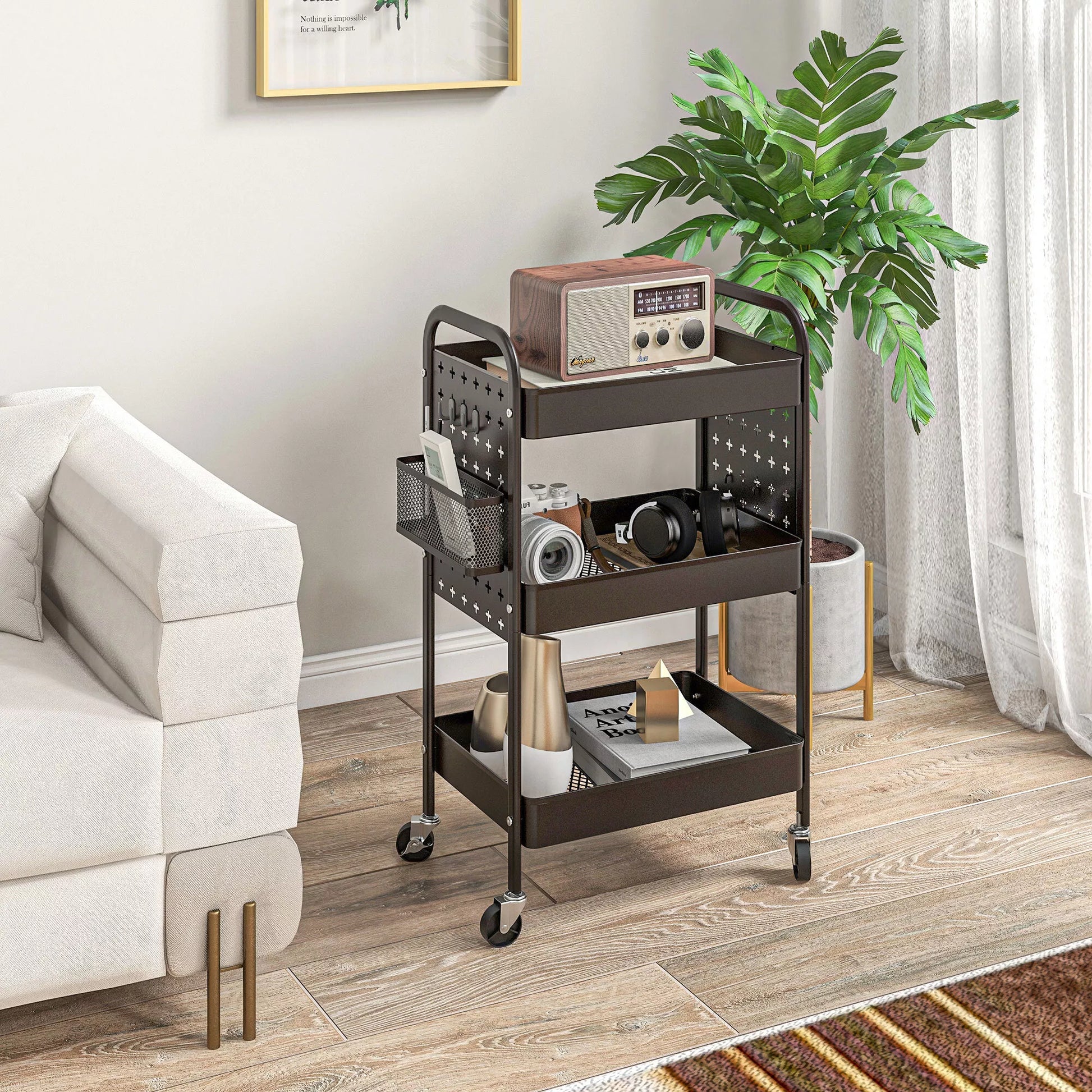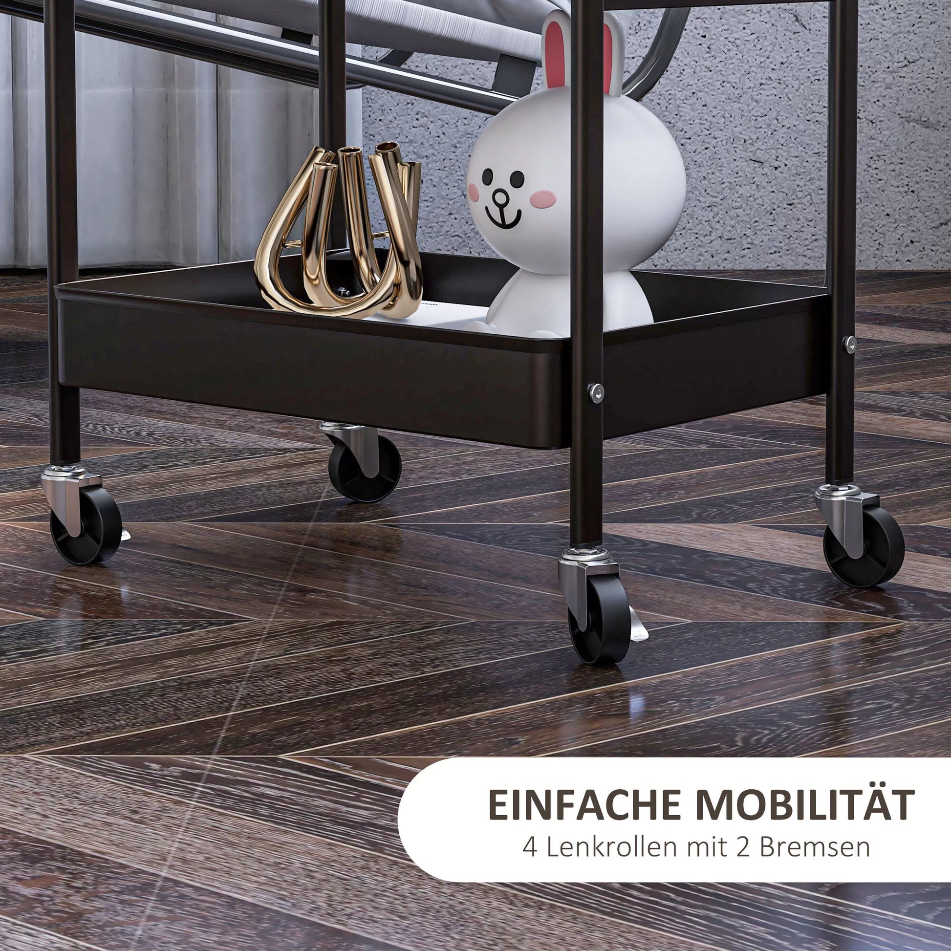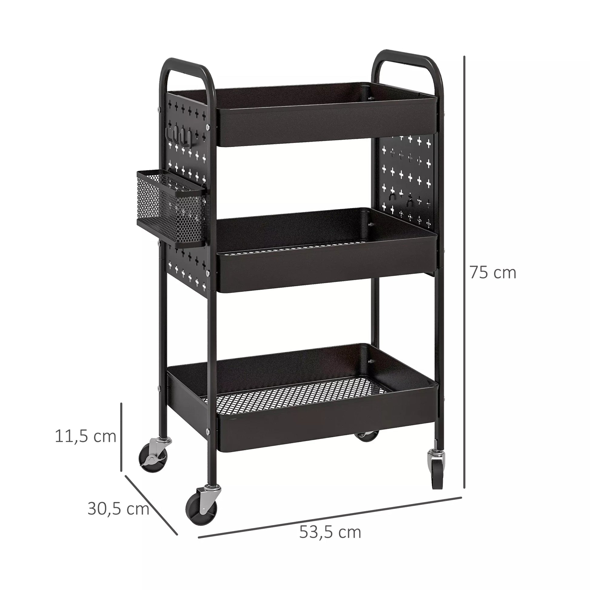 Daugiafunkcis virtuvės vežimėlis, 3 lentynos, 4 ratukai, 53,5 cm x 30,5 cm x 75 cm, juodas