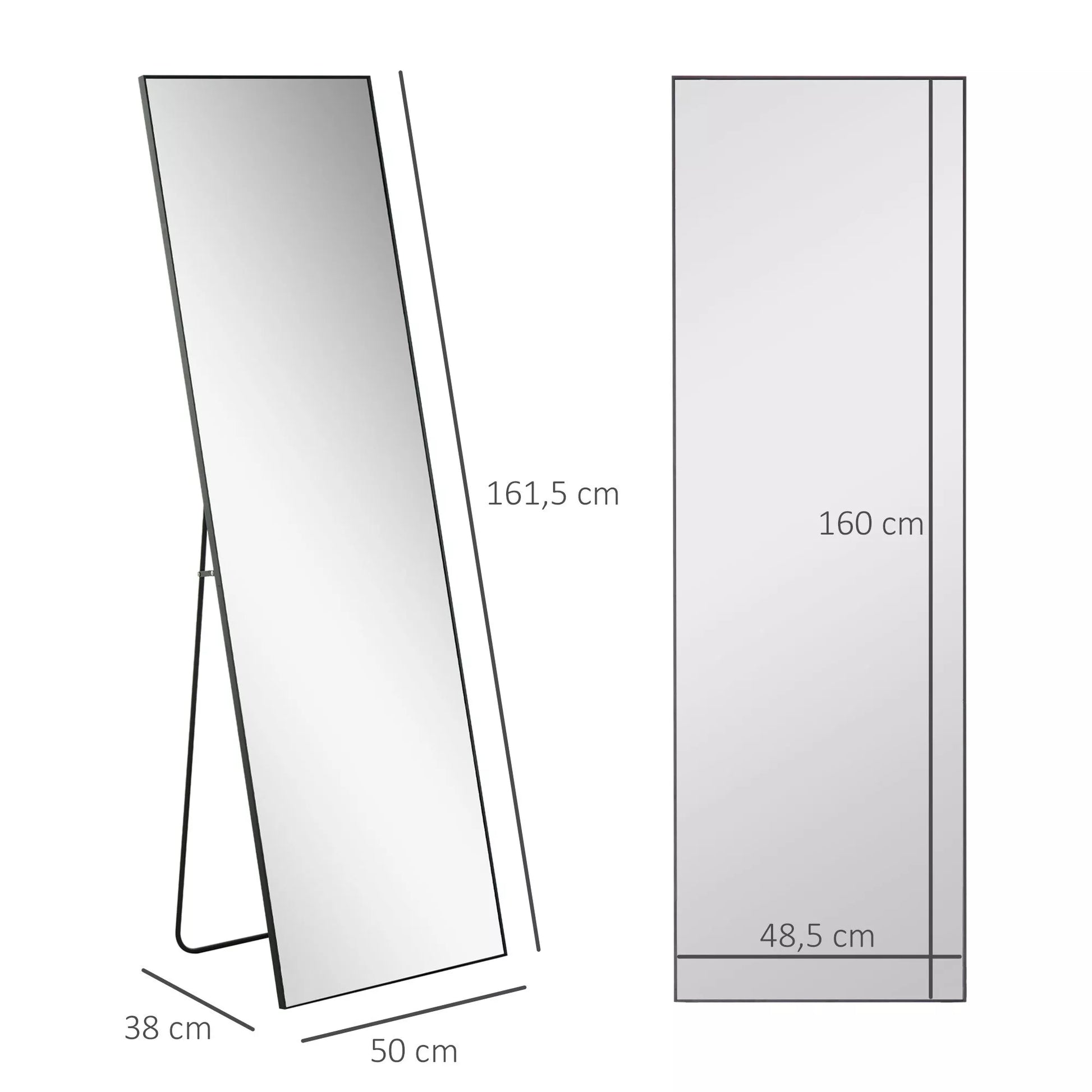 Didelis pastatomas veidrodis, sieninis veidrodis, viso kūno veidrodis, 161,5 cm, sidabrinis