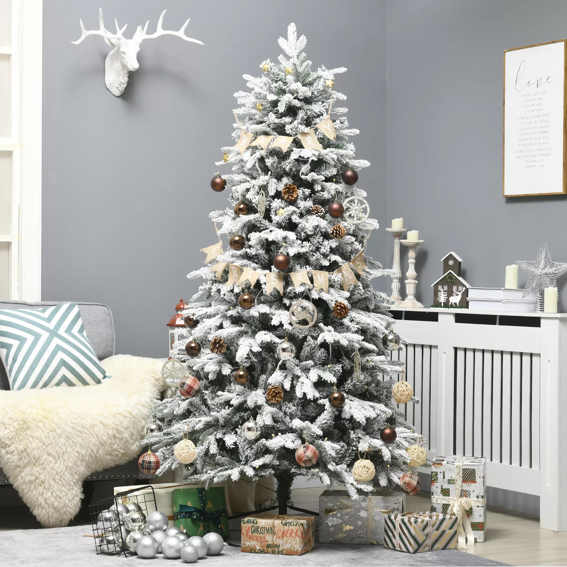- ✔ Padengta dirbtiniu sniegu, kad atrodytų žiemiškai
