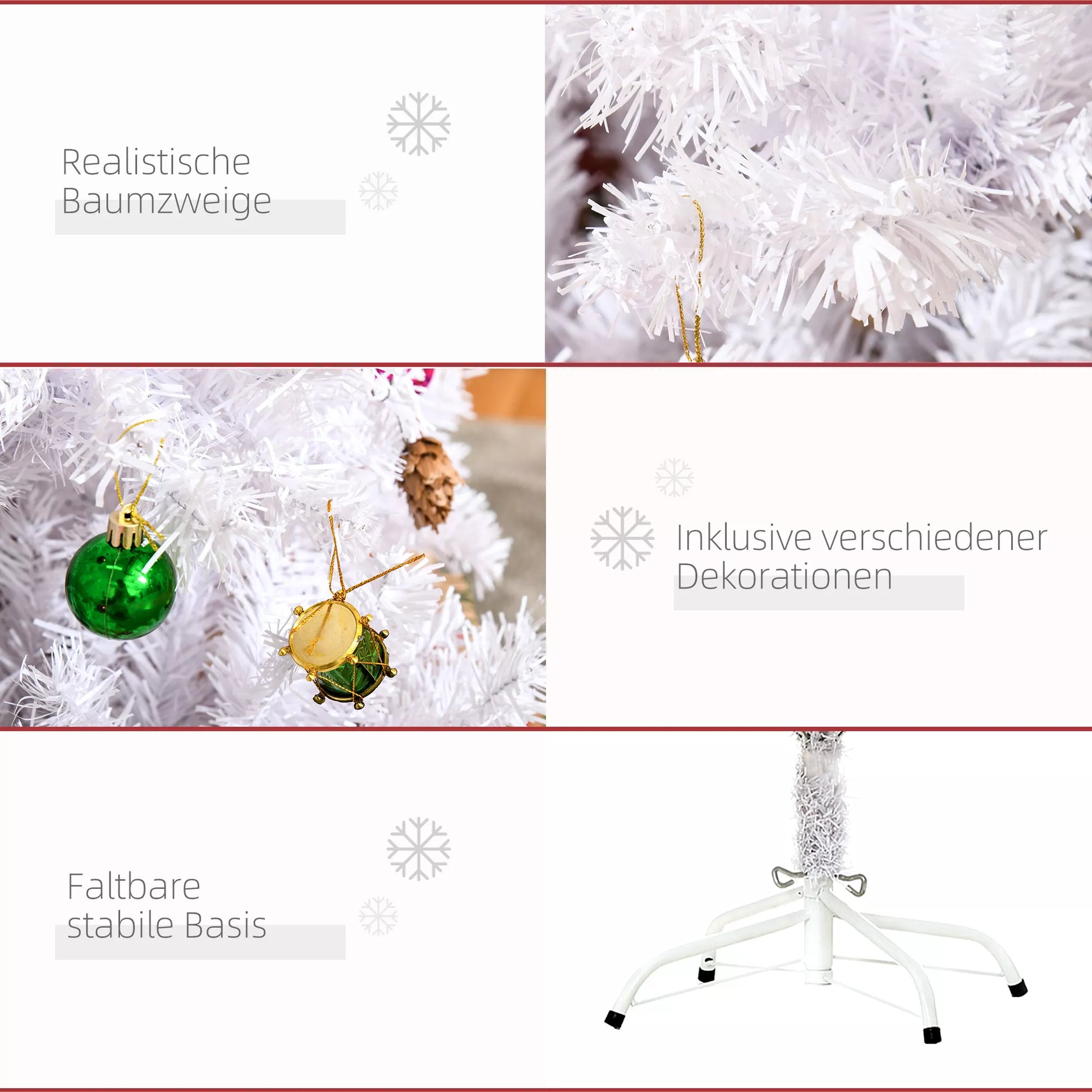 Balta yra kilni žiemos spalva. Nors daugelyje Vokietijos vietovių ne visada būna baltos Kalėdos, čia galime tai išspręsti. Mūsų dirbtinė sniego baltumo eglutė yra kažkas ypatingo Jums. Ji paverčia Jūsų namus mažu žiemos stebuklų šalies kampeliu. Ir tai be spygliukų mėtymo ar šakų svyravimo laikui bėgant. Be savo ekstravagantiškos išvaizdos, mūsų kalėdinė eglutė suteikia visus dirbtinės eglutės privalumus. Daugkartinio naudojimo, nenaikina spygliukų, nereikia rūpintis išmetimu, ir ją patogu statyti net šalia radiatoriaus. Visiškai be gaisro pavojaus ar išsausėjimo. Eglutė bus patogiai pristatyta Jums į namus. Surinkimas yra itin lengvas, o pakuotėje rasite subtilų gražių kalėdinių papuošalų pasirinkimą. Tegul Jūsų namuose būna kilnios Kalėdos!