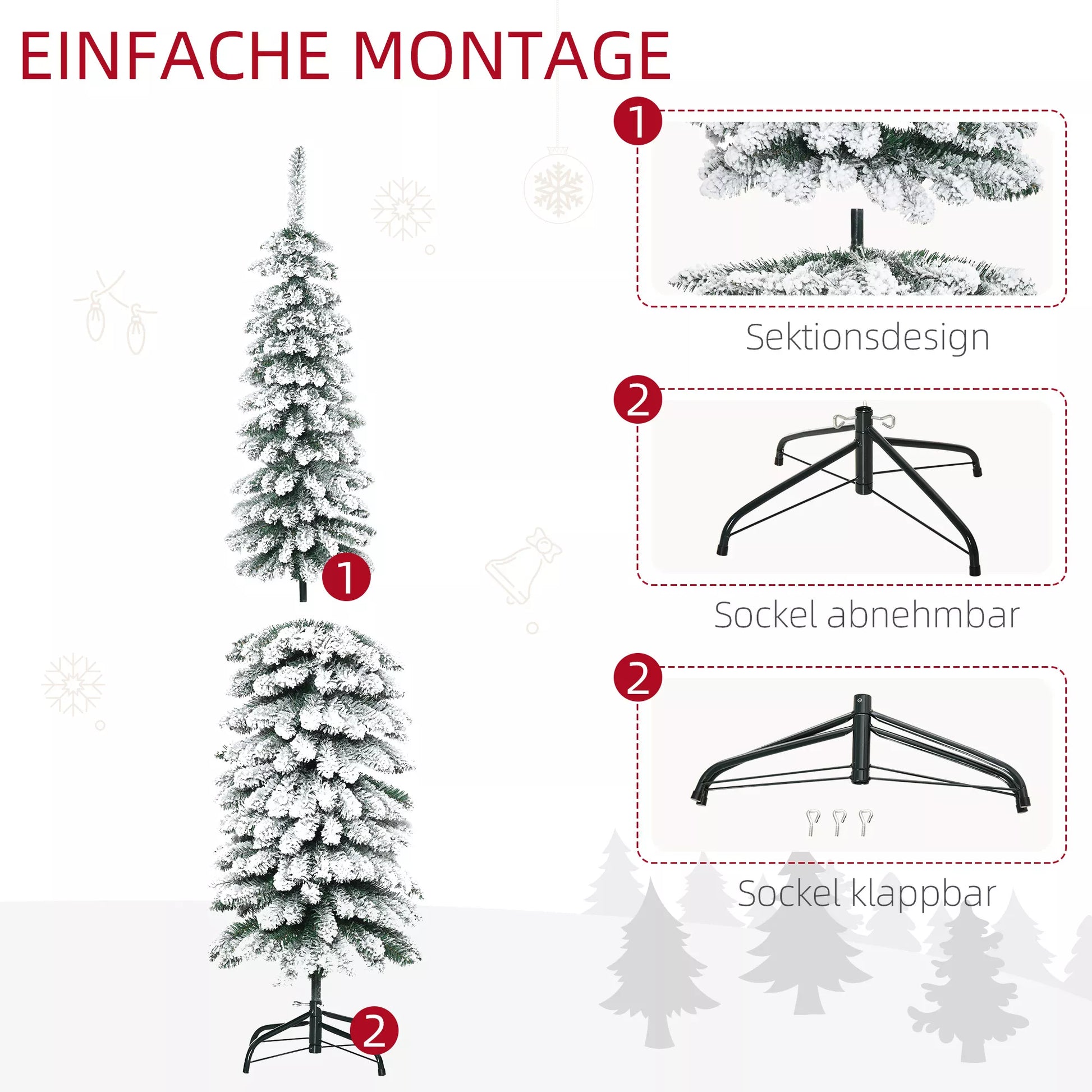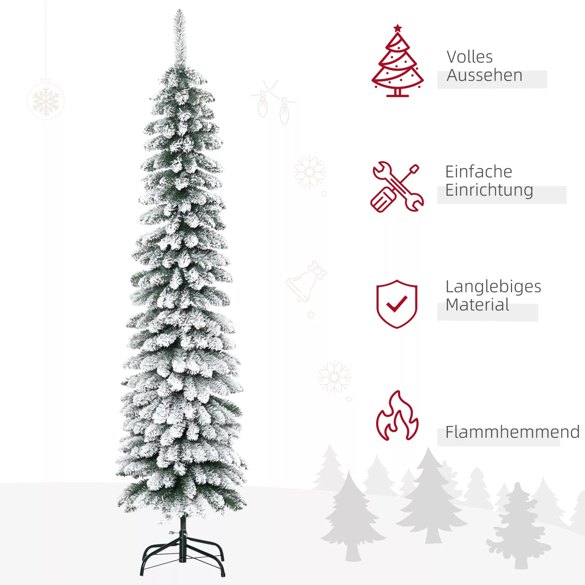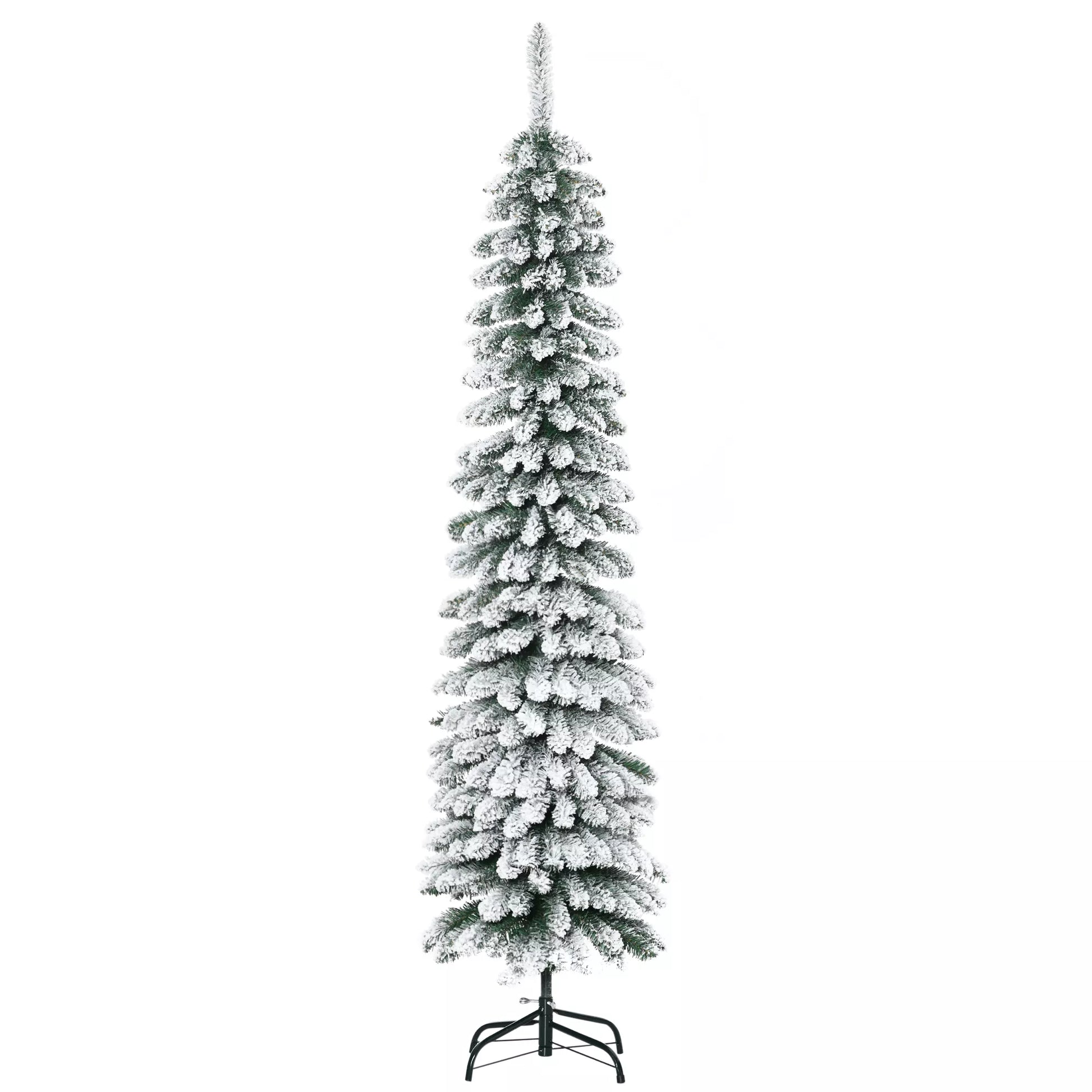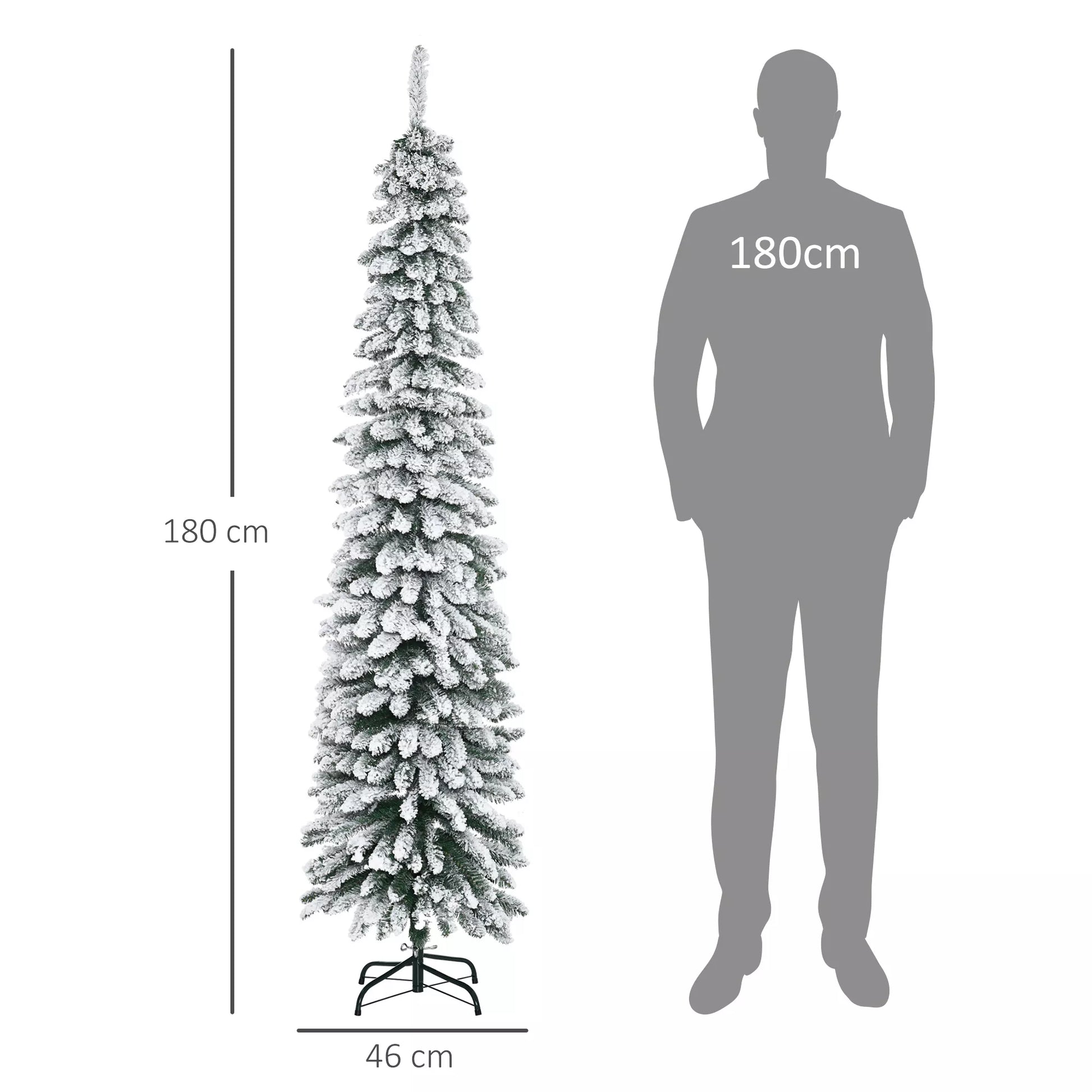 Dirbtinė Kalėdų eglutė, sniegu padengta, siauro dizaino, atspari ugniai, 180 cm, Žalia/Balta