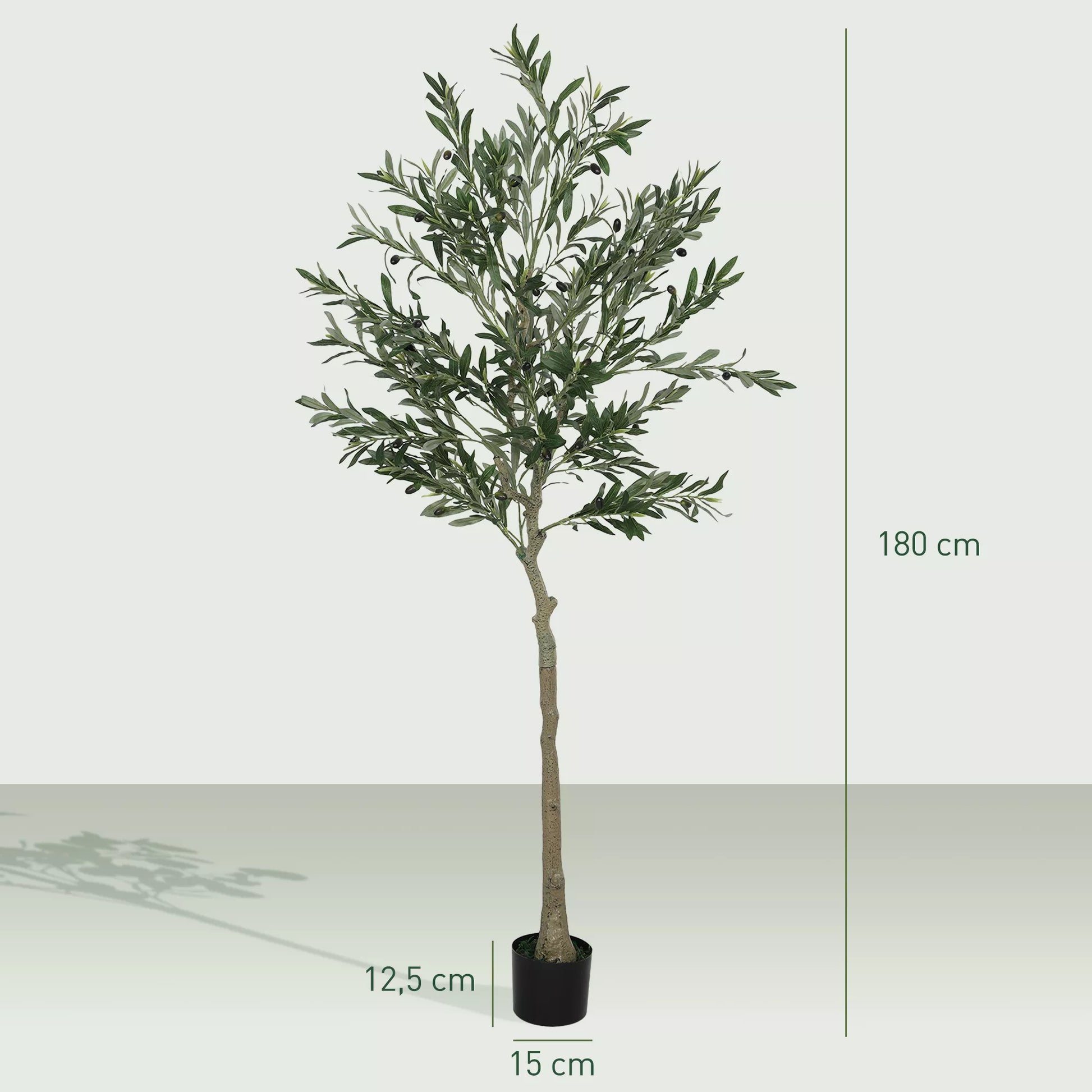 Dirbtinis alyvmedis, 180 cm, 900 lapų, 40 alyvuogių, tvirtas vazonas, dekoratyvinis augalas, žalias