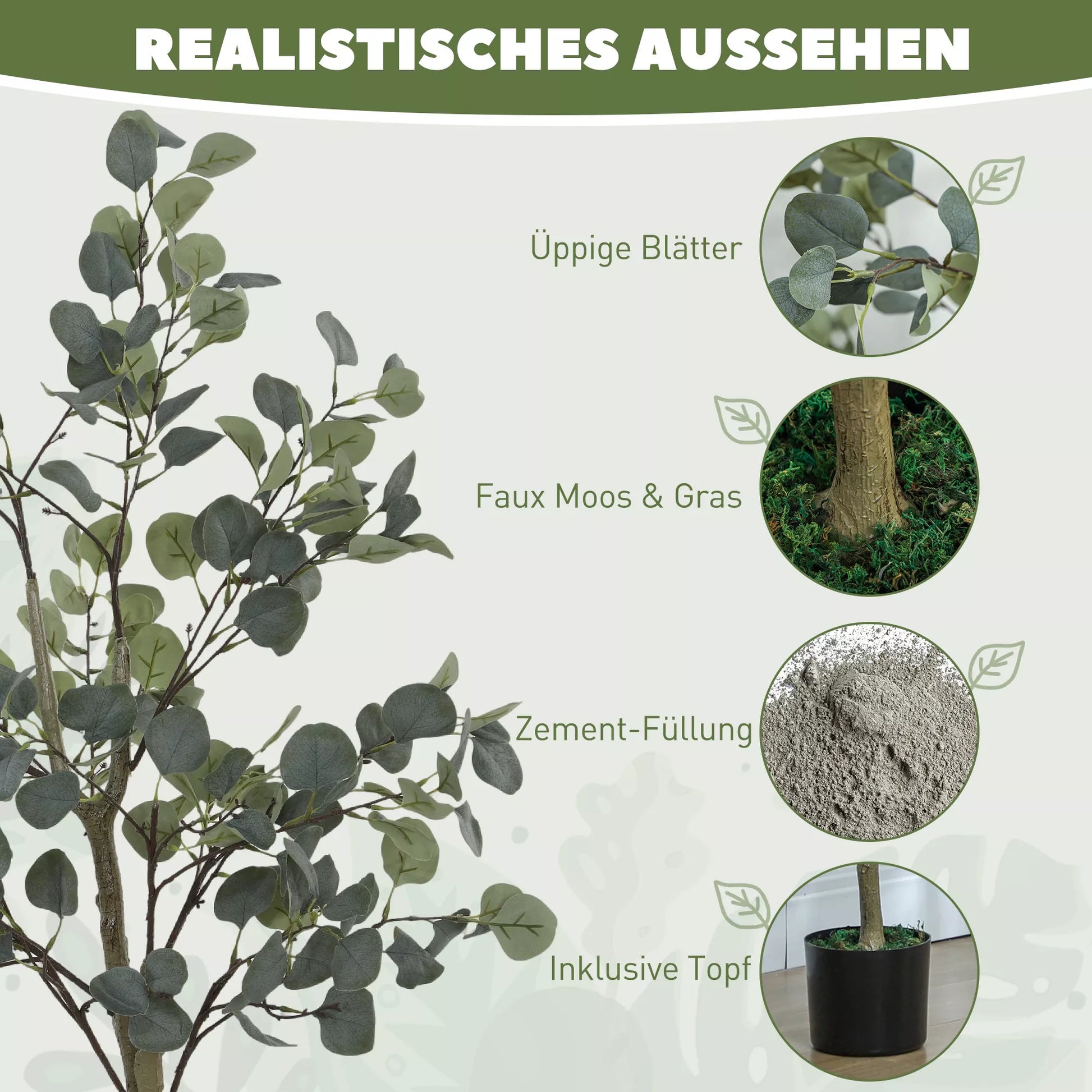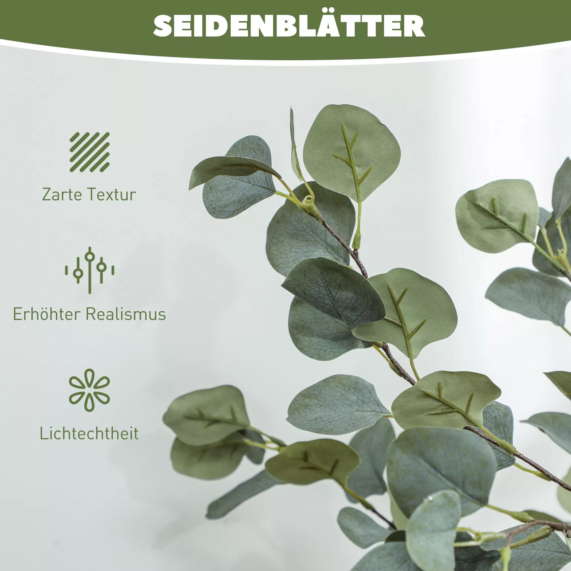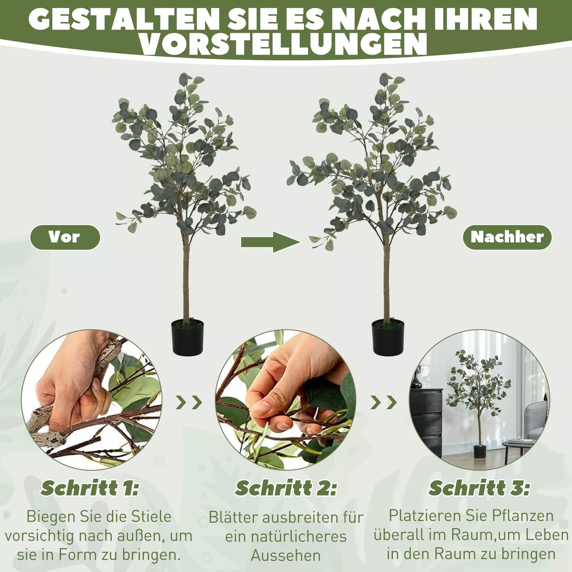 Paverskite savo erdves dirbtiniu augalu su 230 tankių sidabrinių lapų, kurie atrodo įspūdingai tikroviškai. Šis dirbtinio šilko lapų kambarinis augalas su natūraliai atrodančiais stiebais ir dirbtinėmis samanomis jūsų namams suteiks gaivios žalios spalvos ištisus metus. Mėgaukitės lengvai prižiūrimo kambarinių augalų teikiama prabanga – be laistymo ar saulės šviesos!