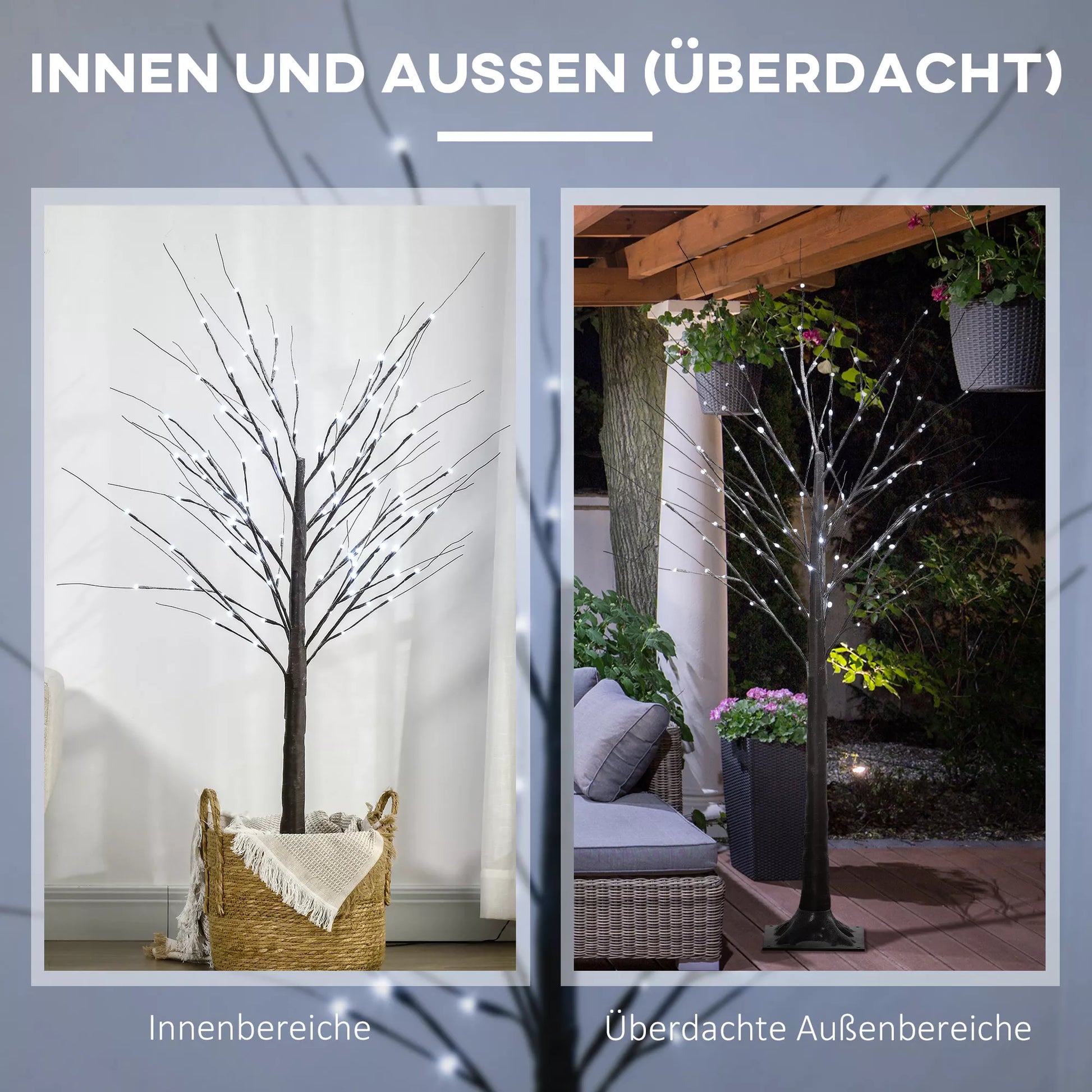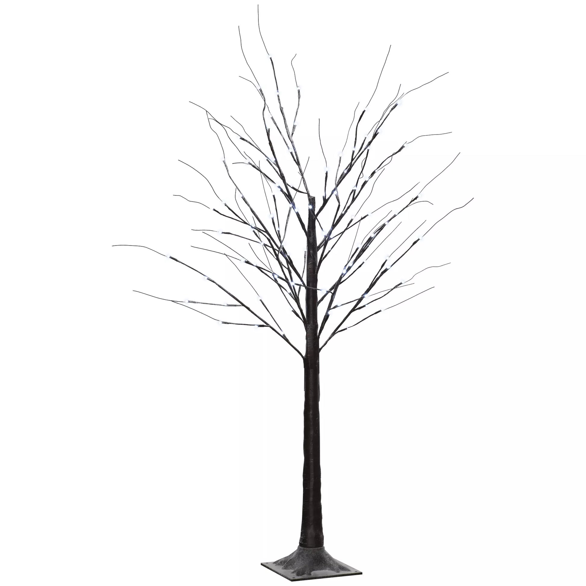 Dirbtinis beržas su LED apšvietimu, 96 šiltai baltos spalvos mikroskadinės LED lemputės, 150 cm, rudas