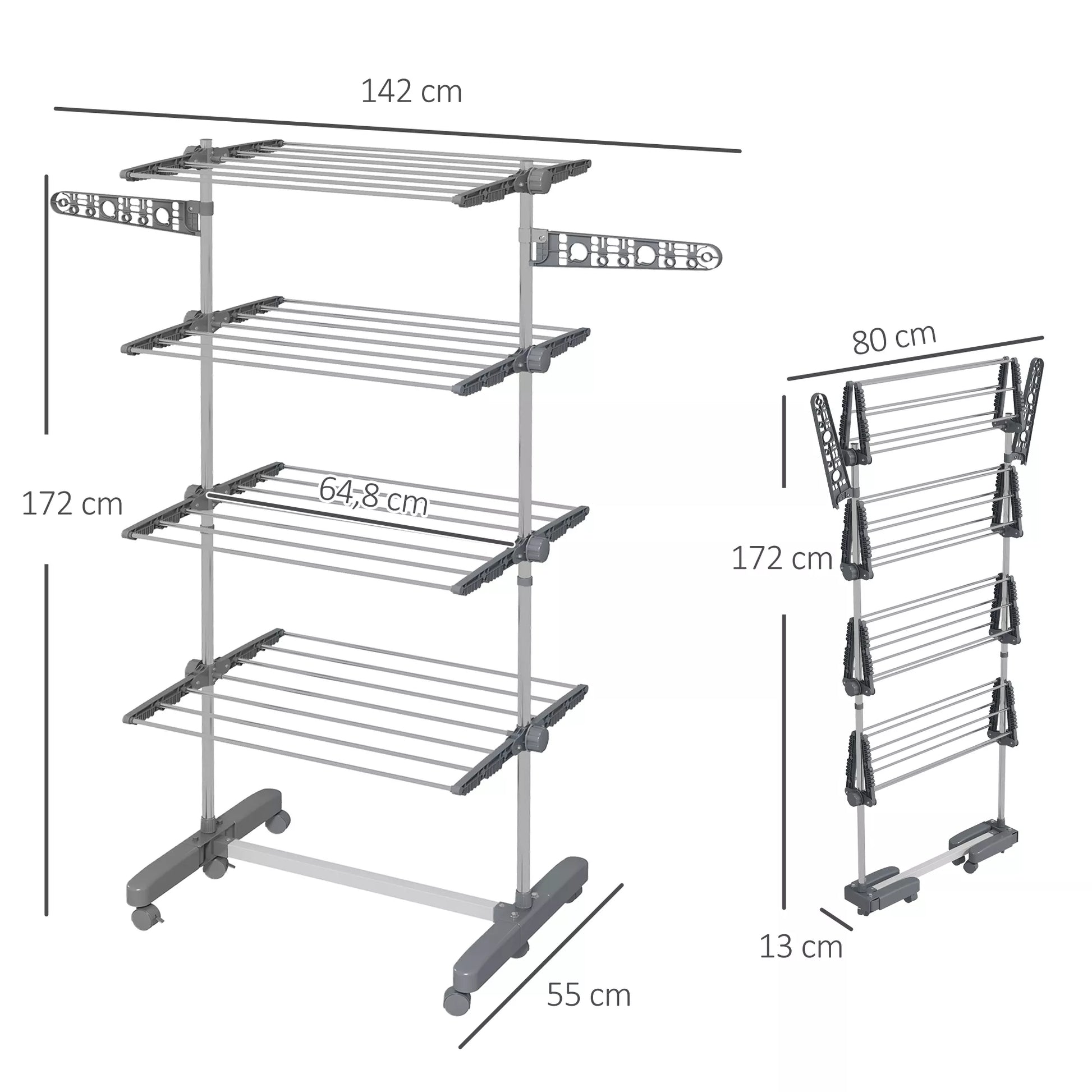 Drabužių džiovykla 5 pakopų, sulankstoma, "Vieno paspaudimo" sistema, 142 cm x 55 cm x 172 cm, pilka + sidabrinė