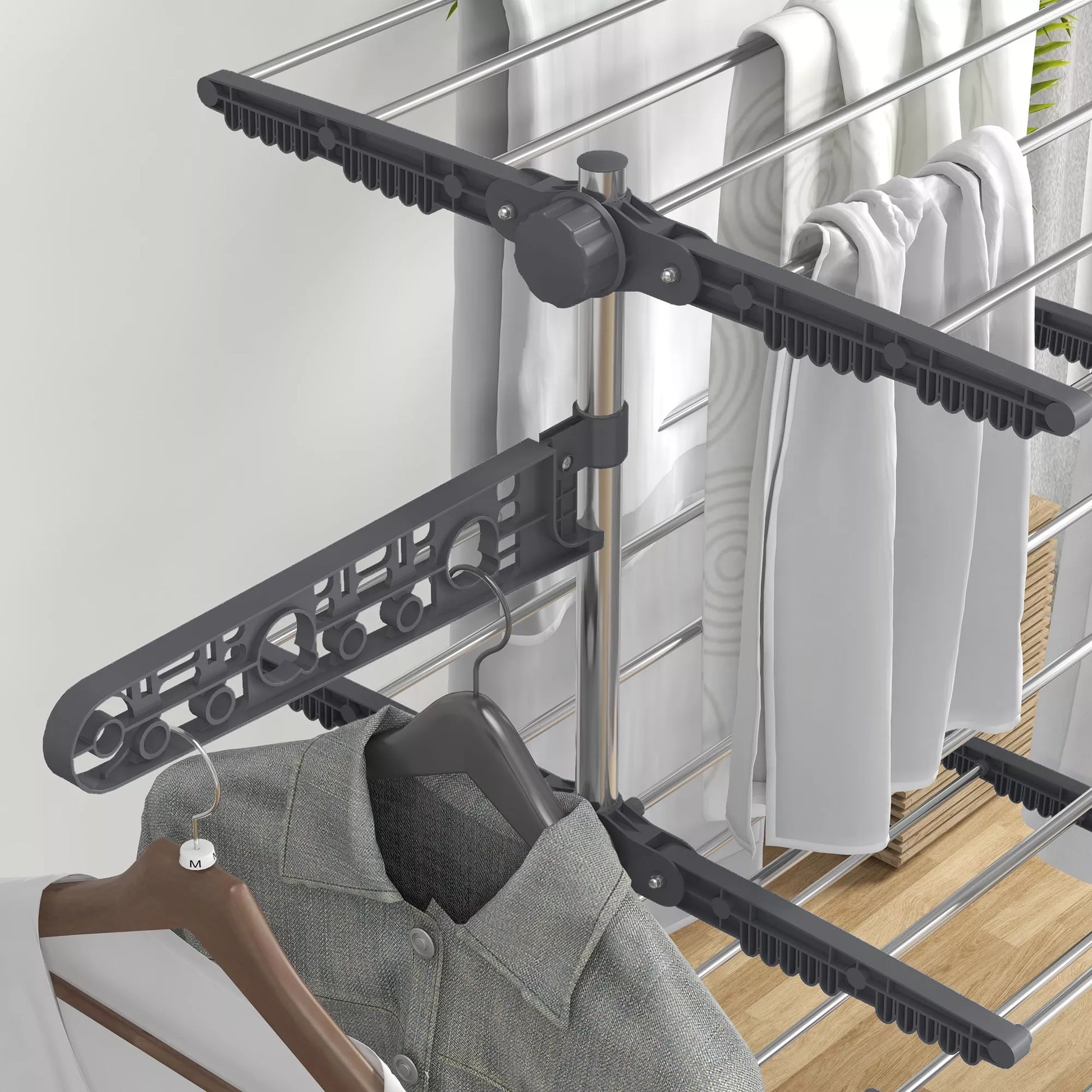 Pasirinkite puikų sprendimą savo drabužiams džiovinti su mūsų sulankstomu drabužių džiovintuvu. Dėl individualiai pritaikomų sekcijų įvairiems drabužių tipams jis suteikia maksimalų universalumą. Su daugybe pakabinimo padėčių jis užtikrina optimalų lankstumą ir puikiai tinka naudoti patalpose arba balkonuose su ribota erdve.