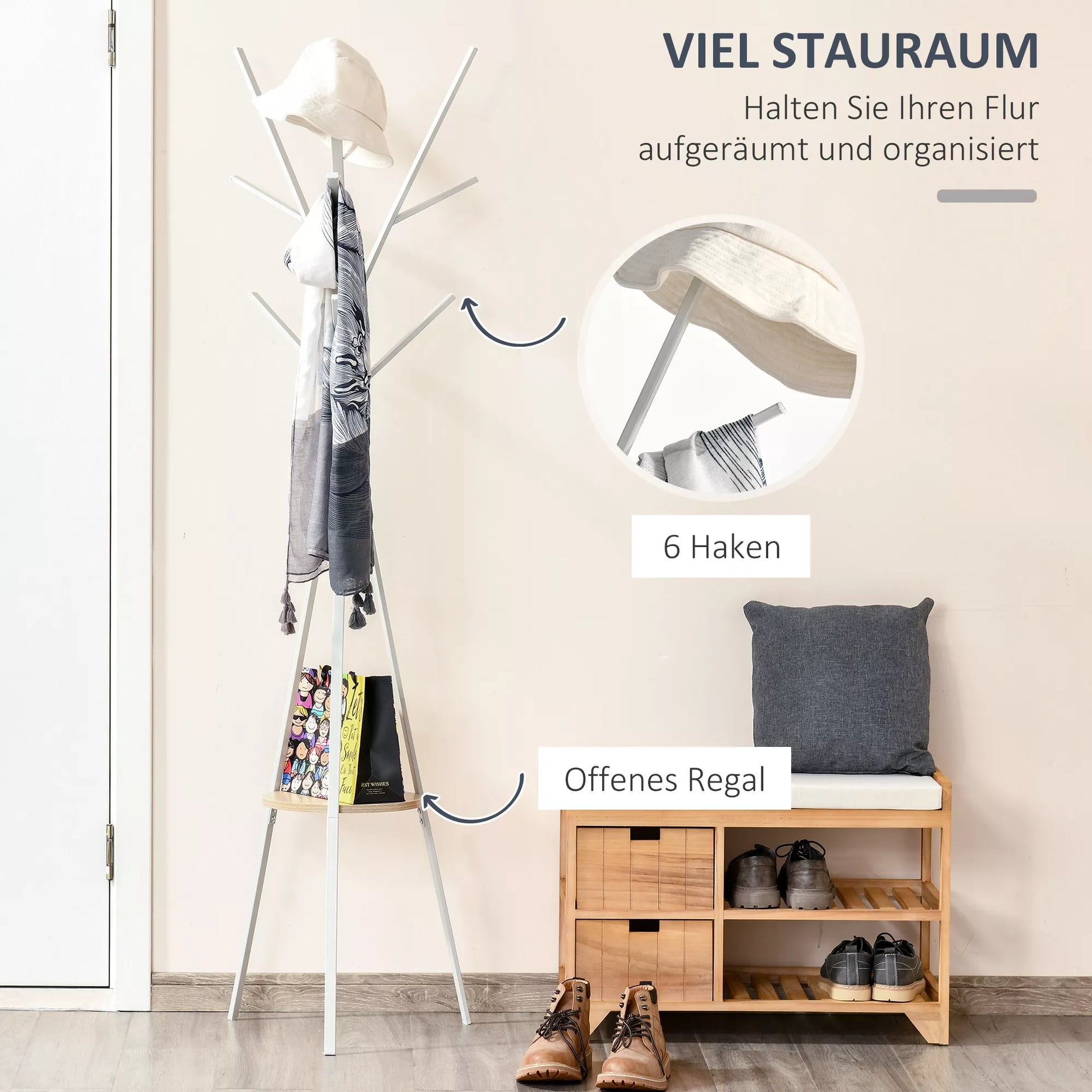 - ✔ 3 drabužių strypai su 8 kabliukais pvz. paltai, rankinės ir šaliai