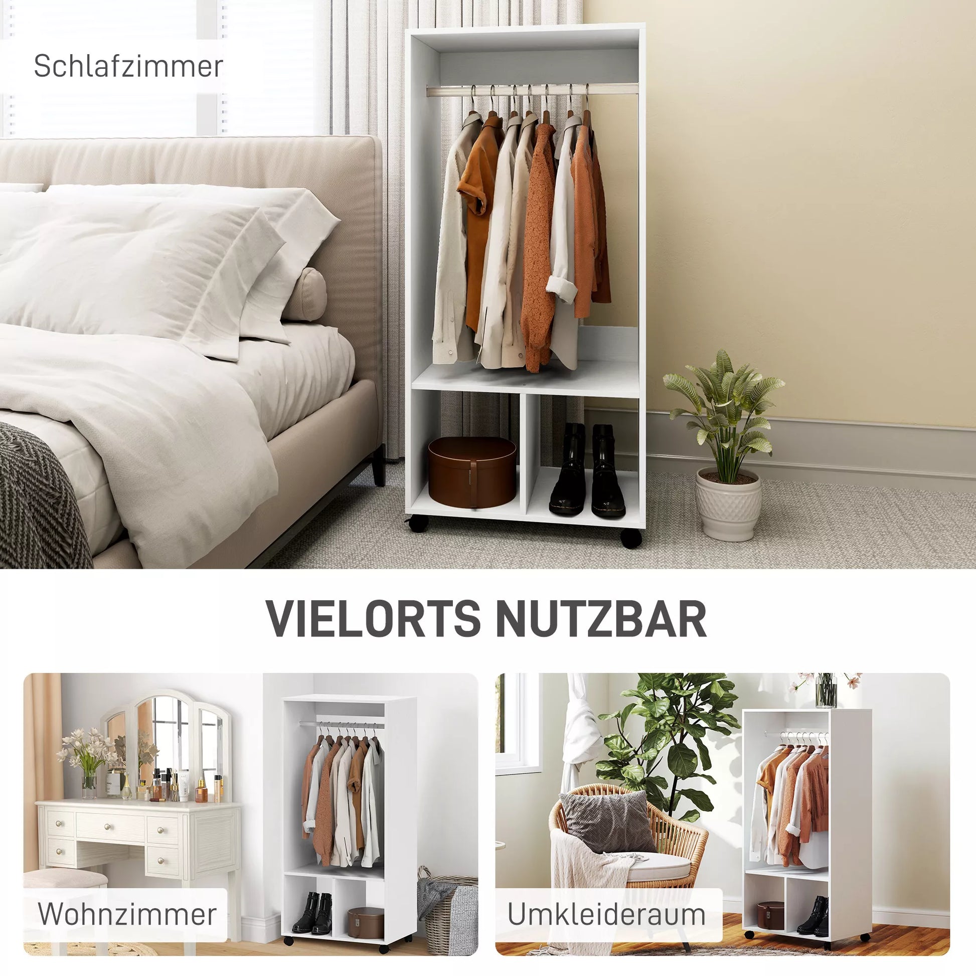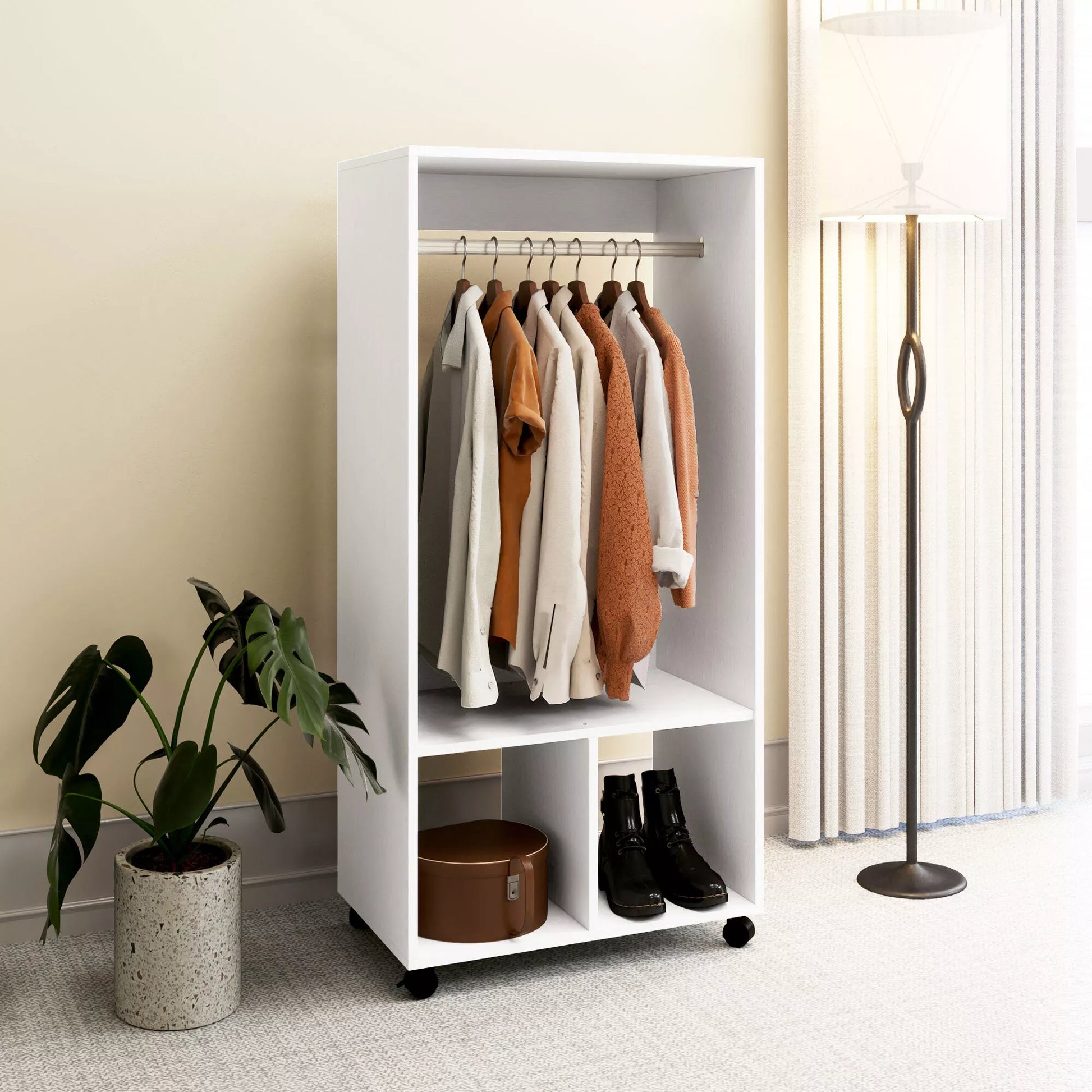 Ši aukštos kokybės, kilnojamoji ir atvira spinta yra ideali drabužiams laikyti ir tvarkai palaikyti. Ji komplektuojama su pakabinama lentyna ir dviem skyriais, suteikdama pakankamai vietos visiems jūsų daiktams. Spintos apačioje esantys ratukai leidžia lengvai ją pastumti į norimą vietą.