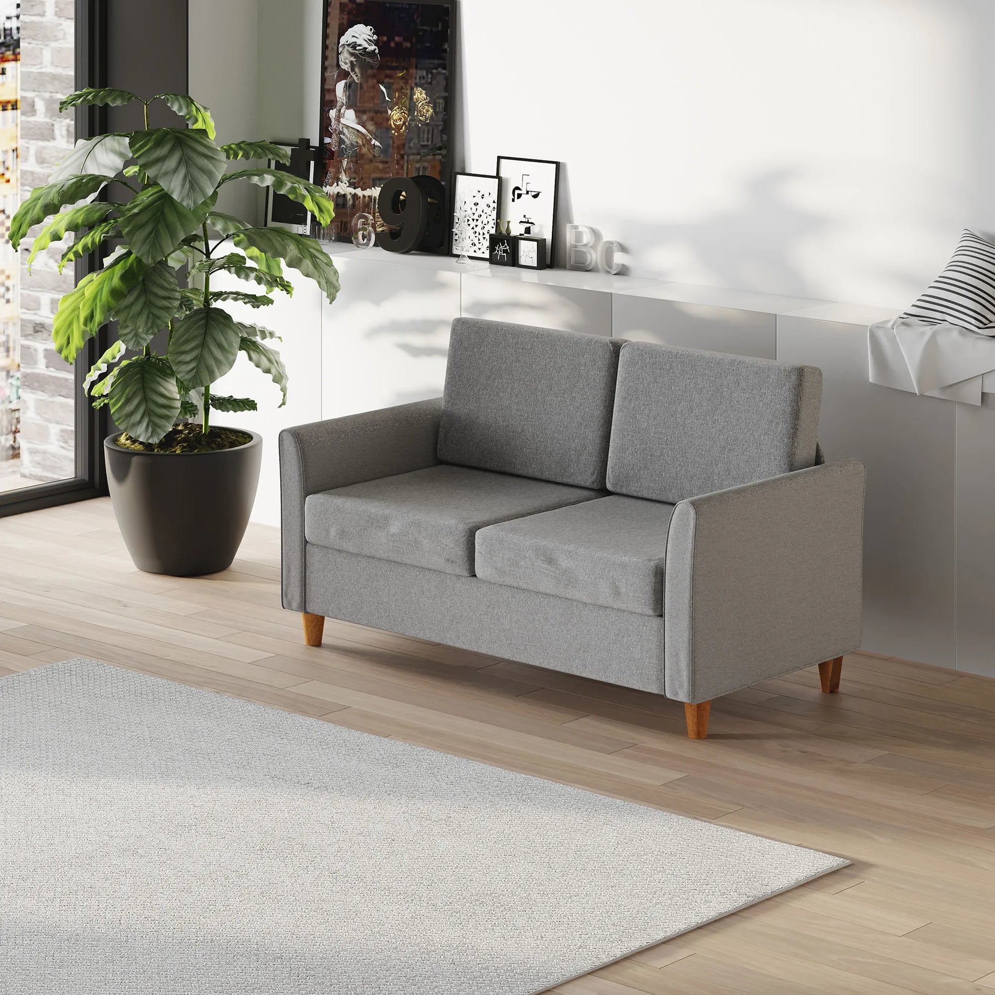 ® Dviejų vietų sofa | Nuimamos pagalvėlės | Linas, putplastis, kaučiuko mediena | Šviesiai pilka | 141 x 70 x 78 cm