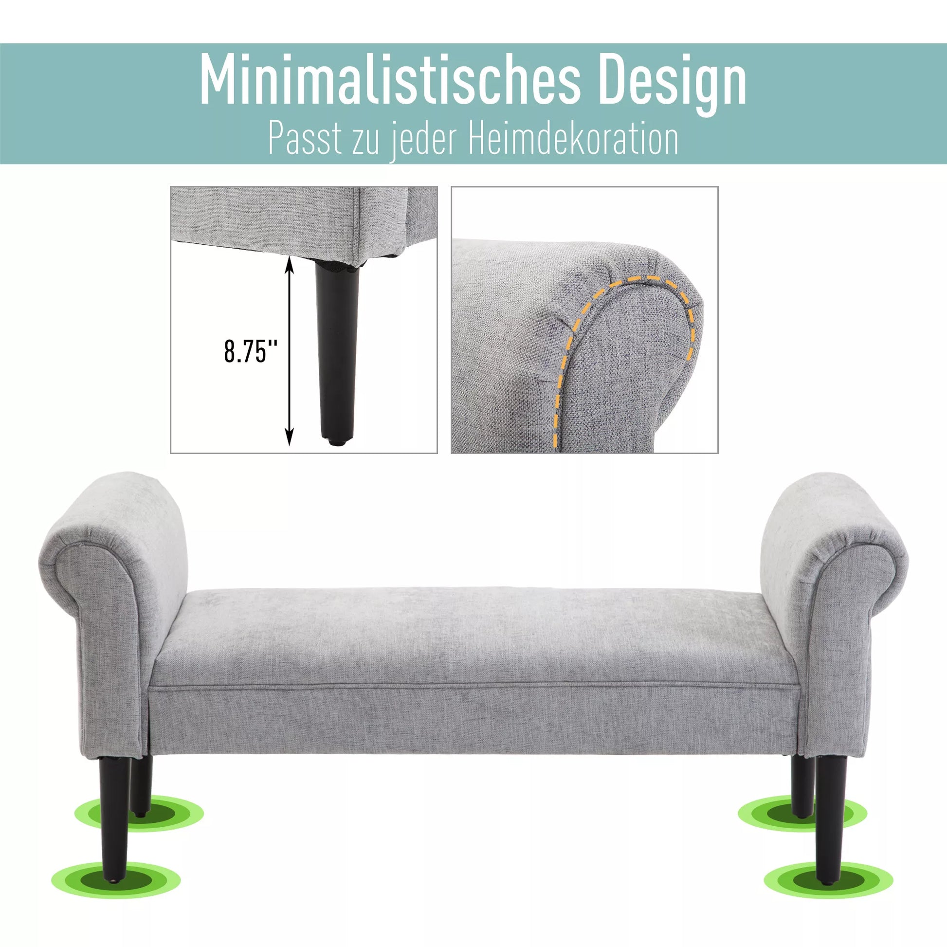 HOMCOM Elegantiška minkšta svetainės, prieškambario, lovos suolas/taburetė su atlenkiamomis šoninėmis dalimis, lininis audinys, putplastis, poliesteris, šviesiai pilka, 132 x 45,5 x 58 cm