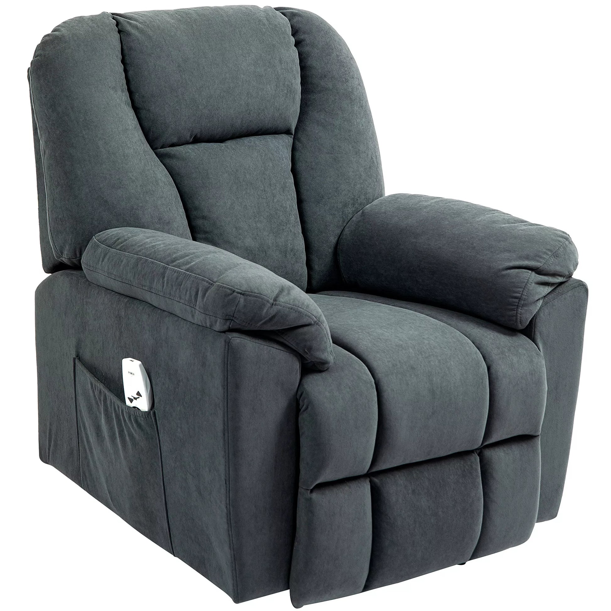 Elektrinis relaksacijos fotelis su masažo ir šildymo funkcijomis, paminkštintas fotelis su USB jungtimi, šoninėmis kišenėmis, pilkas