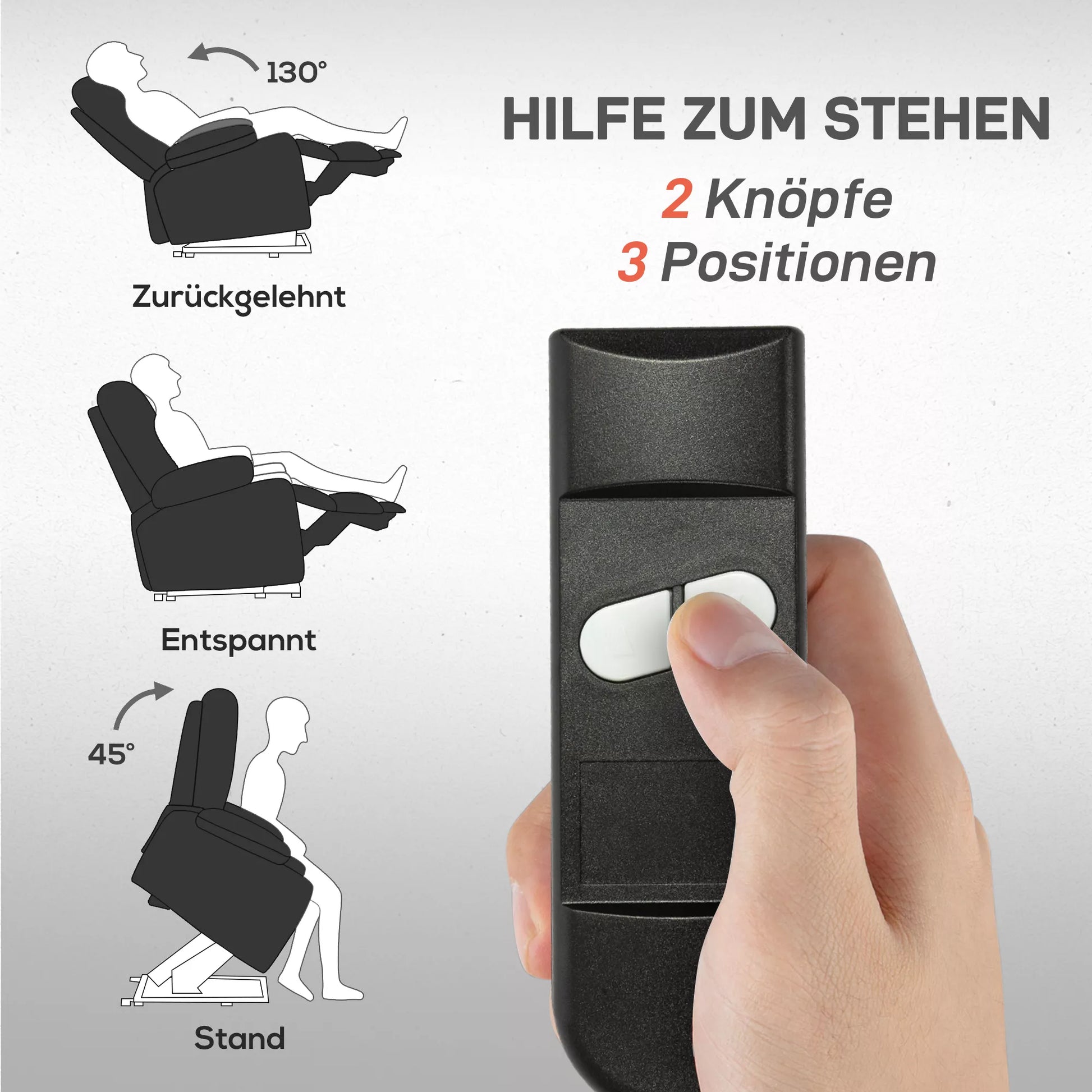 - ✔ 2-in-1 koncepcija: elektrinė kėdė su pagalba atsistojant ir poilsio kėdė