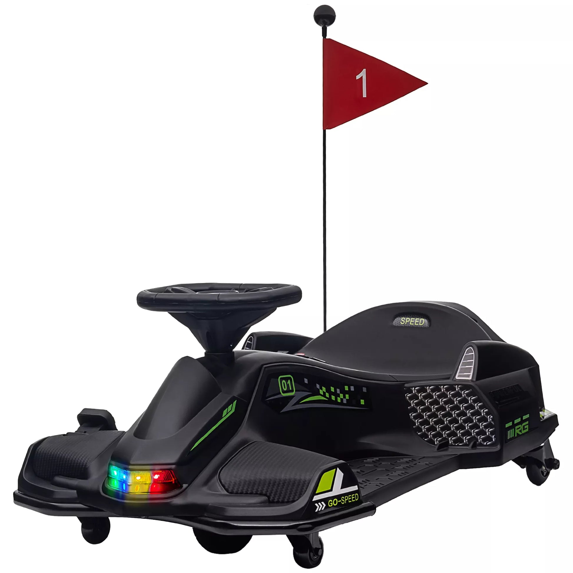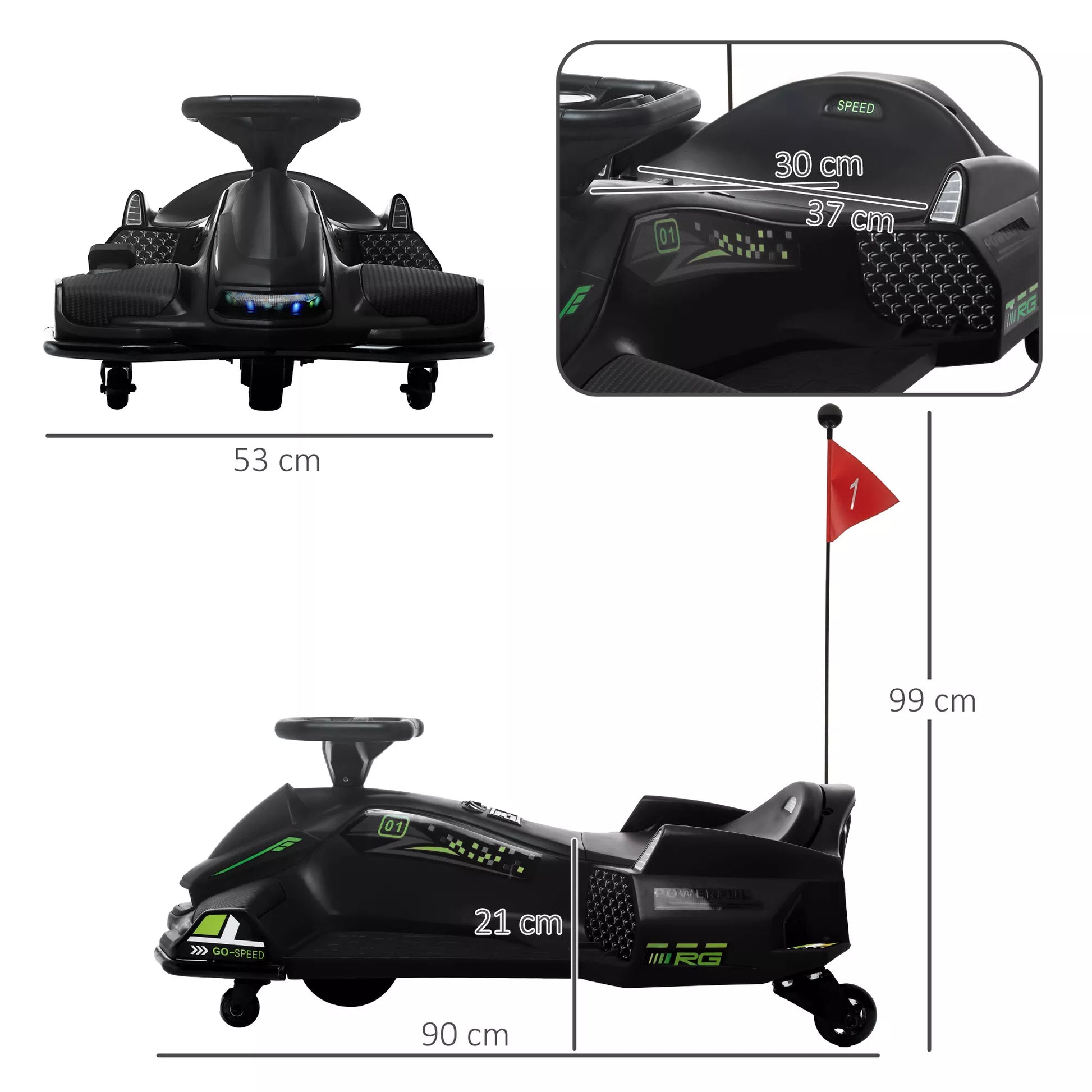 HOMCOM Elektrinis kartingas vaikams, guminės padangos, 3-8 km/val, su šviesomis ir muzikos funkcija, juodas HOMCOM