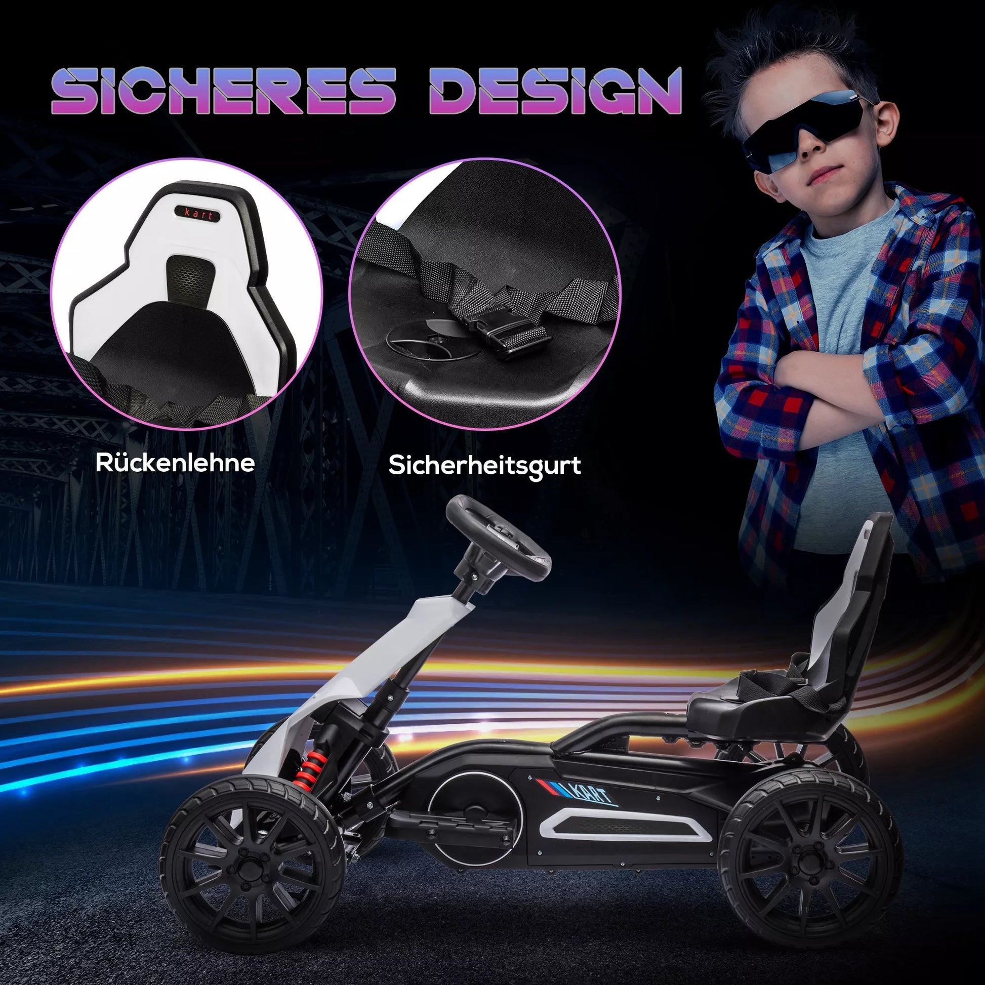 Elektrinis kartingas vaikams, iki 5 km/h, su saugos diržu, sėdyne su atlošu, plastikas, metalas, balta