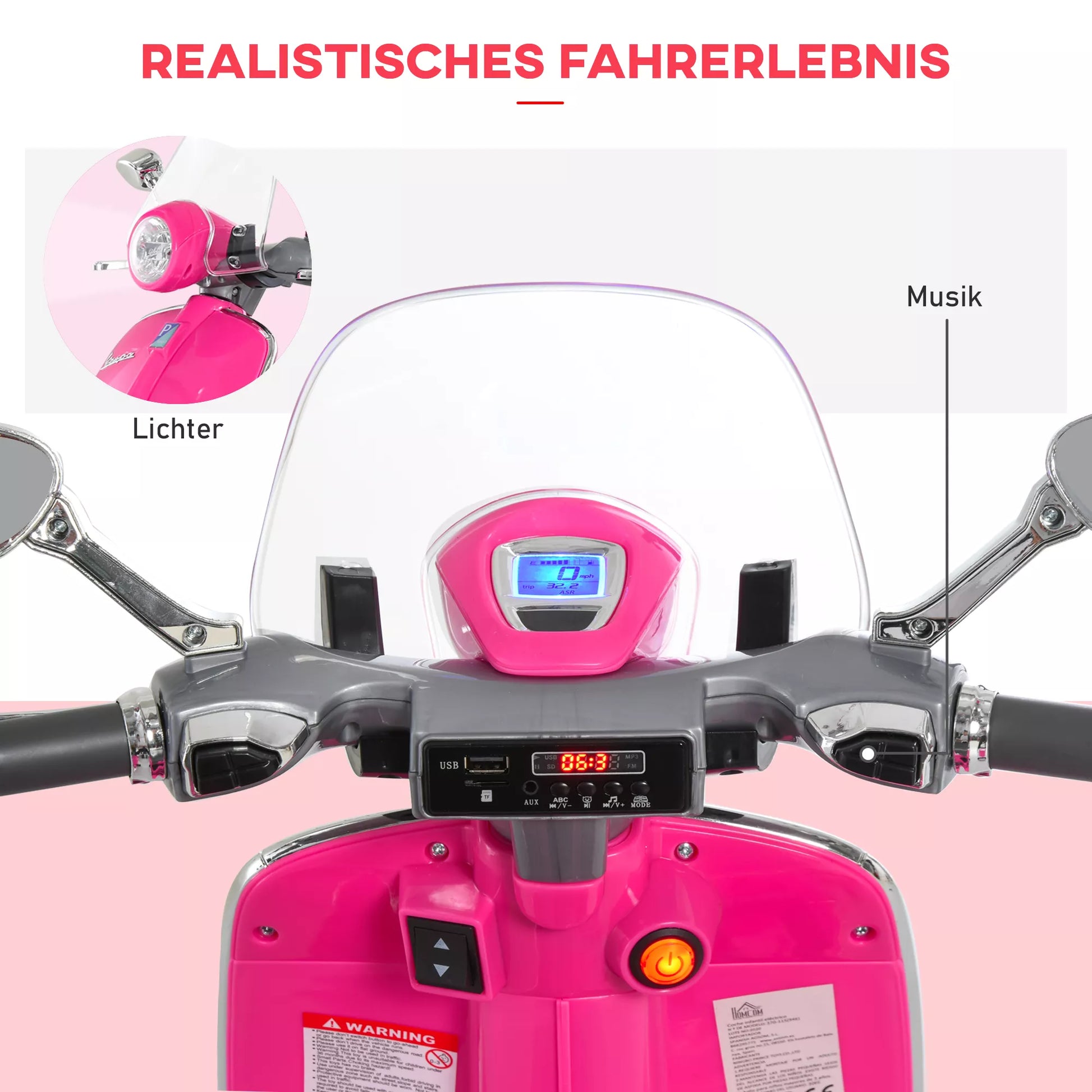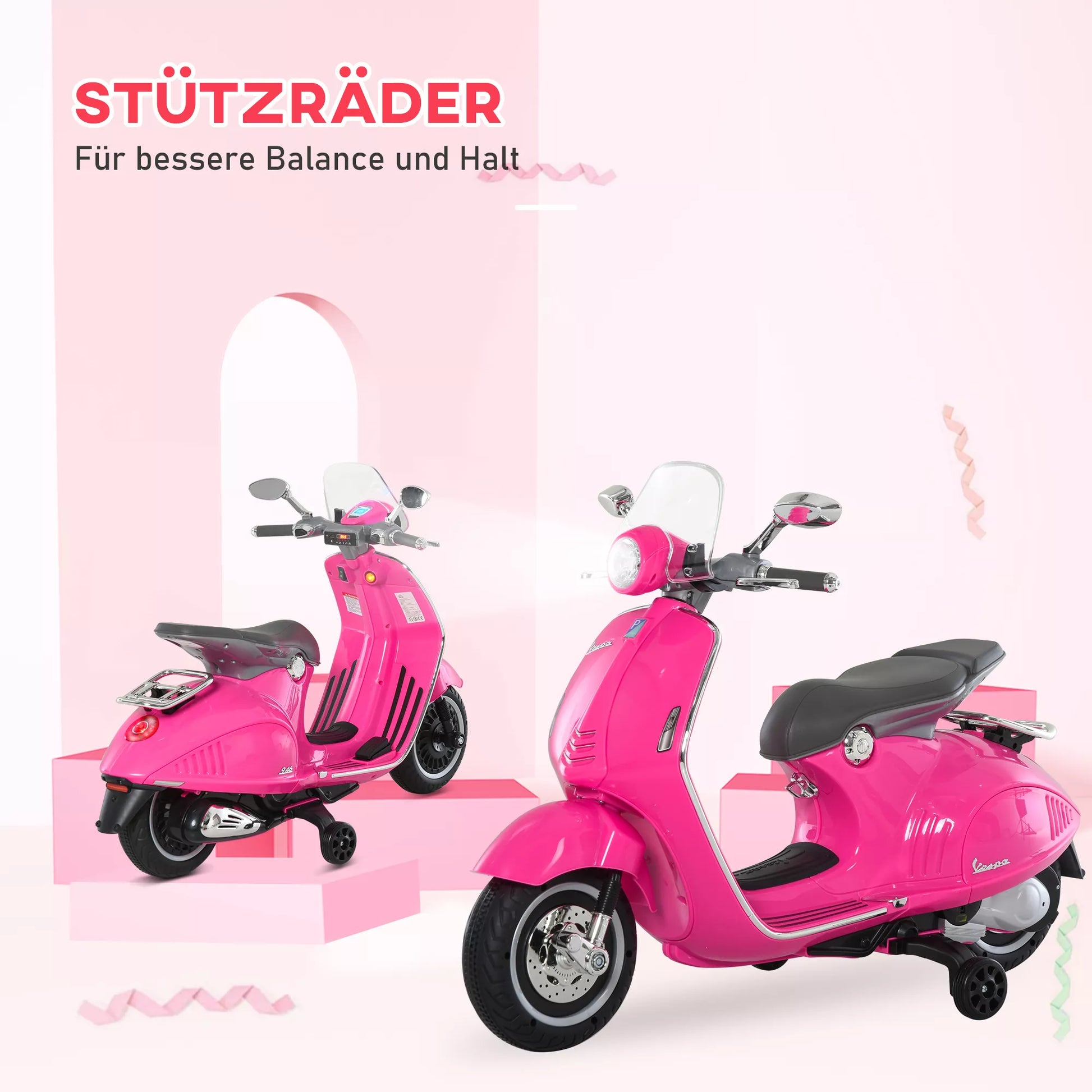 Su šiuo licencijuotu VESPA vaikišku motociklu nuotykiai gali prasidėti! Dėl novatoriškos formos ir gražios spalvos šis elektrinis motociklas tinka vaikams nuo 3 iki 6 metų. Patogi sėdynė, tikras amortizatorius ir įmontuotas muzikos mygtukas užtikrina ramią ir patogią kelionę. Jūsų vaikui patiks smagiai sukti ratus tiek viduje, tiek lauke.