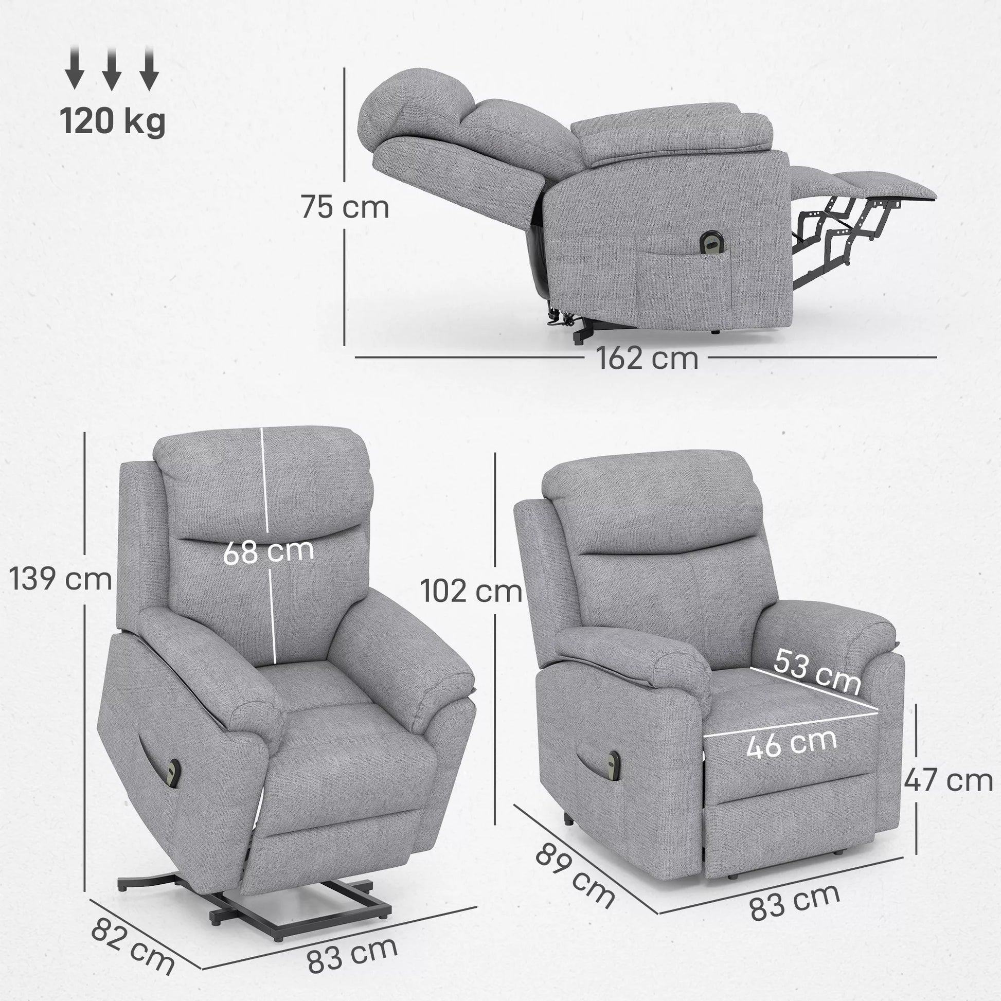 Palengvinkite savo kasdienybę su šiuo elektriniu foteliu su pagalbos atsistojant funkcija. Jei Jūs ar Jūsų artimas žmogus susiduriate su judėjimo sunkumais, šis išmanusis relaksacinis fotelis yra tinkamiausias pasirinkimas. Vienu mygtuko paspaudimu galite lengvai ir švelniai pereiti iš sėdimos ar gulimos padėties į stovinčią. Minkštas šio relaksacinio fotelio paminkštinimas ir lininės išvaizdos audinio apmušalas užtikrina išskirtinį komfortą ir visišką atsipalaidavimą.