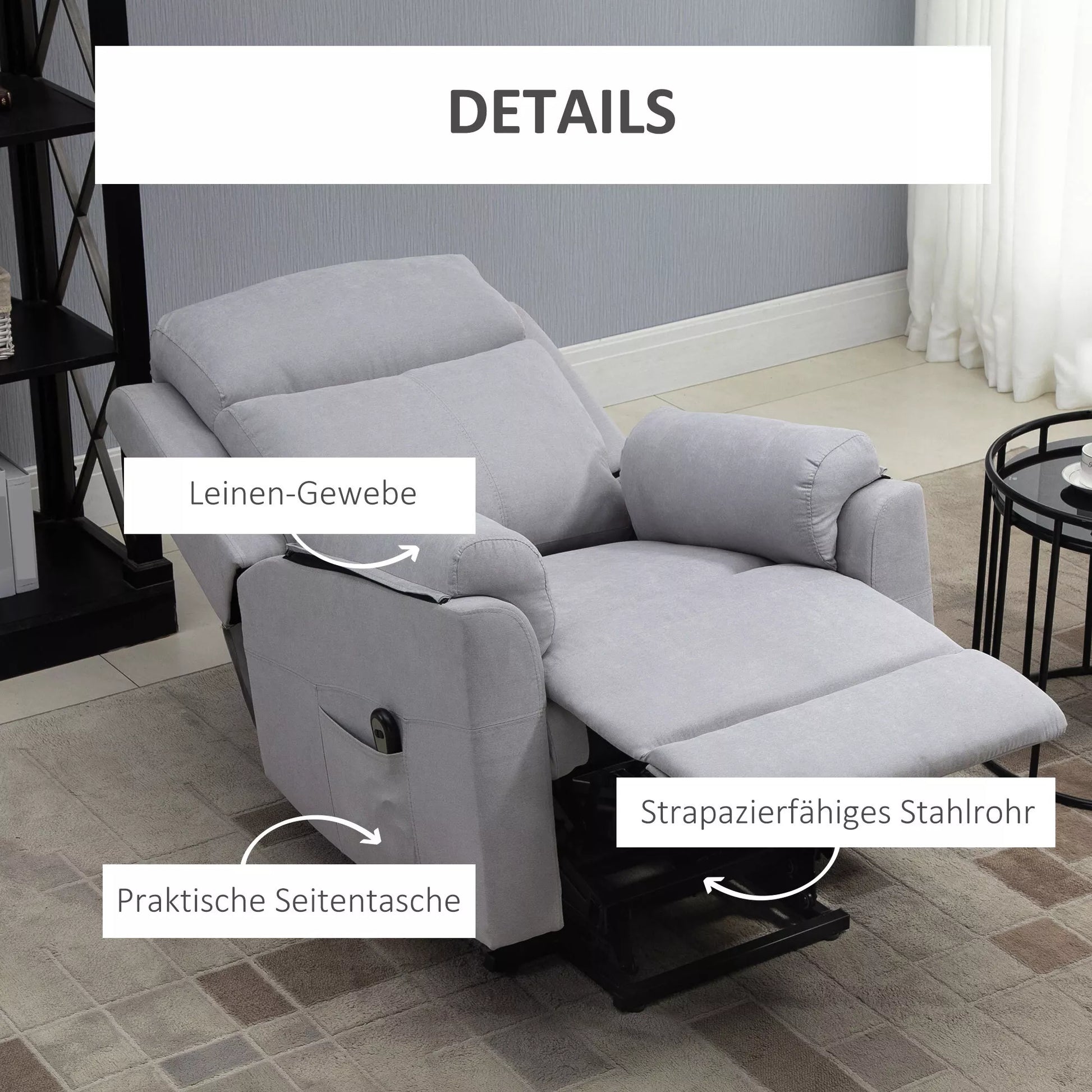 - ✔ 1 x elektrinė poilsio kėdė su pagalba atsistojant