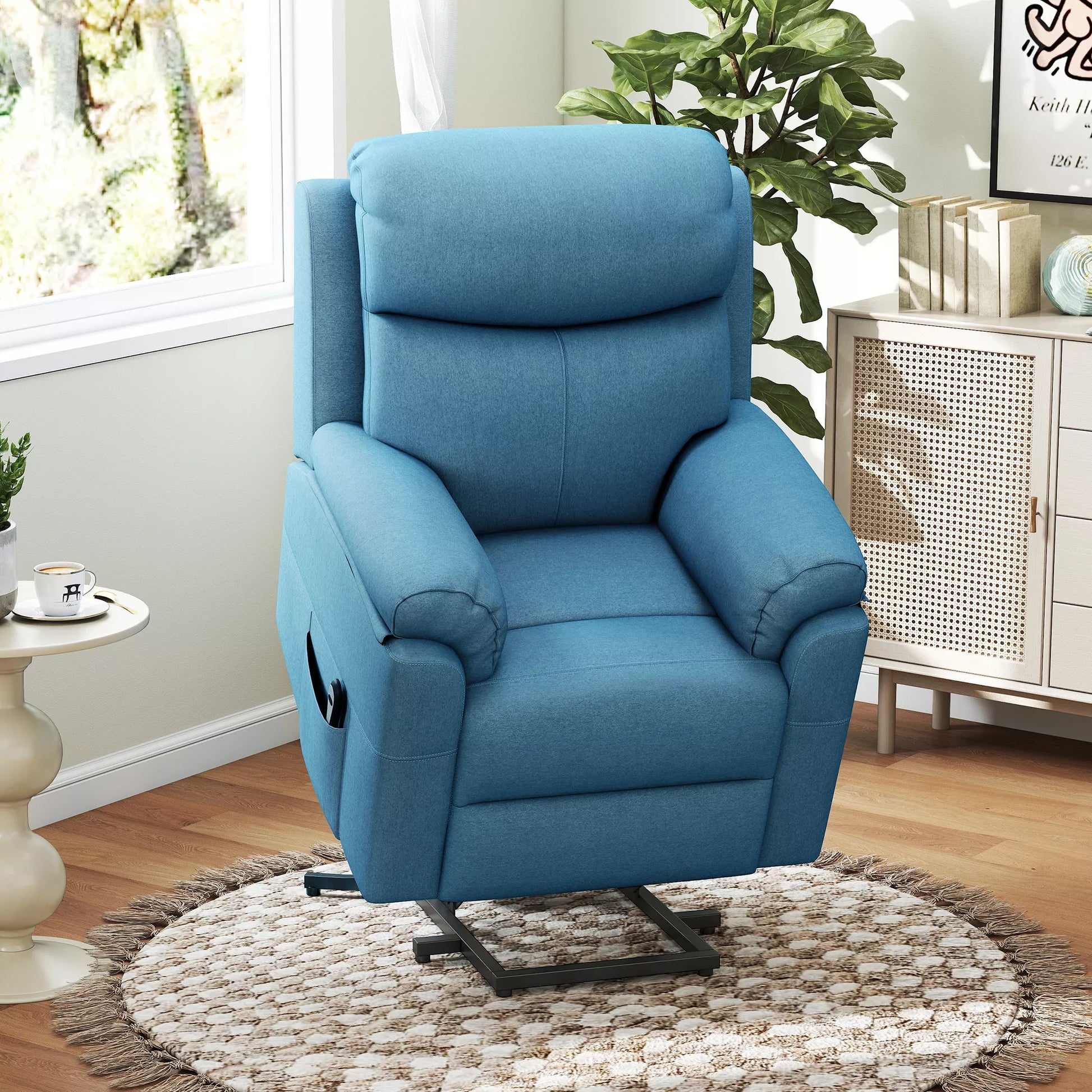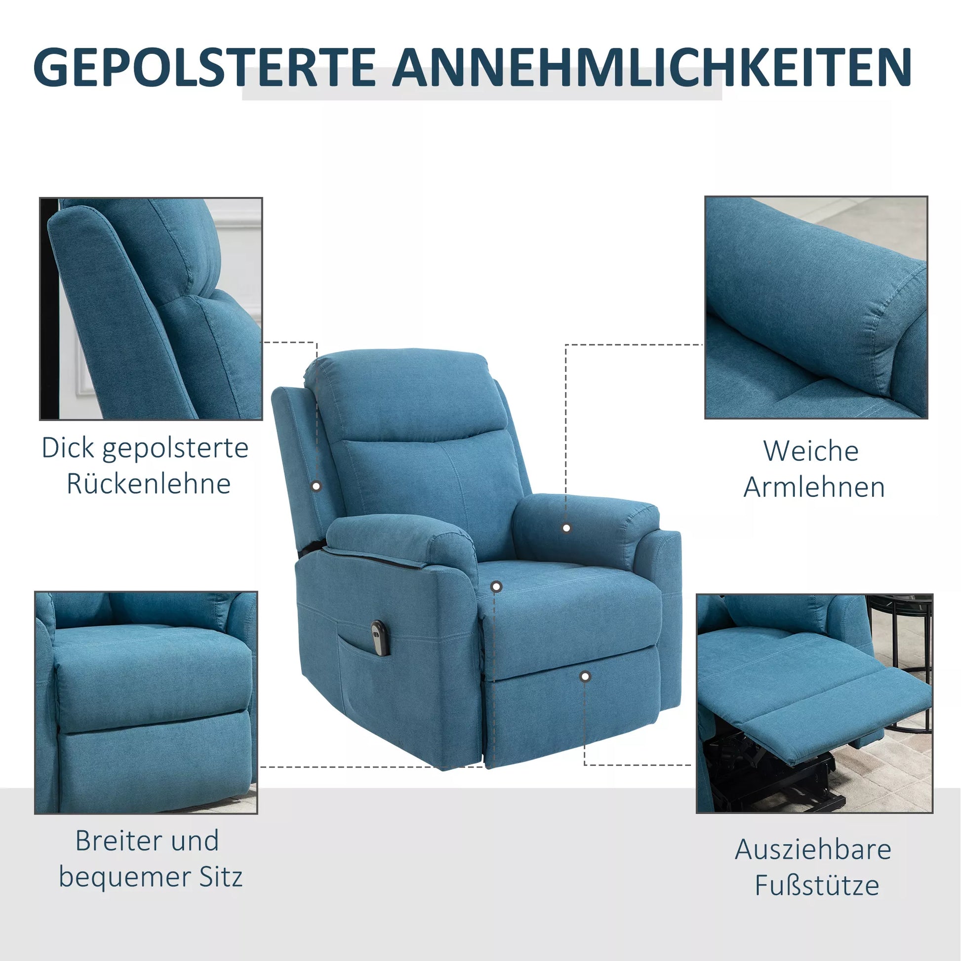 Elektrinis TV fotelis su pakėlimo funkcija, relaksacinis krėslas su gulėjimo funkcija, TV fotelis su distanciniu pulteliu, šonine kišenė, kišeninių spyruoklių sistema, lininės išvaizdos, mėlynos spalvos