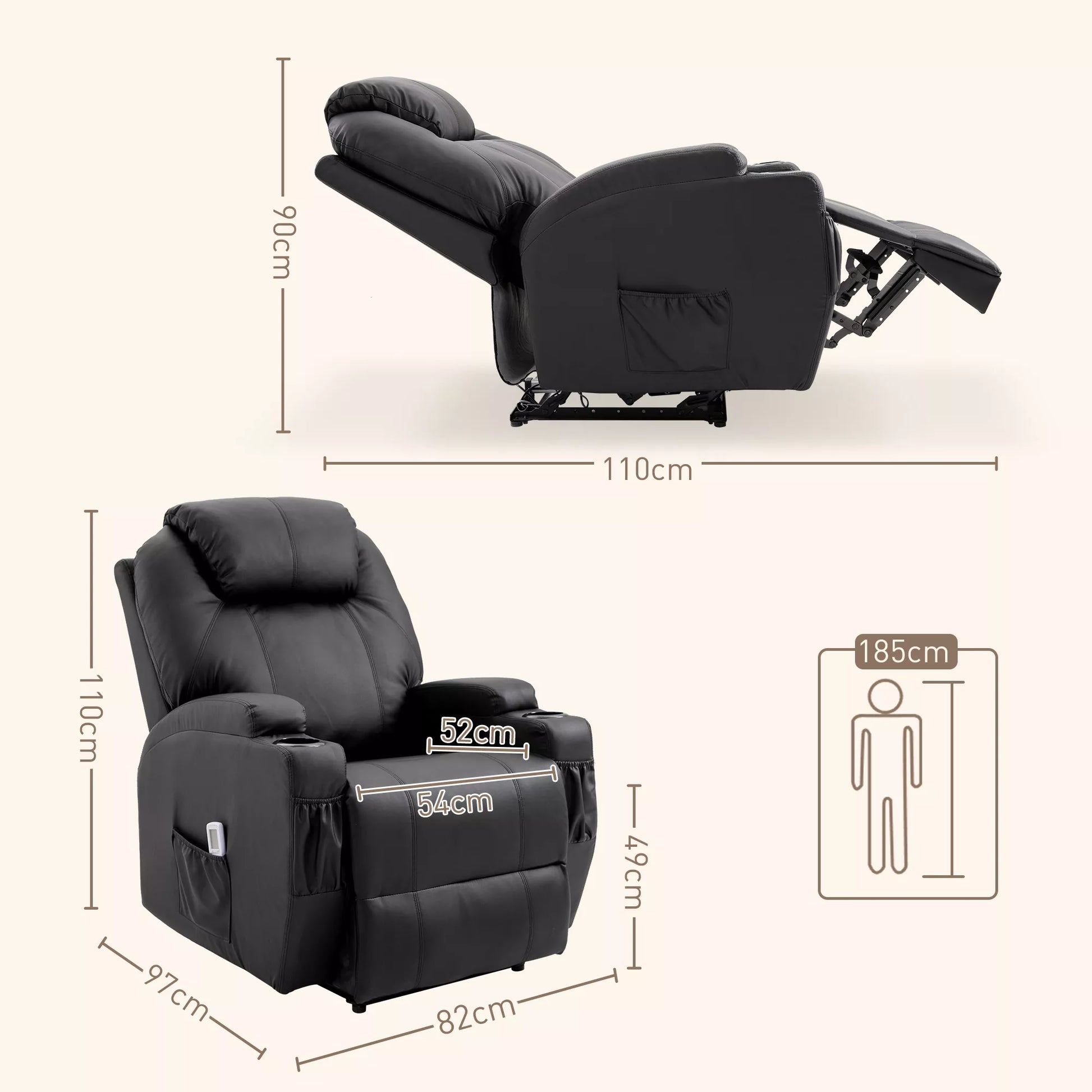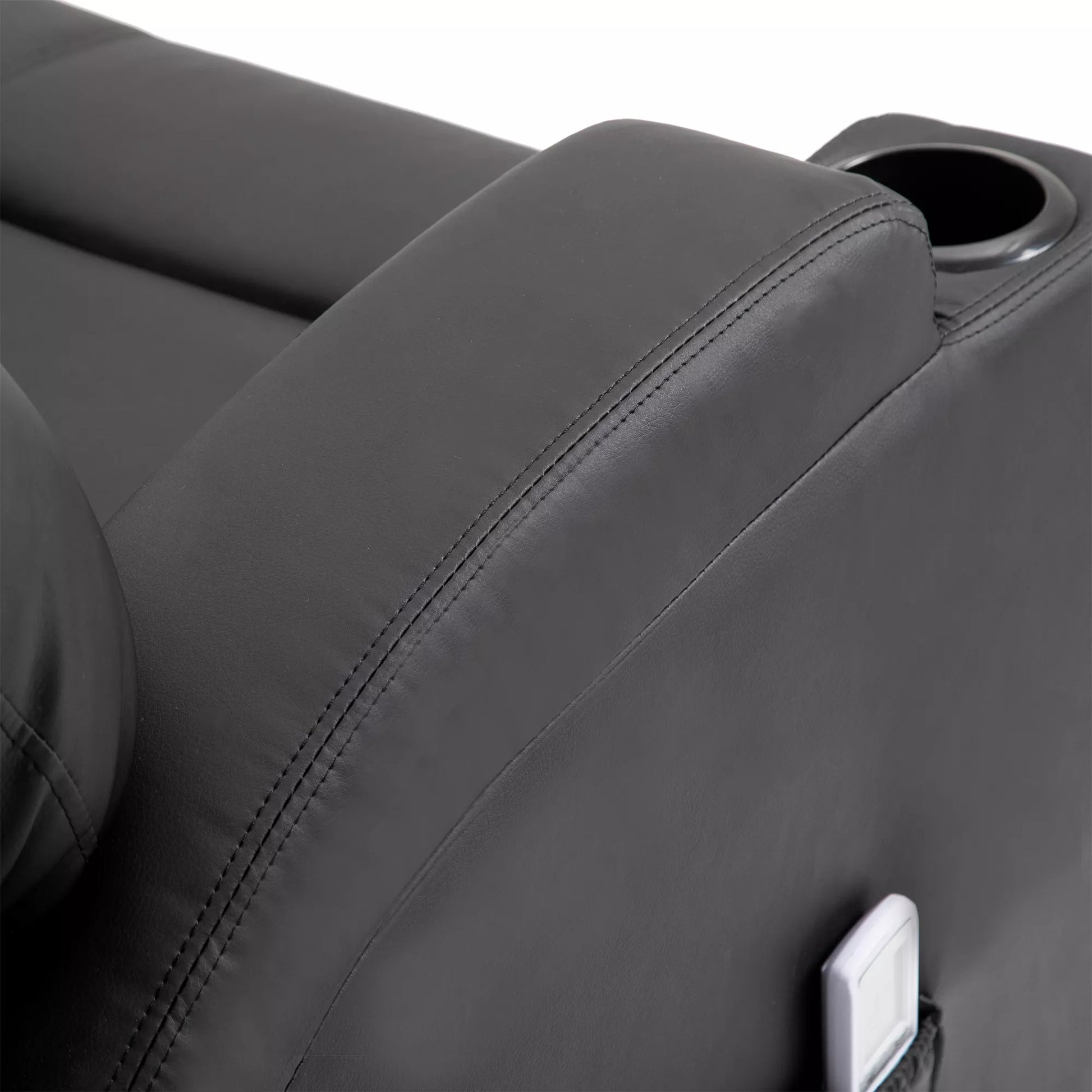 Elektrinis TV fotelis su masažo ir gulėjimo funkcija, pagalba atsikeliant, reguliuojama atlošo atrama, šonine kišene, puodelių laikikliu, atlaiko iki 160kg, skirtas svetainei, juodas
