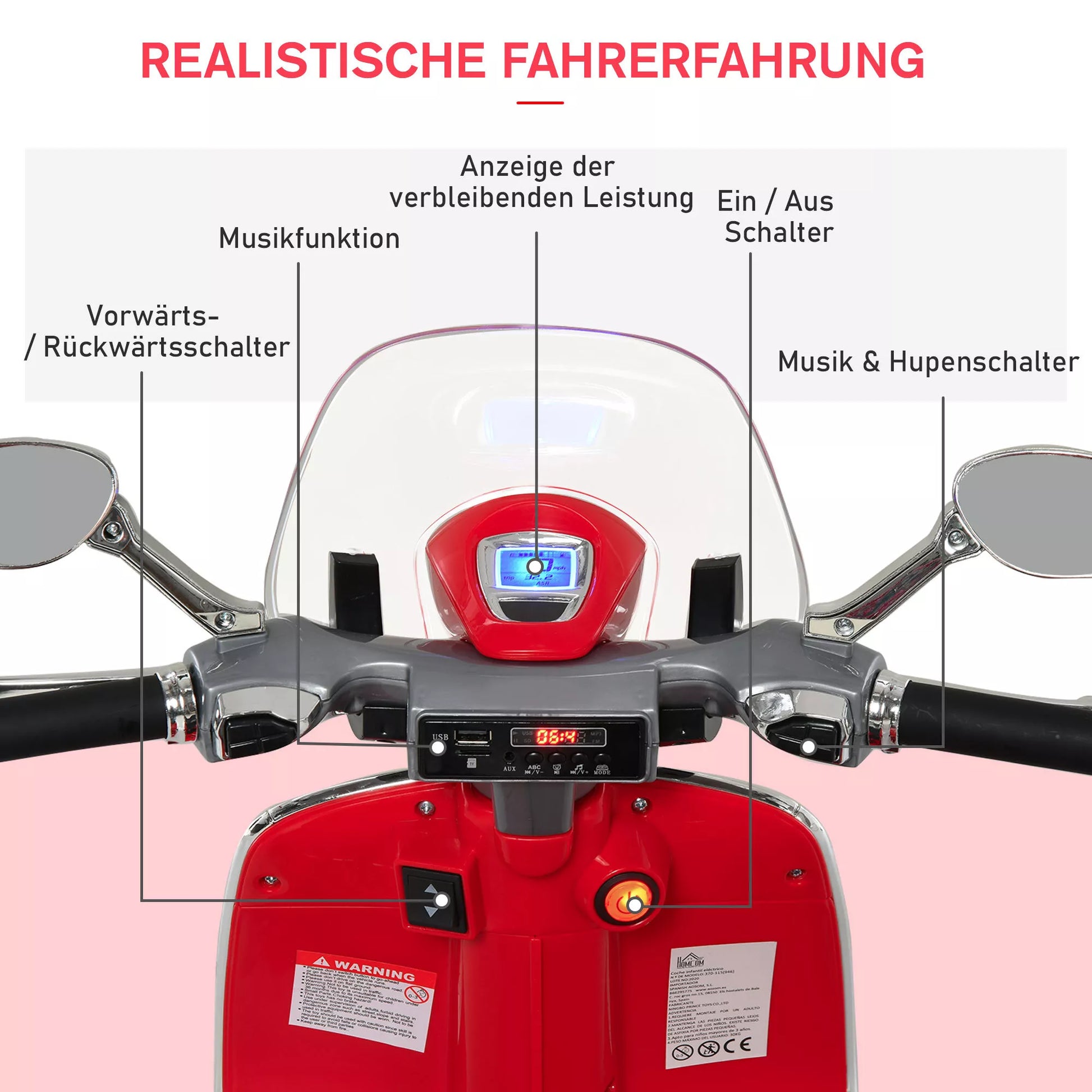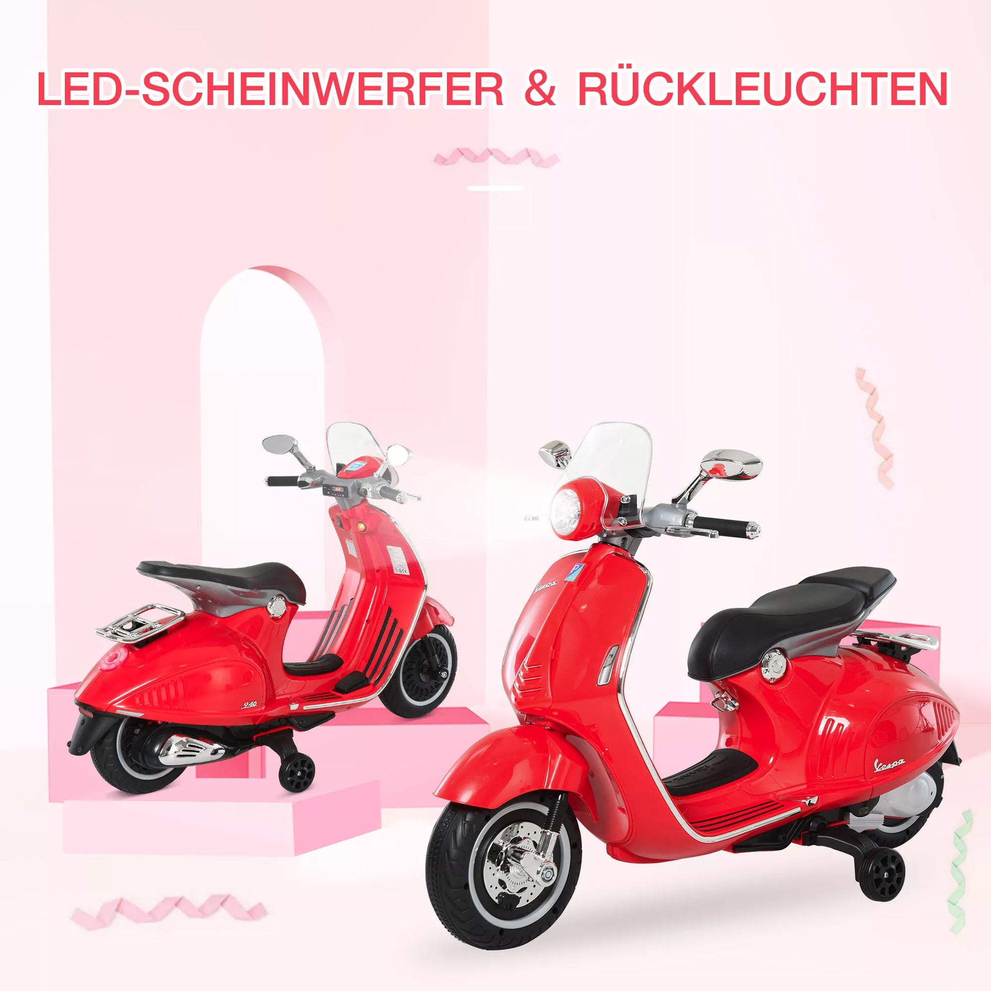 Su šiuo licencijuotu VESPA vaikišku motociklu nuotykiai gali prasidėti! Dėl novatoriškos formos ir gražios spalvos šis elektrinis motociklas tinka vaikams nuo 3 iki 6 metų amžiaus. Patogi sėdynė, tikras amortizatorius ir įmontuotas muzikos mygtukas vaikiškame motocikle užtikrina ramią ir patogią kelionę. Jūsų vaikui patiks daryti linksmas keliones viduje ir lauke iki soties.