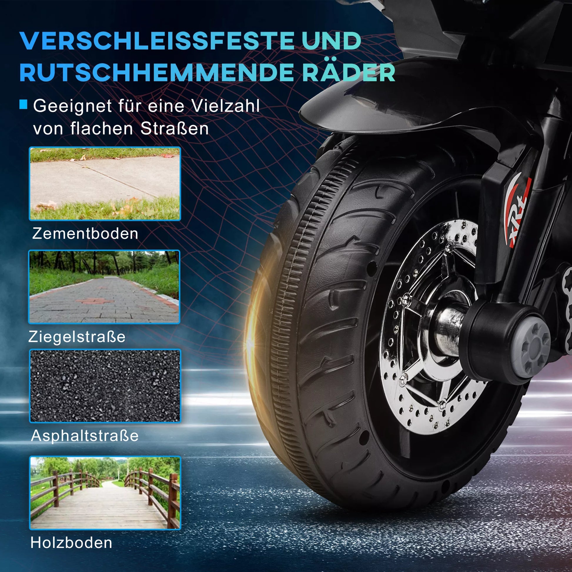 - ✔ 7,5 cm pločio elektrinio vaikiško motociklo padangos užtikrina stabilų ir lygų važiavimą