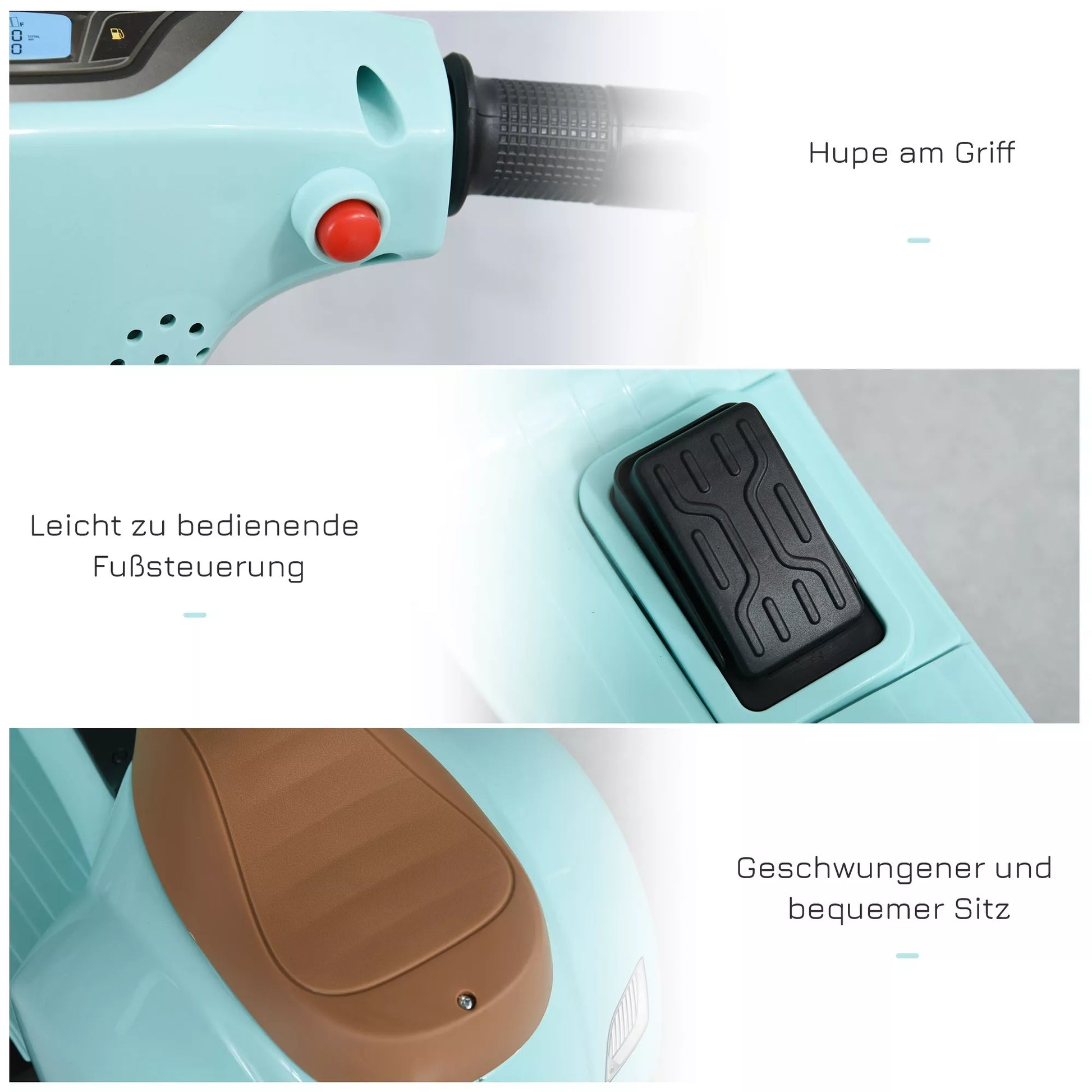 Elektrinis vaikiškas motociklas Vespa su LED šviesa, garsu, vaikams nuo 18-36 mėn., žalias