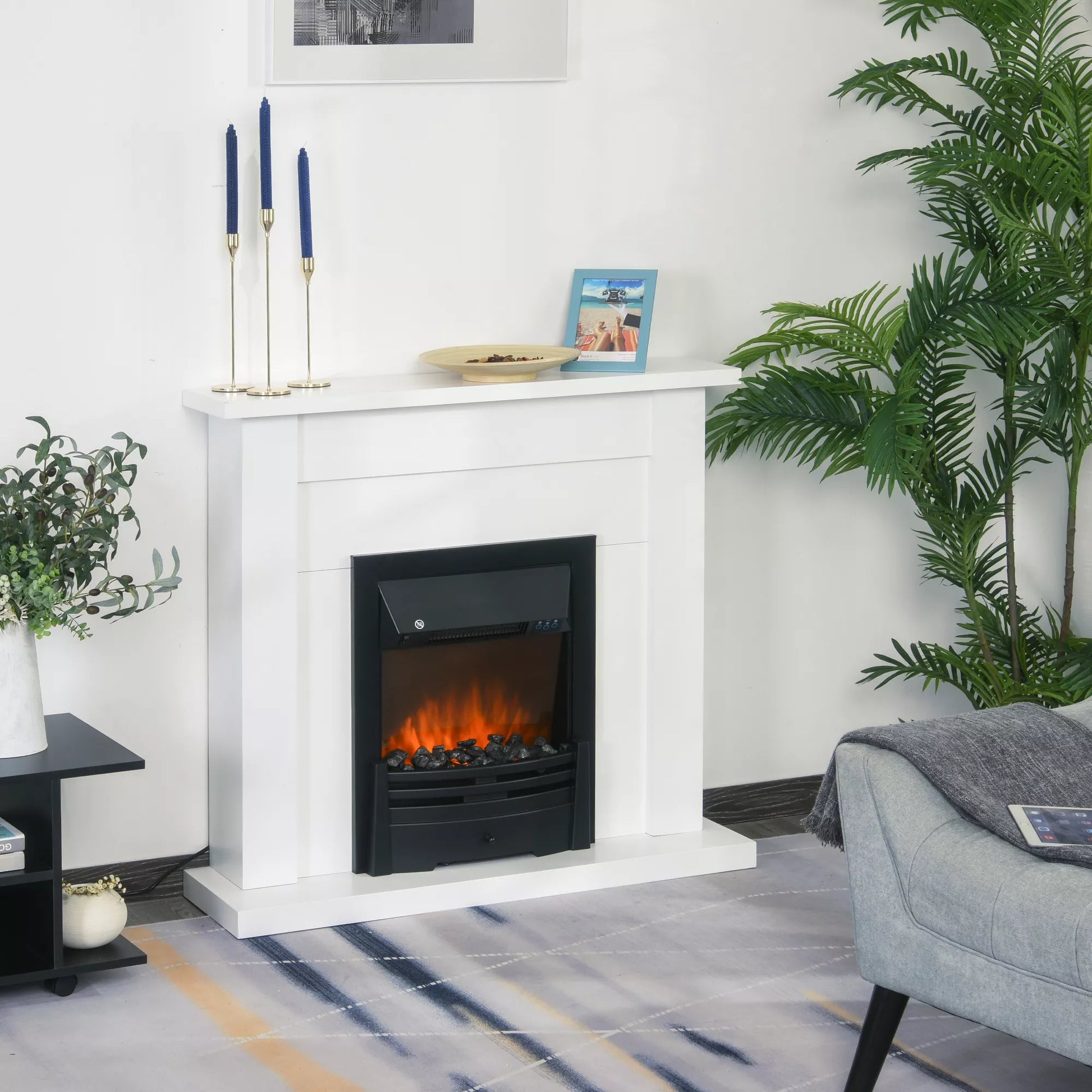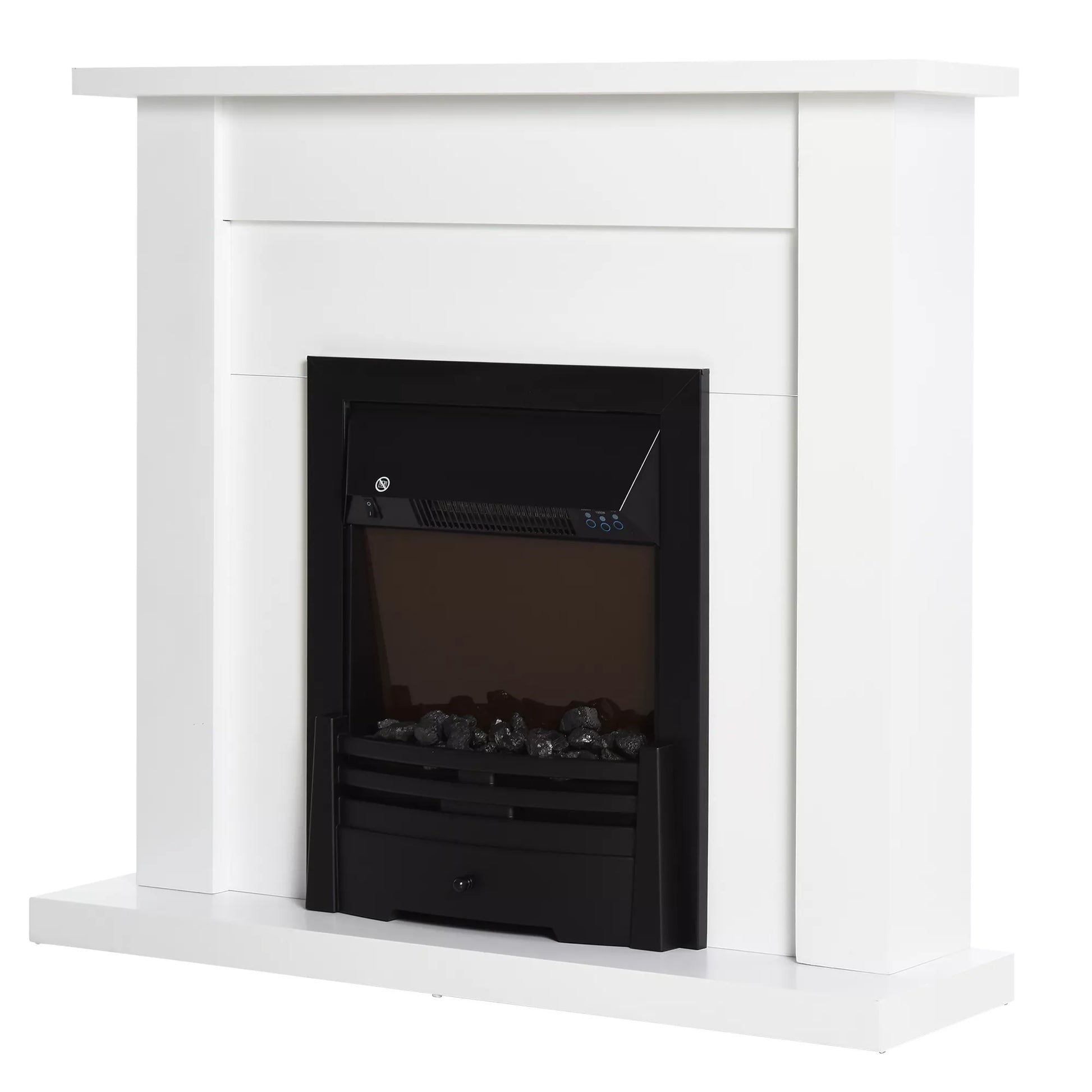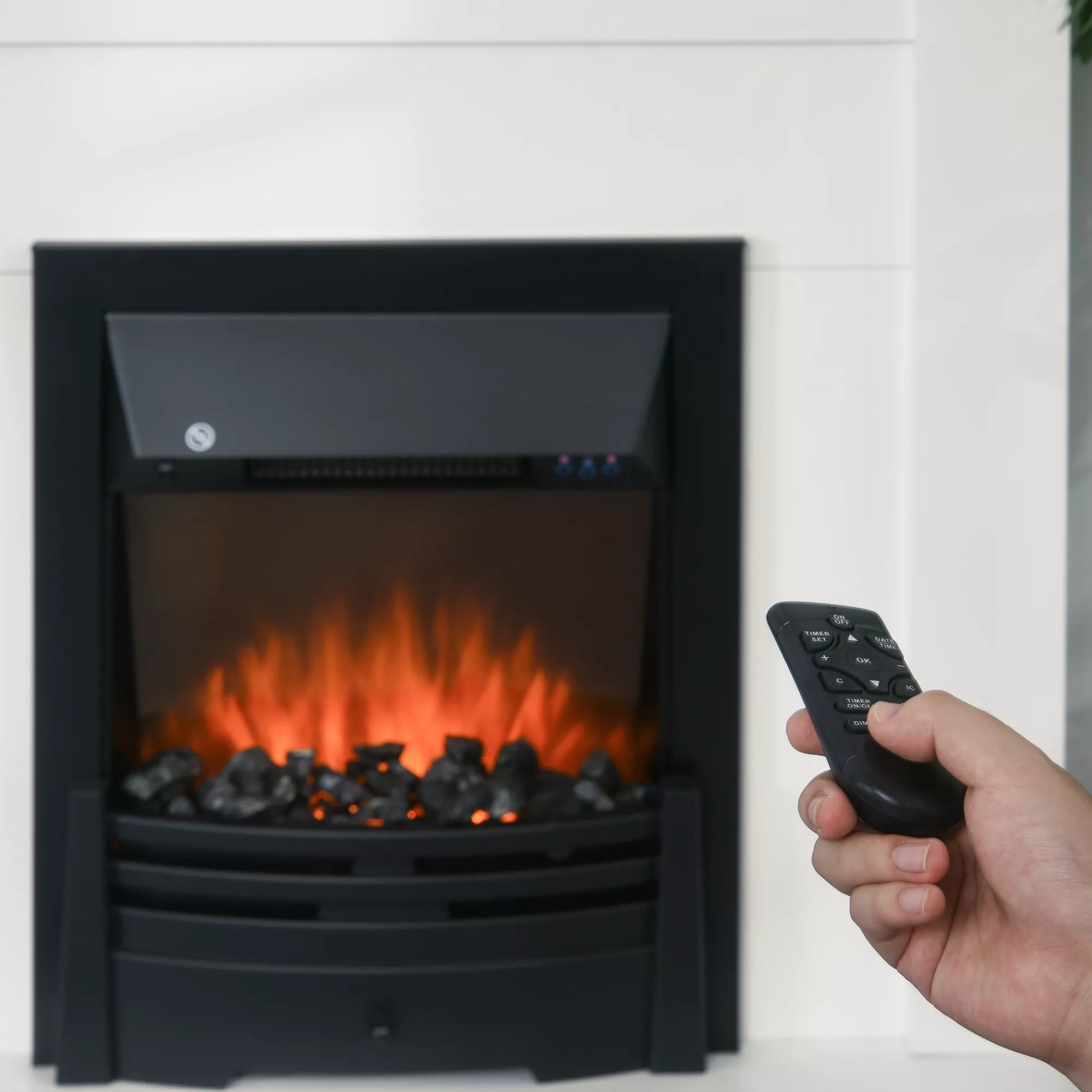 Elektrinis židinys, 2 galios lygiai, nuotolinio valdymo pultelis, laikmatis, realistiškas liepsnos efektas, Juoda+Balta