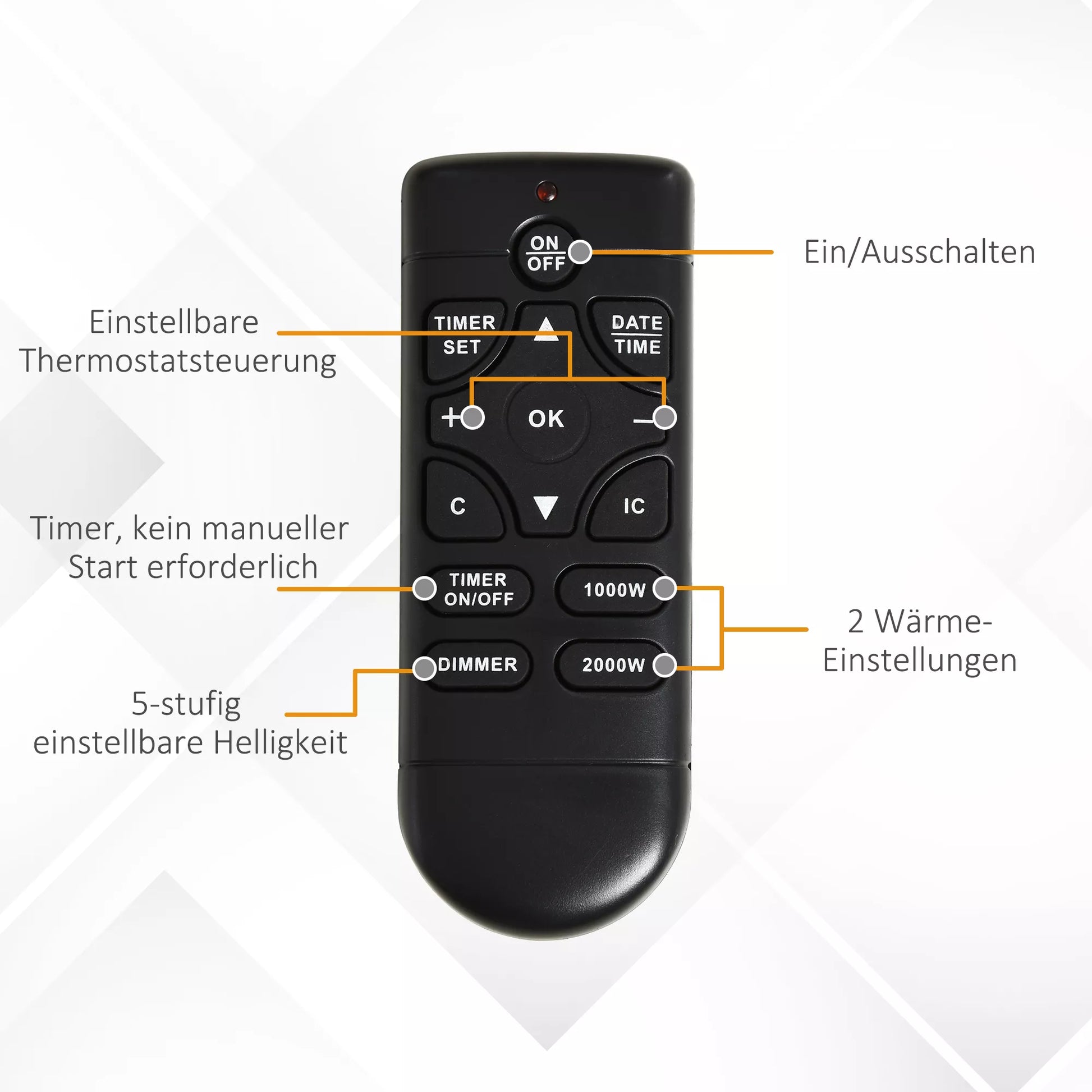 - ✔ Lengva valdyti nuotolinio valdymo pulteliu arba jungikliais ant židinio
