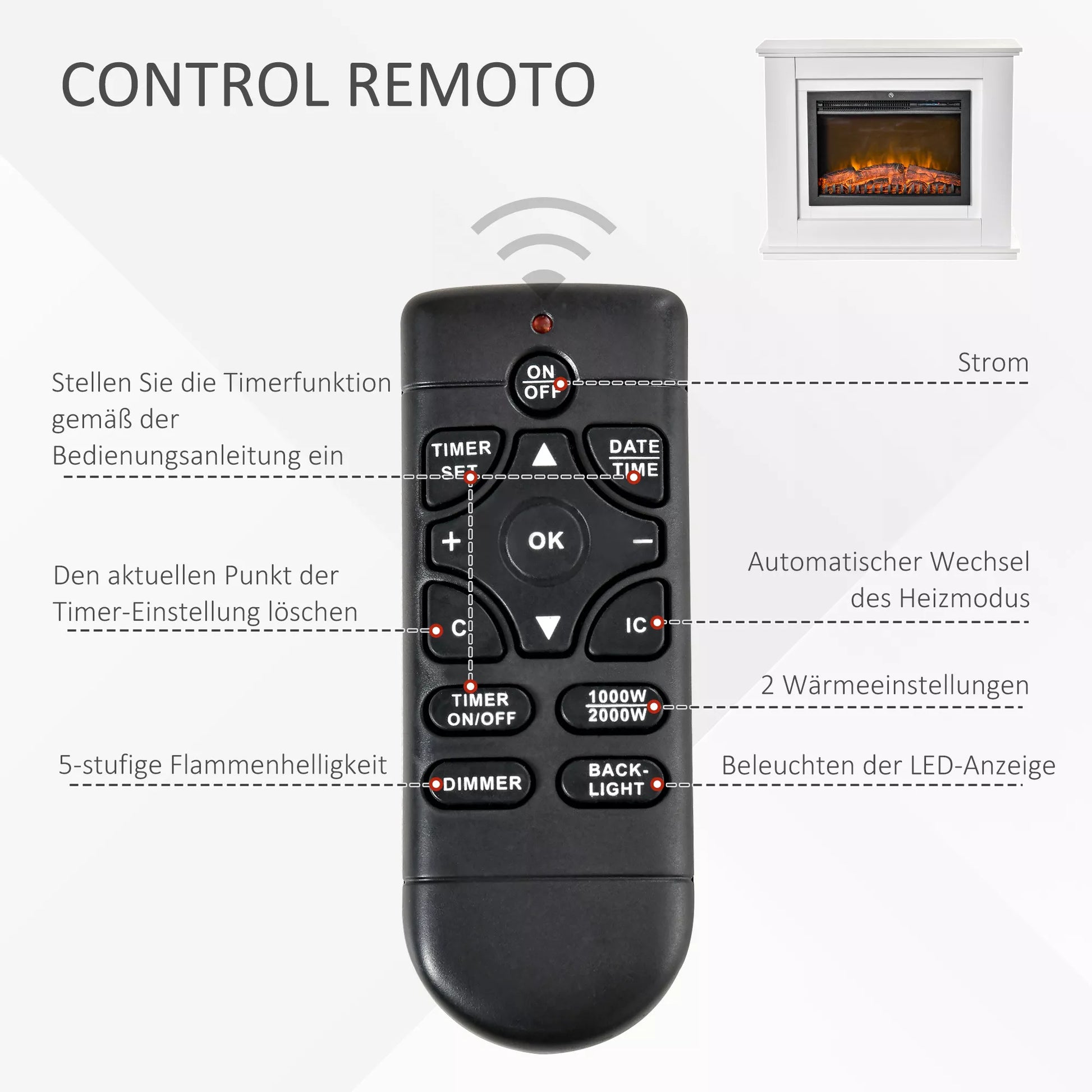 Elektrinis židinys, 3D LED liepsnos, nuotolinio valdymo pultelis, laikmatis, MDF, baltas