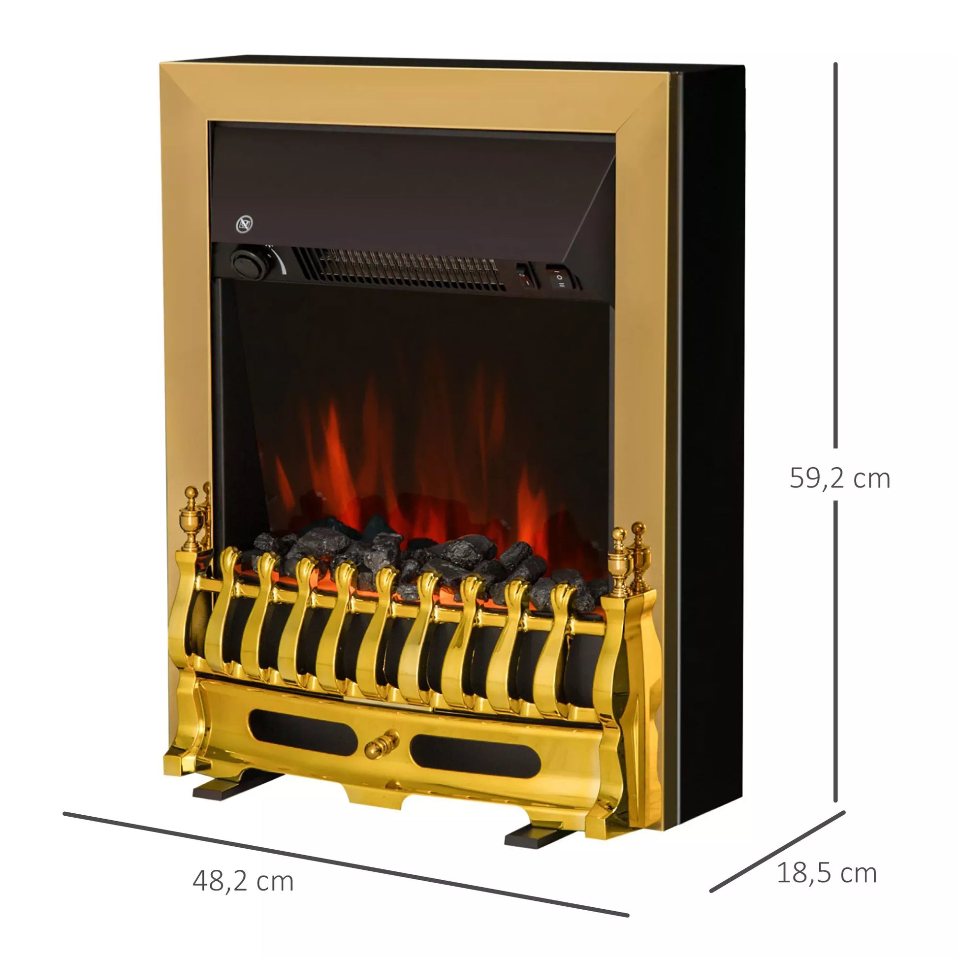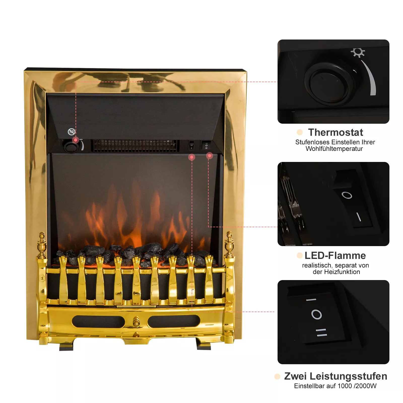 Elektrinis židinys su šildymu, elektrinis židinys su LED liepsnos efektu, 1000/2000W dekoratyvinis židinys, elektrinė židinio ugnis, auksinis