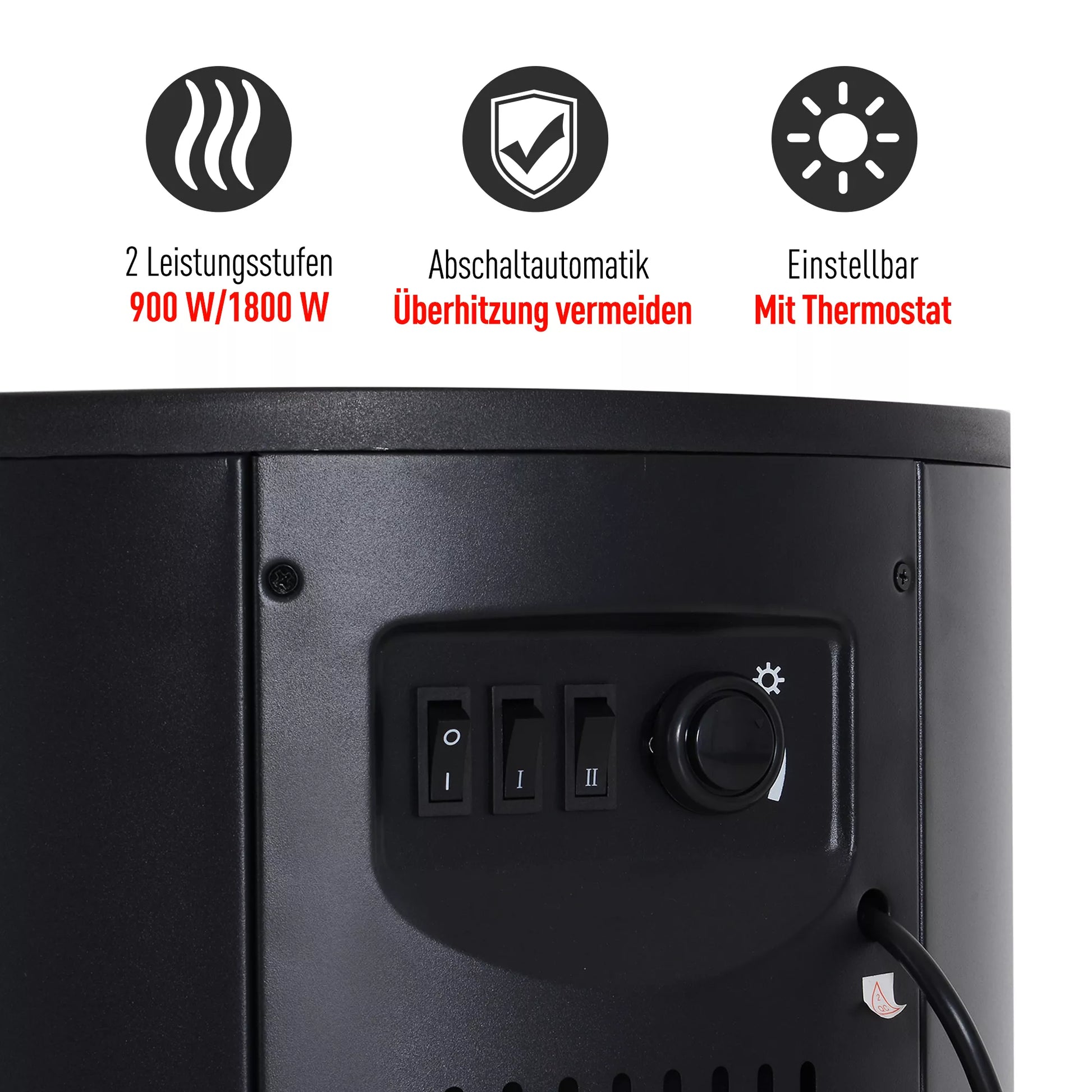 Šiluma vienu mygtuko paspaudimu: su mūsų cilindro formos dizaino židiniu Jūsų svetainę apgaubsite jaukia žiemos atmosfera, kaip ir prie tikro židinio, tik be suodžių ir nemalonaus dūmų kvapo. Integruotas šildytuvas veikia pasirinktinai 900W arba 2000W. Šaltuoju metų laiku mūsų mažasis šildymo stebuklas greitai sušildys Jūsų namus iki malonios temperatūros. Jo integruotas terminis išjungimas ir praktiška apsauga nuo apvirtimo užtikrina ypatingą saugumą.