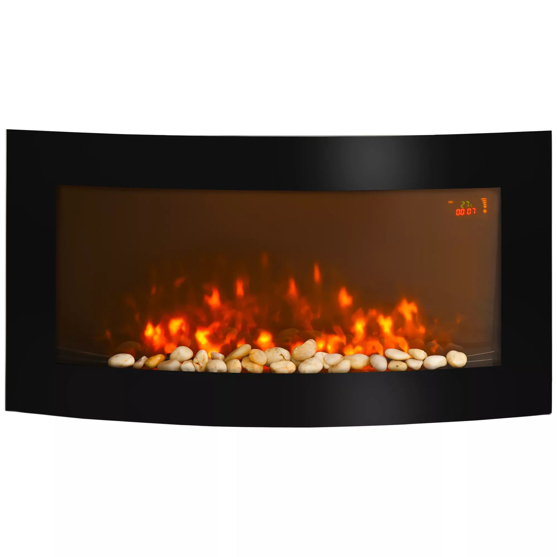 Elektrinis židinys su šildymu, sieninis židinys su LED liepsnos efektu, 7 liepsnos spalvos, 1000/2000 W, elektrinis židinys su laikmačiu, reguliuojamas termostatas, dekoratyvinis židinys su nuotolinio valdymo pultu, juodas, 89,2 cm