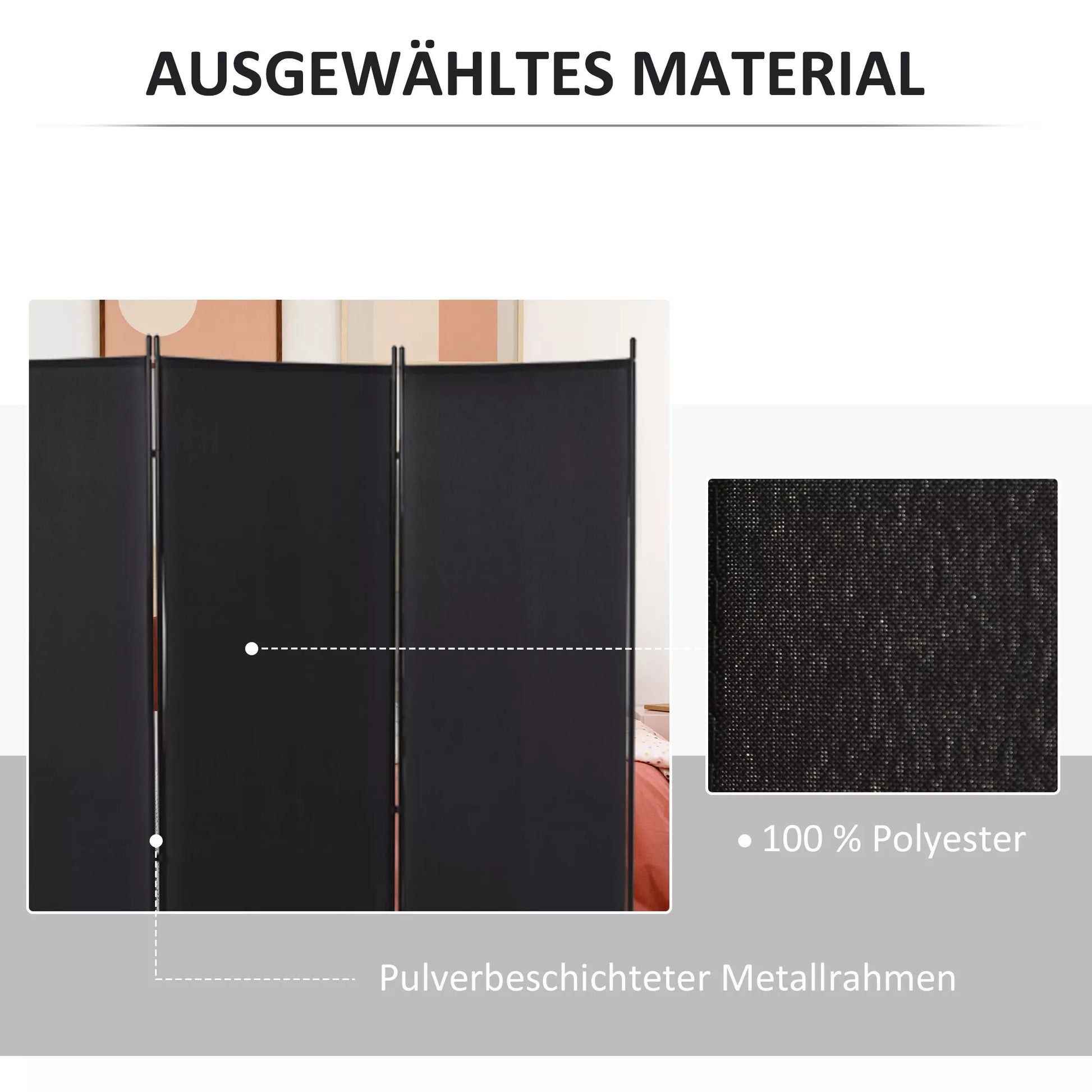 Kambario daliklis, 3 dalių pertvara, su metaliniu rėmu, juodas