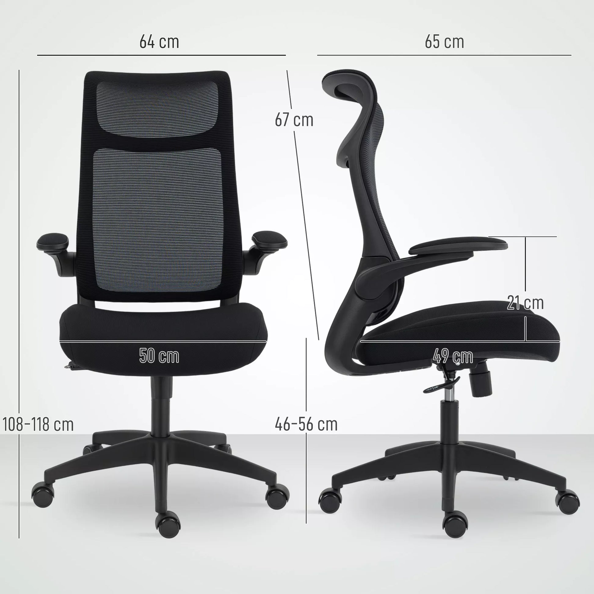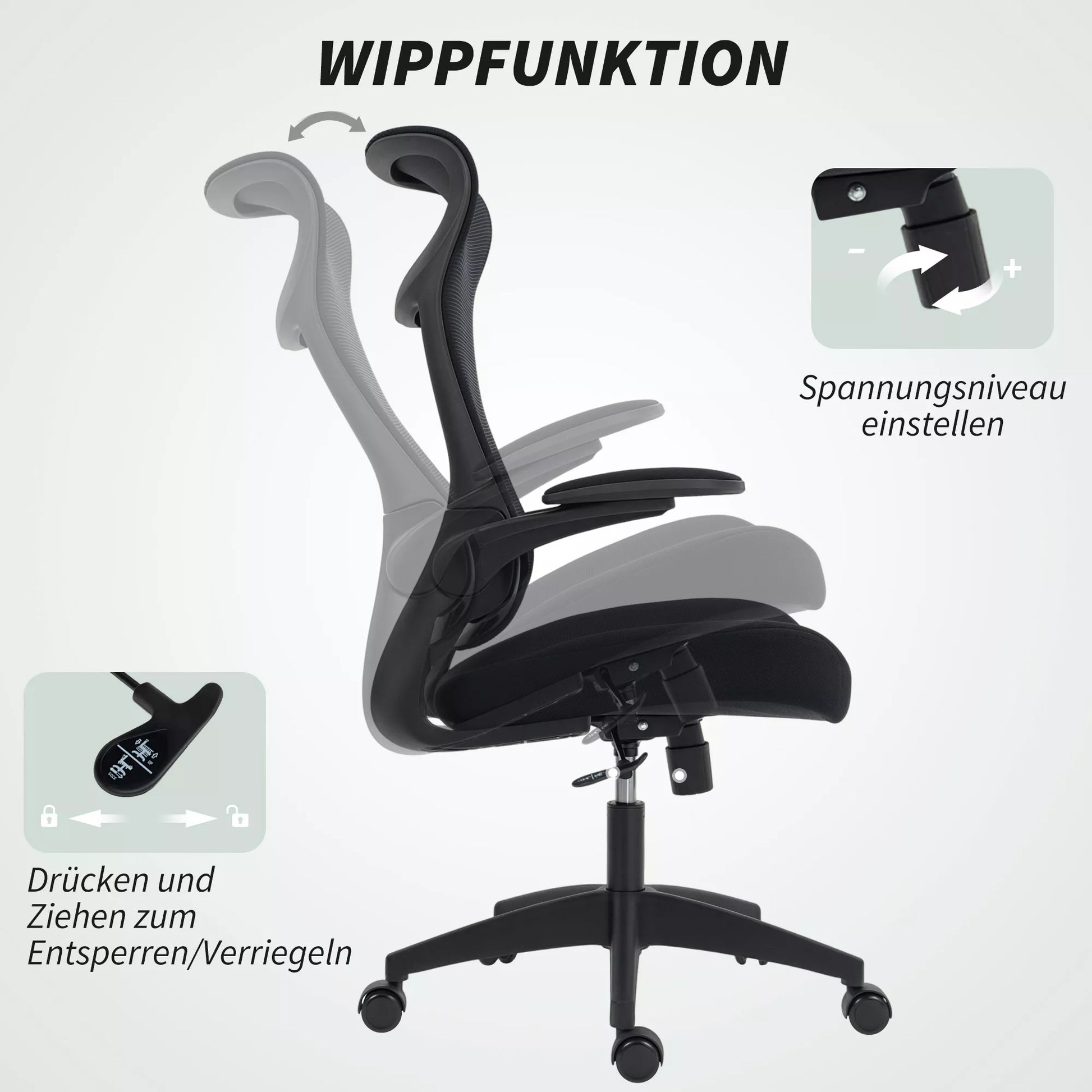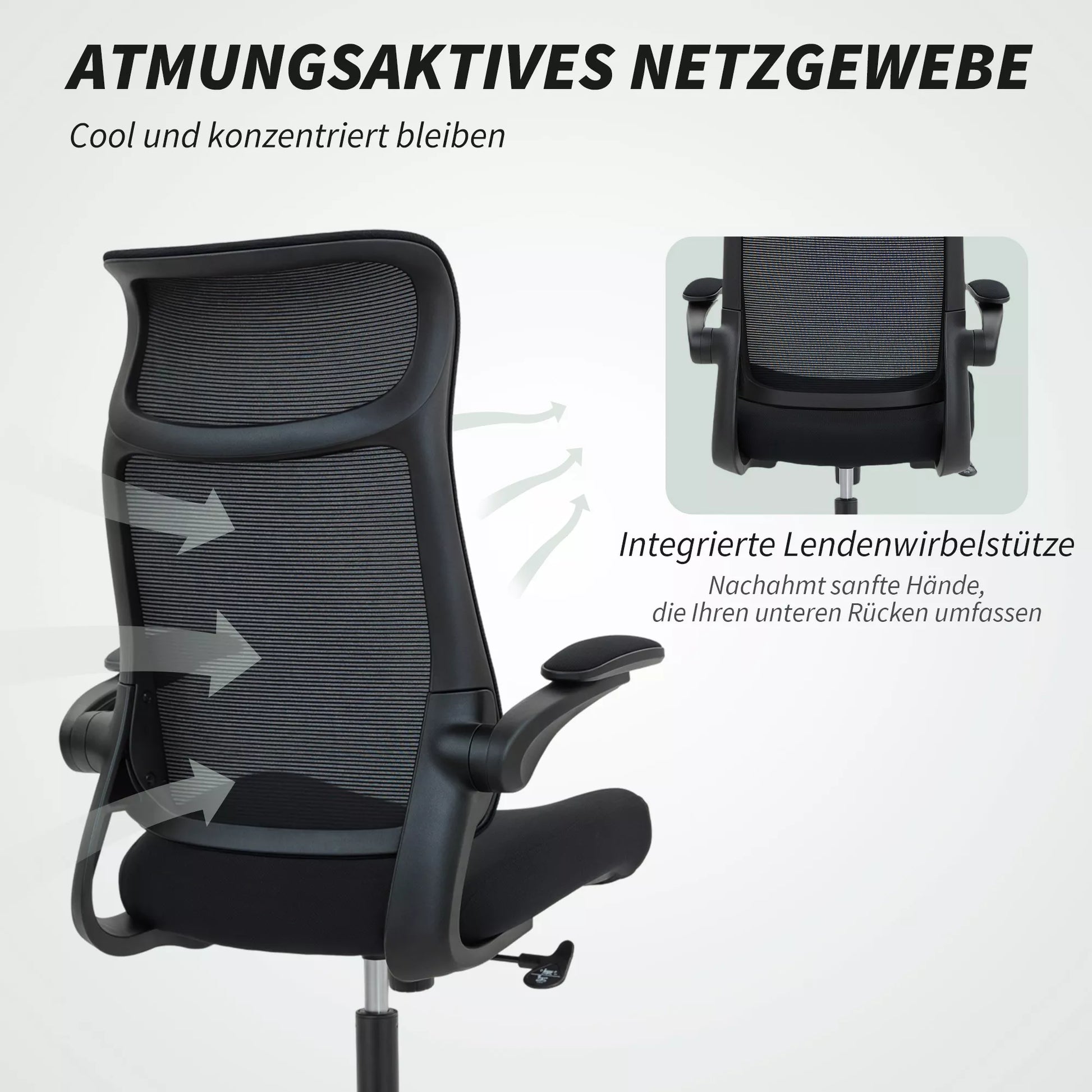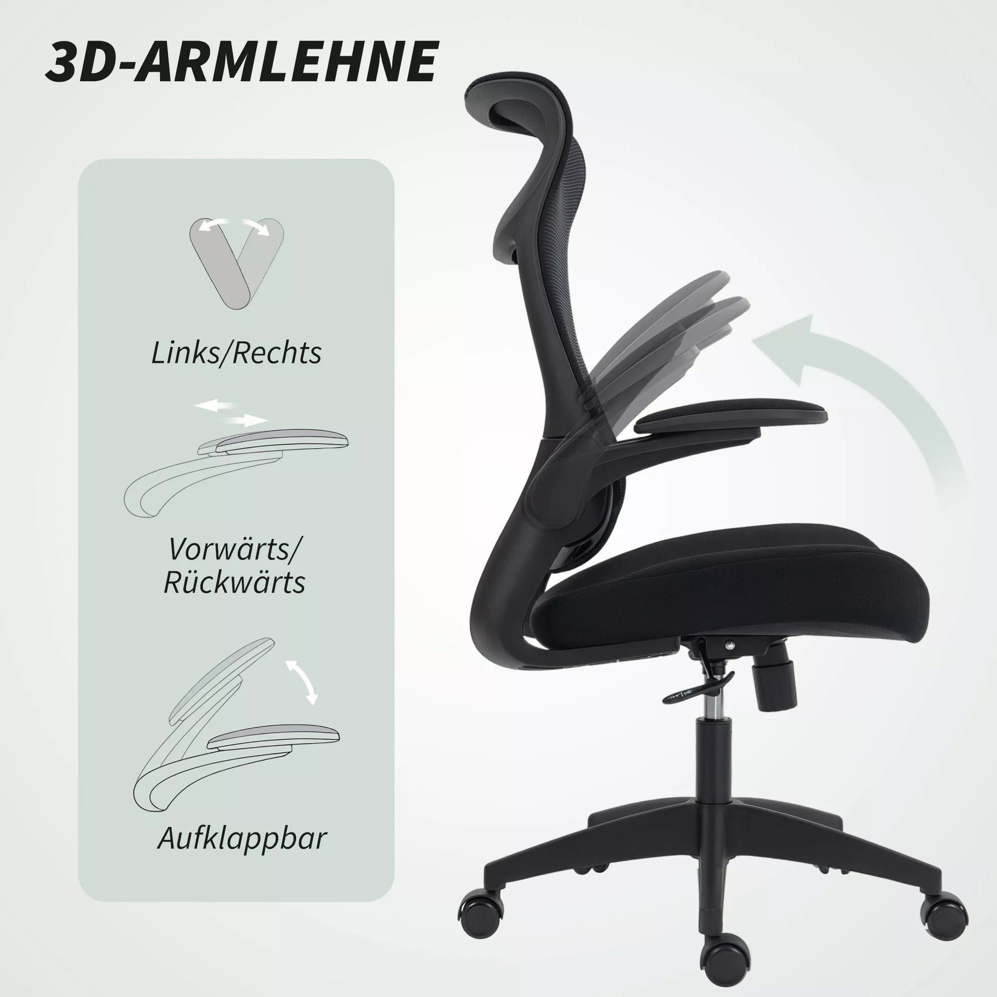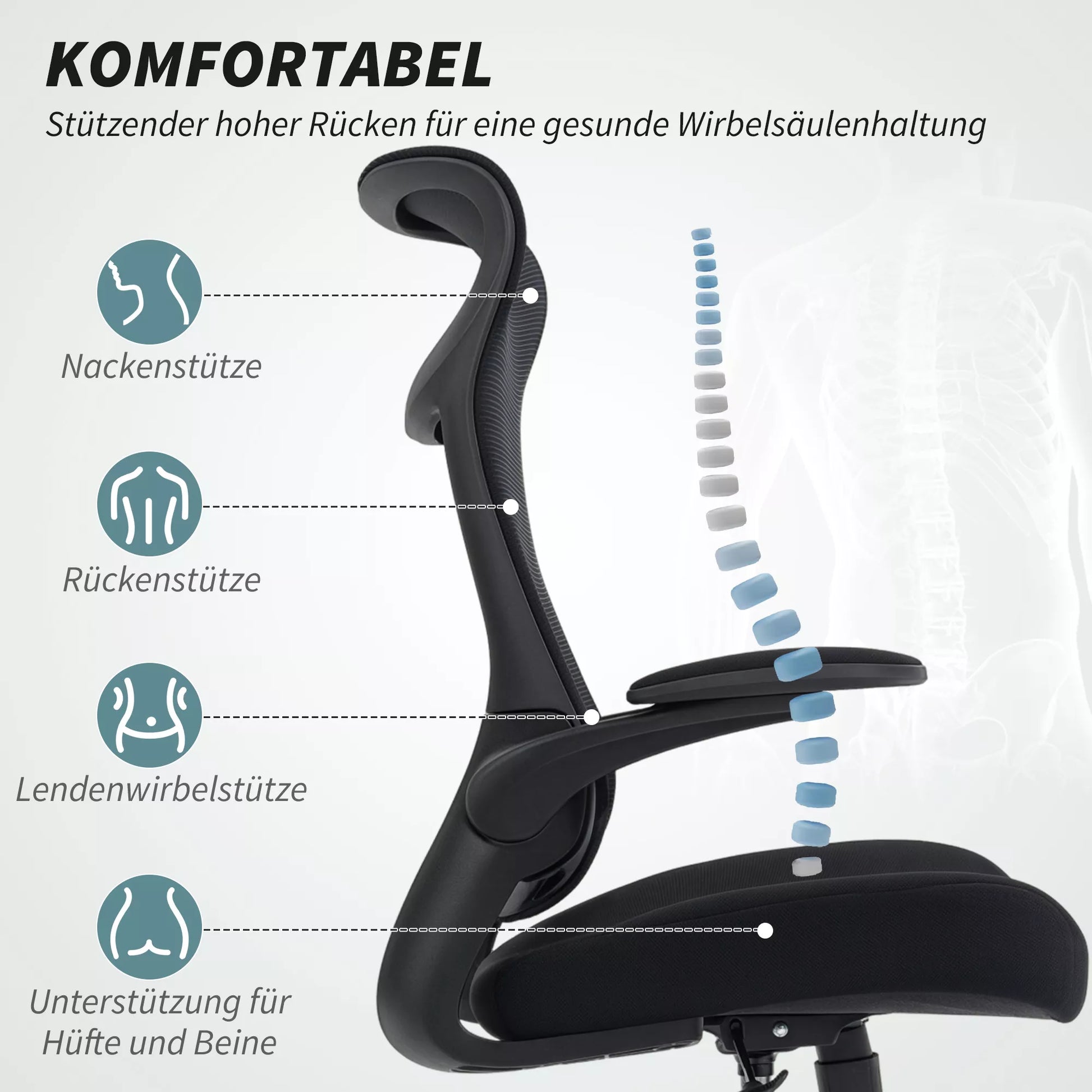 Ergonomiška biuro kėdė su 3D porankiais, tinkleliu dengtu atlošu, S formos atlošu, galvos atrama, svyravimo funkcija, juoda