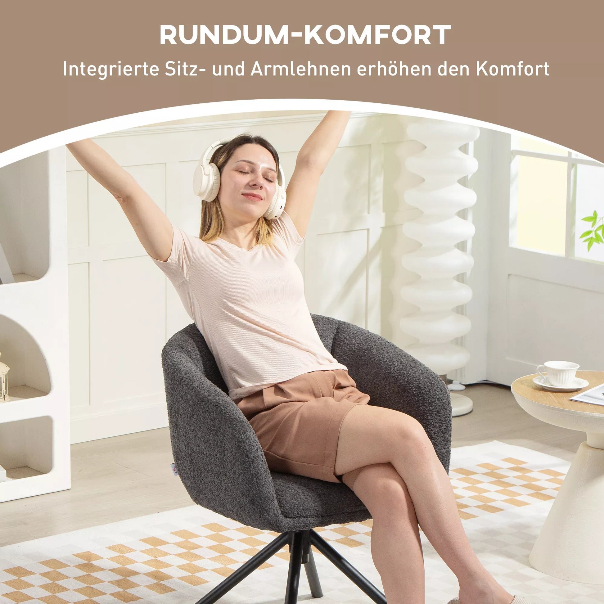 Fotelis, minkšta kėdė su patogia sėdimąja dalimi, pasukama, jaukus apmušalas, iki 120 kg, tamsiai pilka