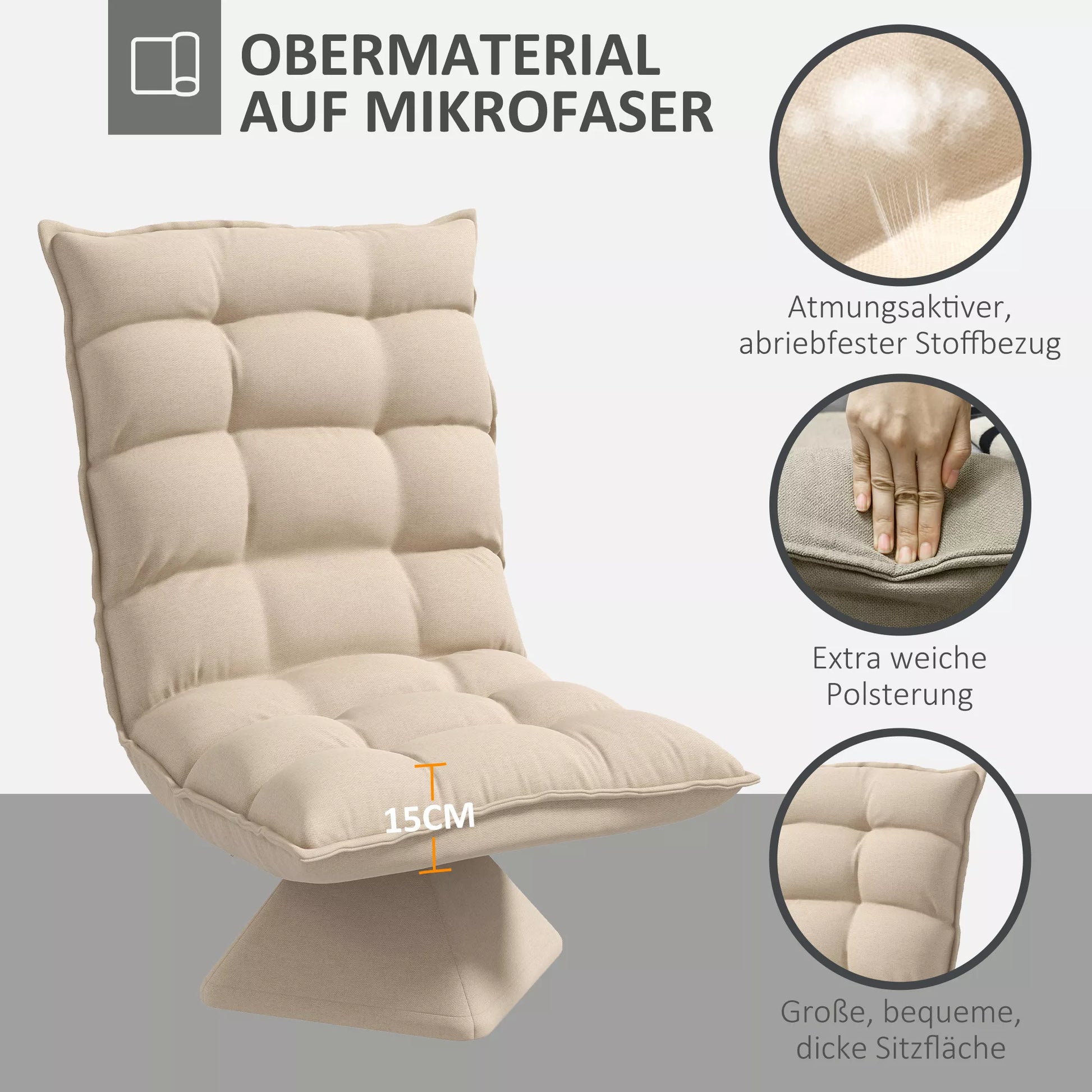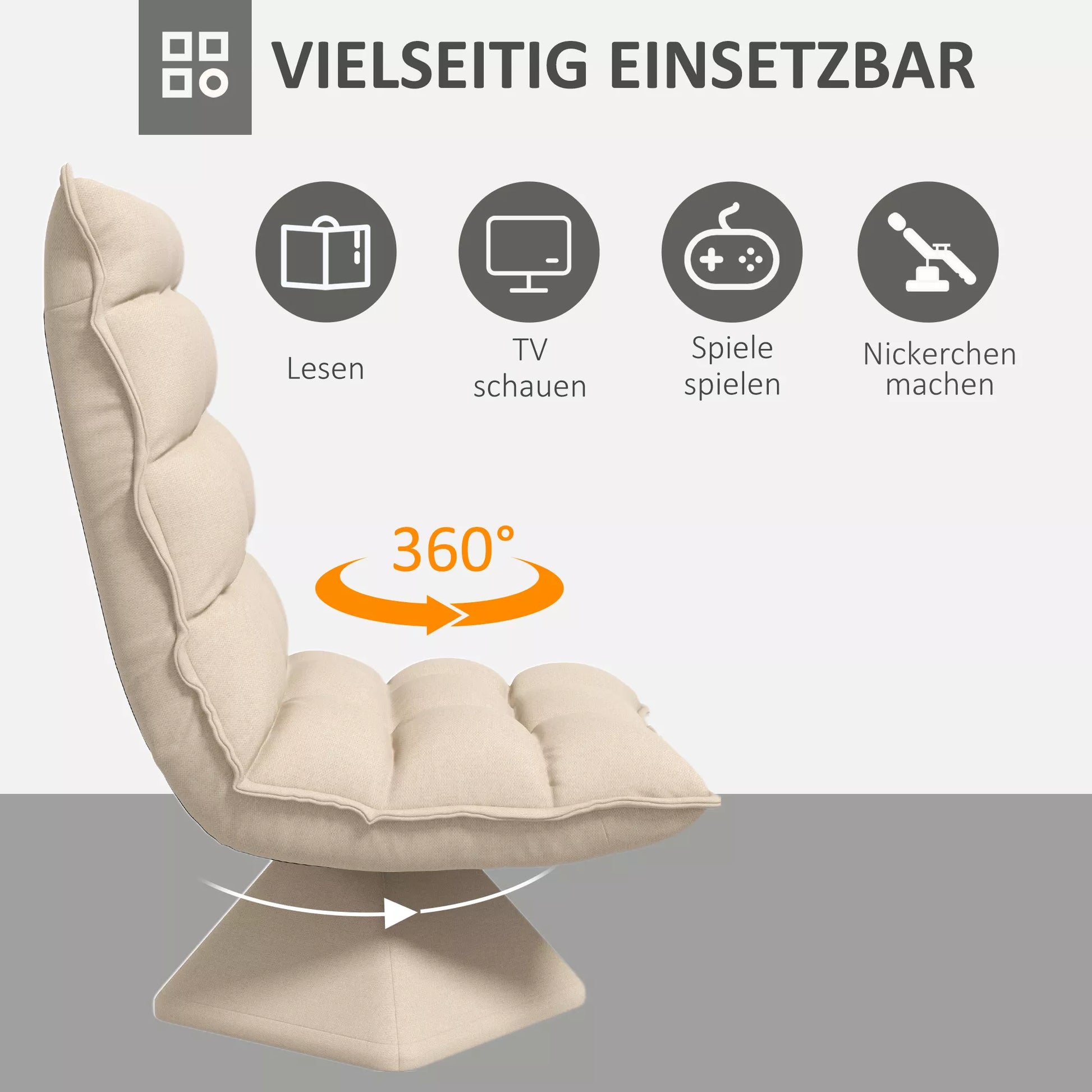 Relaksacinis skaitymo krėslas, sukamasis, lininio audinio išvaizda, 62 cm x 70 cm x 95 cm, smėlio spalvos