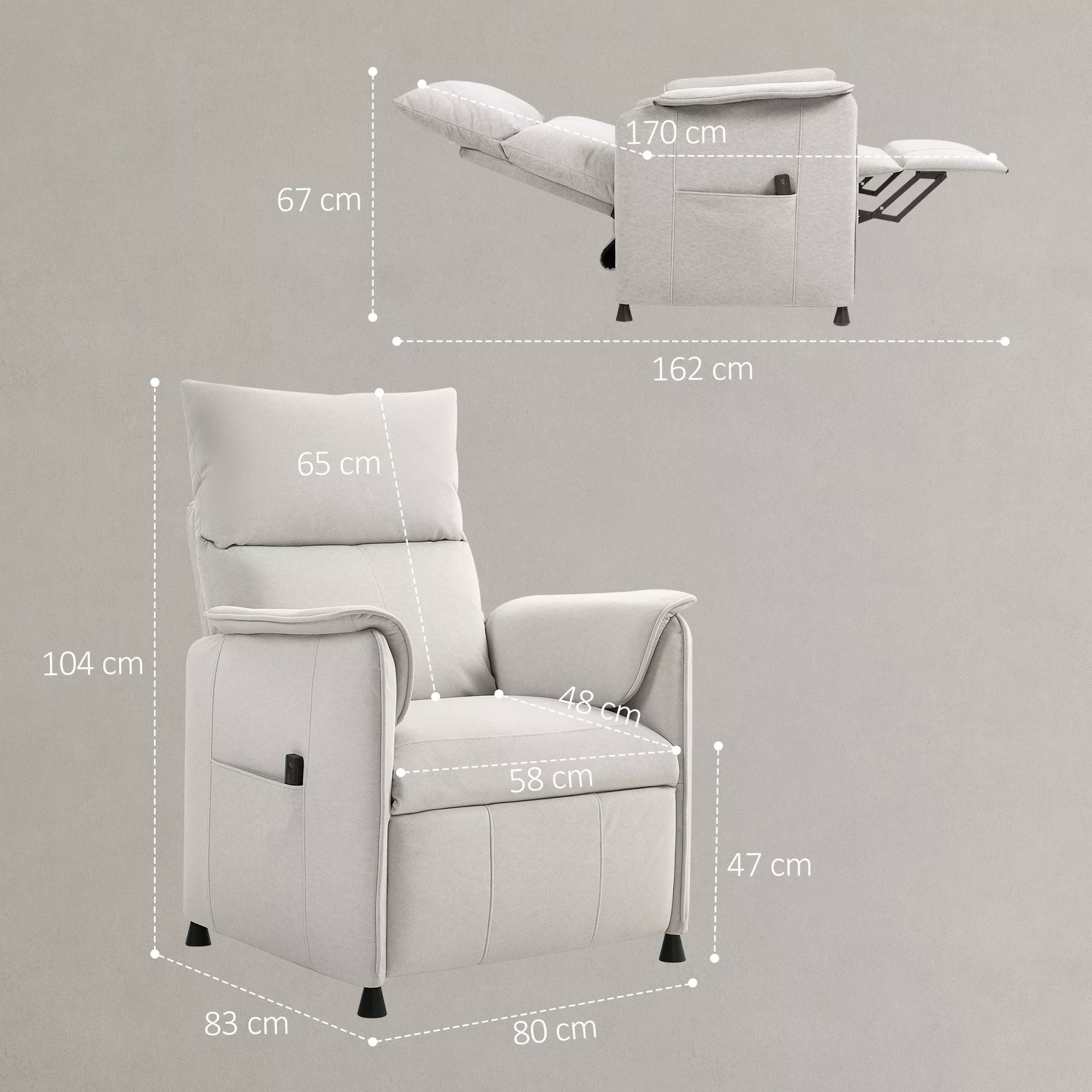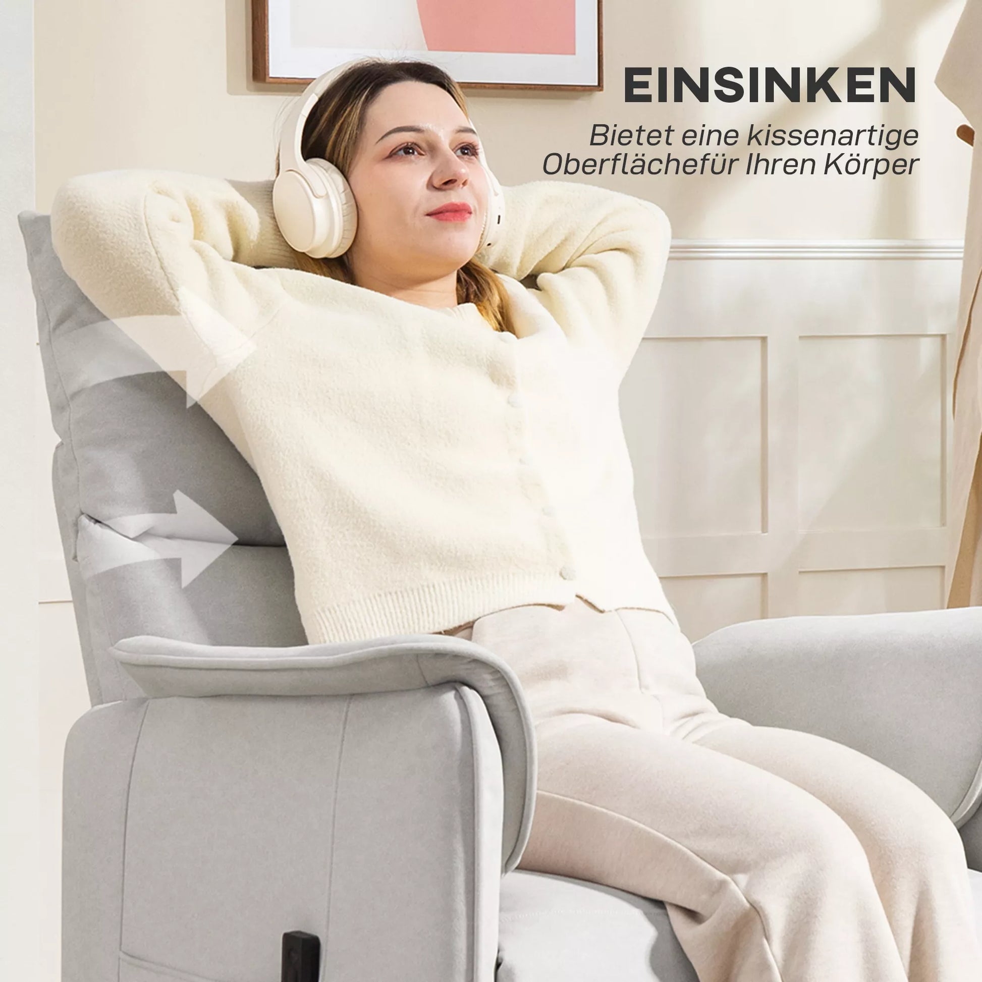 Relaksinė kėdė su tyliu varikliu, minkštasuolis su tvirtu audinio užvalkalu, atminties funkcija, reguliuojama kojų atrama, kreminės baltos spalvos