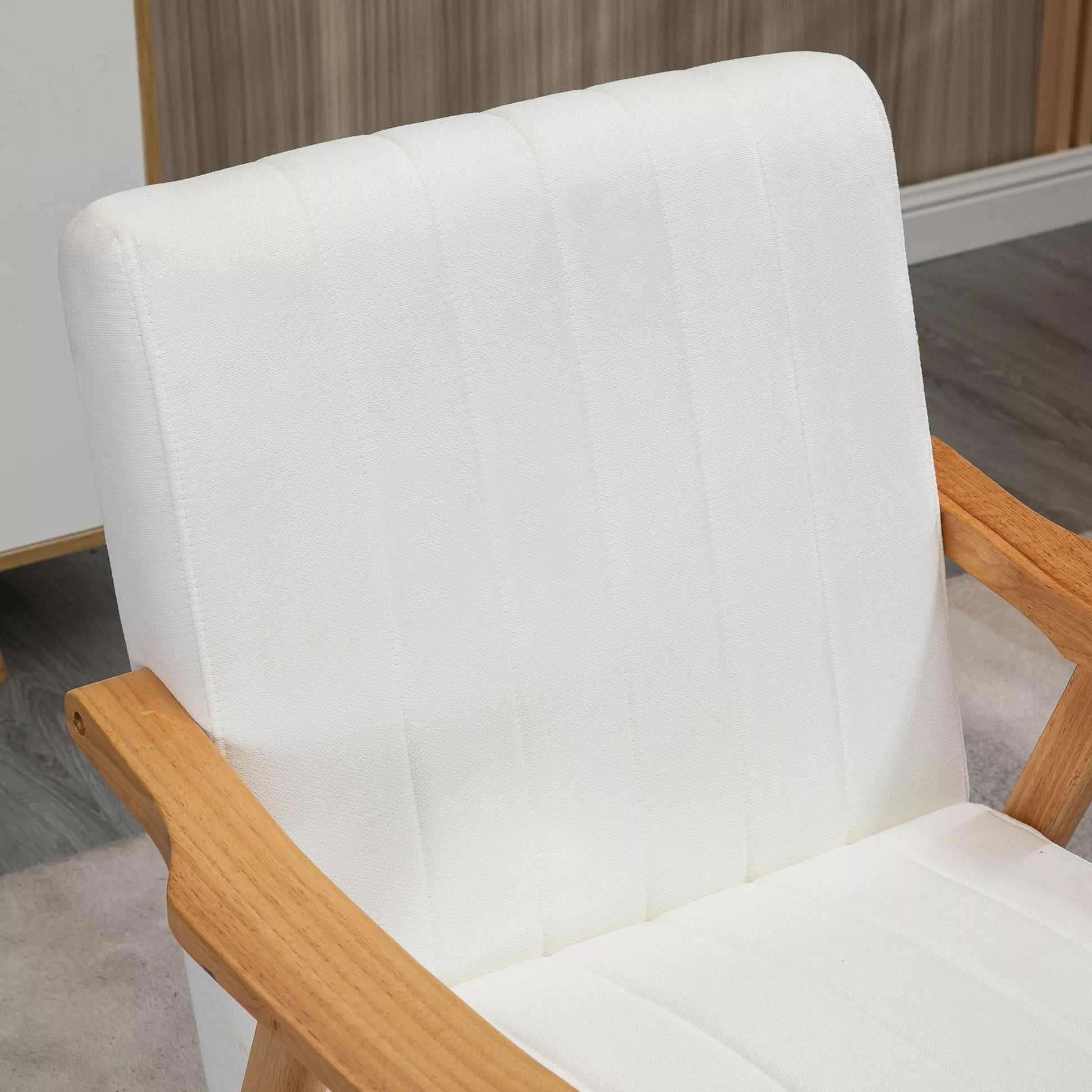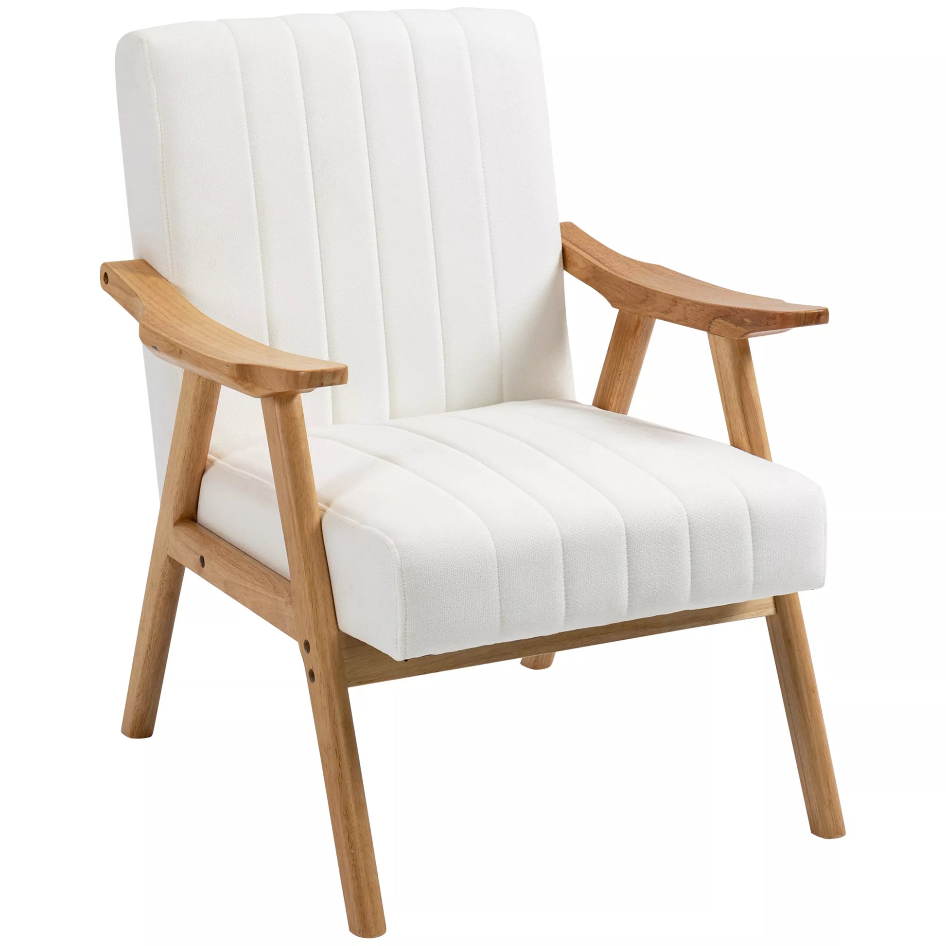 Minkštas fotelis Skandinaviško dizaino, veliūro išvaizdos, su masyvmedžio rėmu, 68 x 74 x 82cm, Natūralus+Kremas