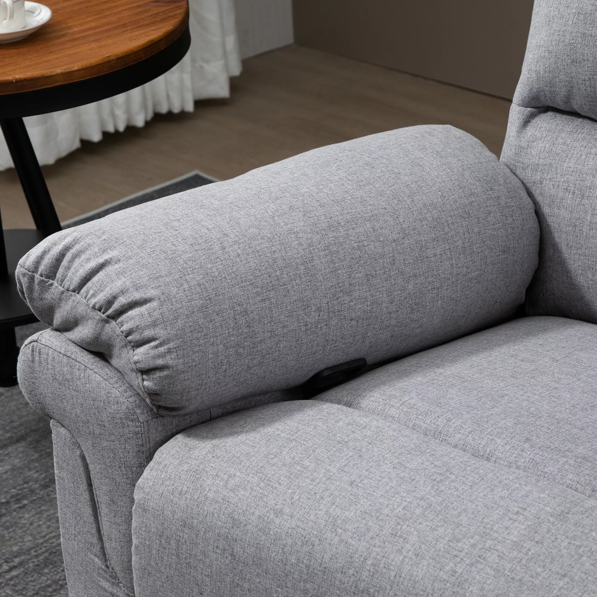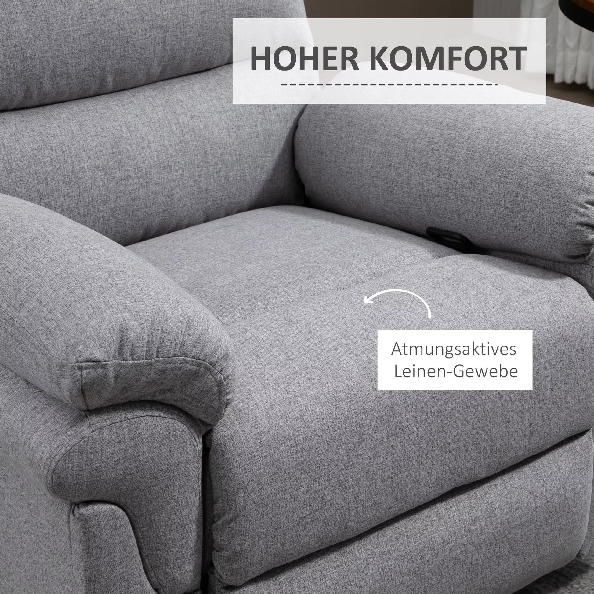 HOMCOM fotelis su atlošimo funkcija, vienvietė sofa, reguliuojamas, atsidaro 165°, poilsio fotelis, televizijos fotelis, skirtas svetainei, miegamajam, lininio audinio imitacija, šviesiai pilkos spalvos, 91 x 92 x 102 cm